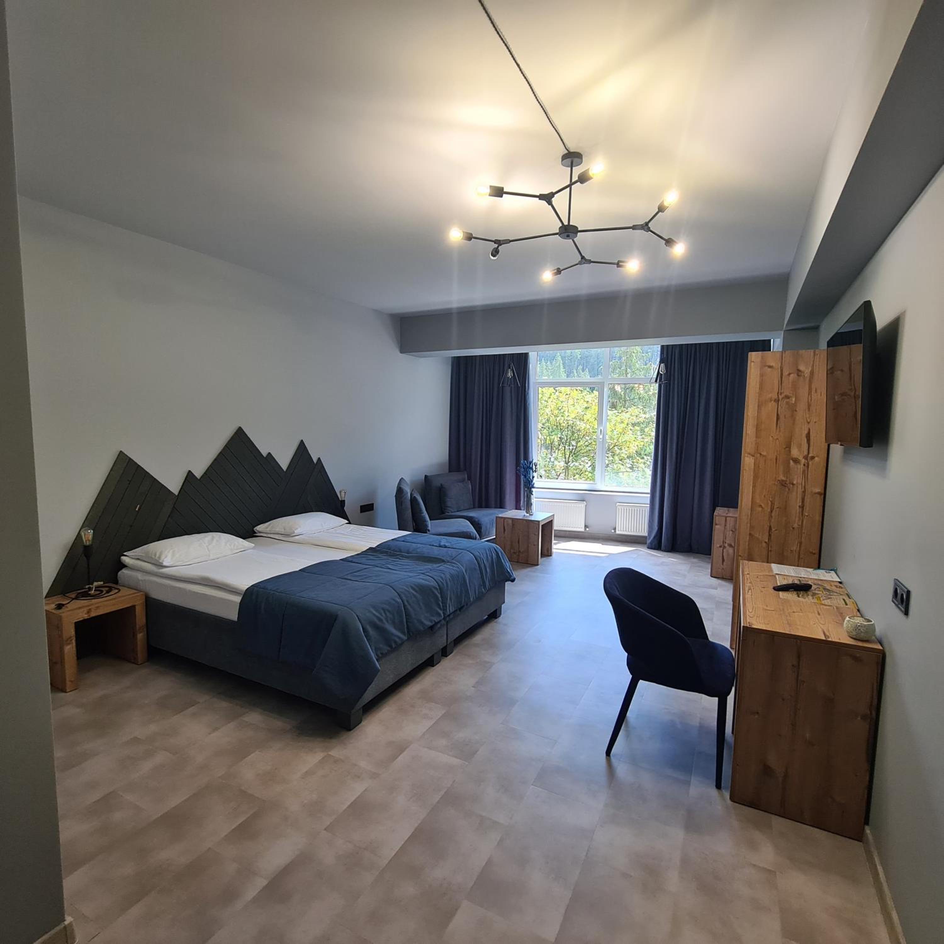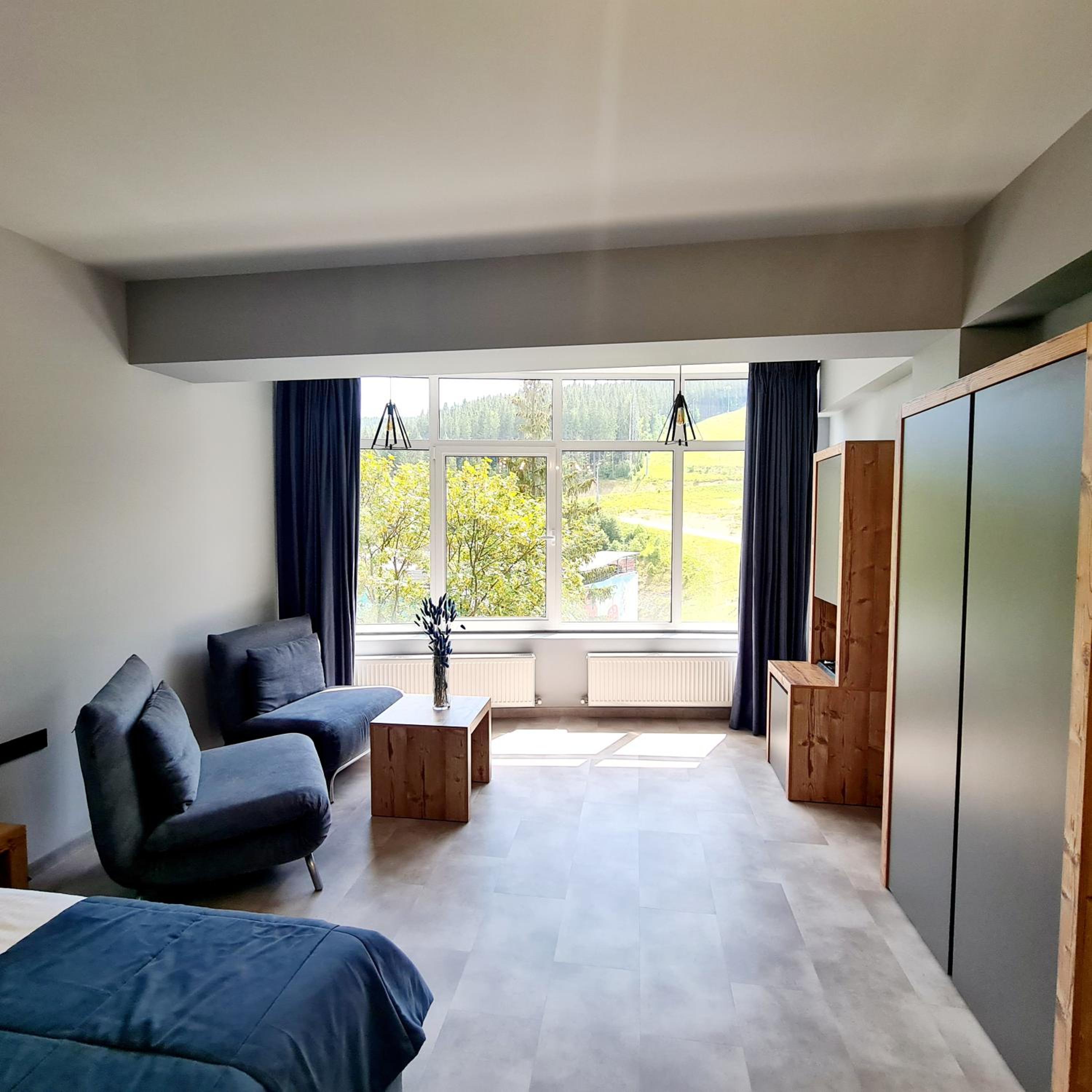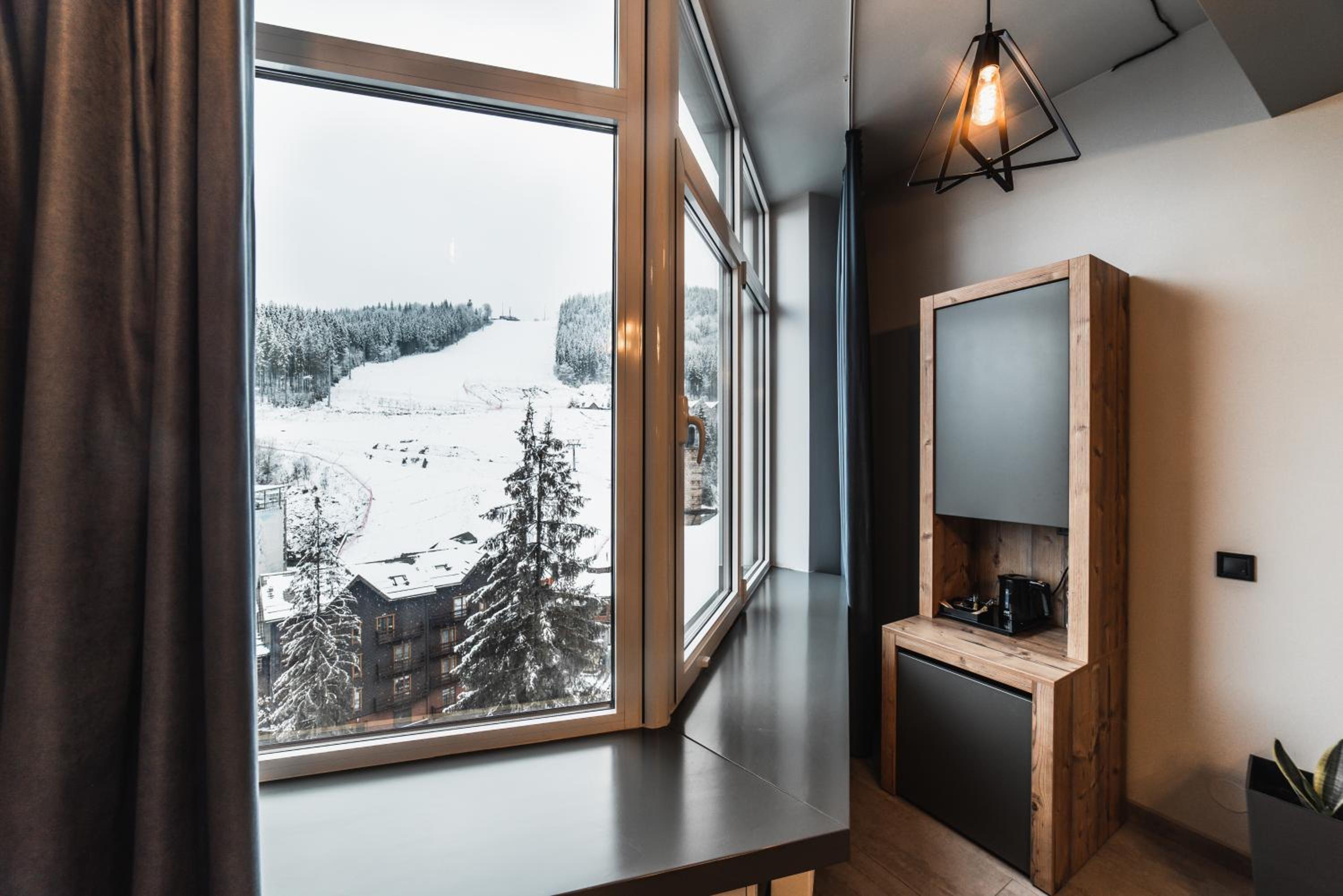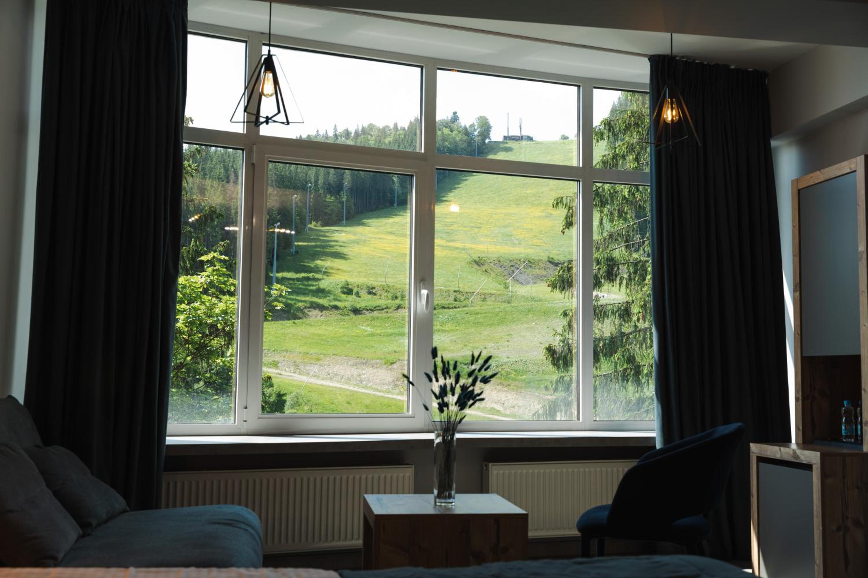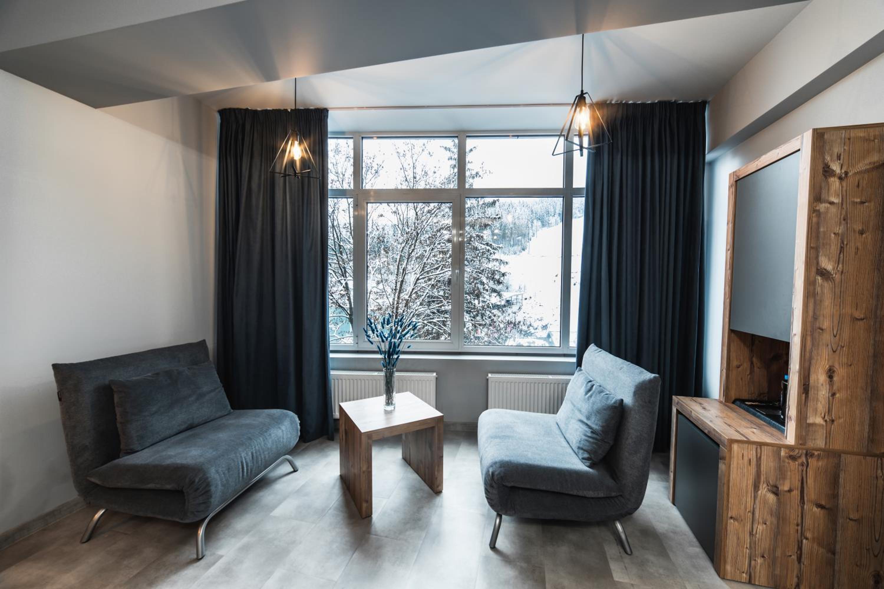 Located in Bukovel, BLUE mountain offers a luxurious stay with rooms featuring modern amenities like free WiFi, flat-screen TVs, and private bathrooms. Some rooms even boast stunning mountain views, providing a truly immersive experience.
