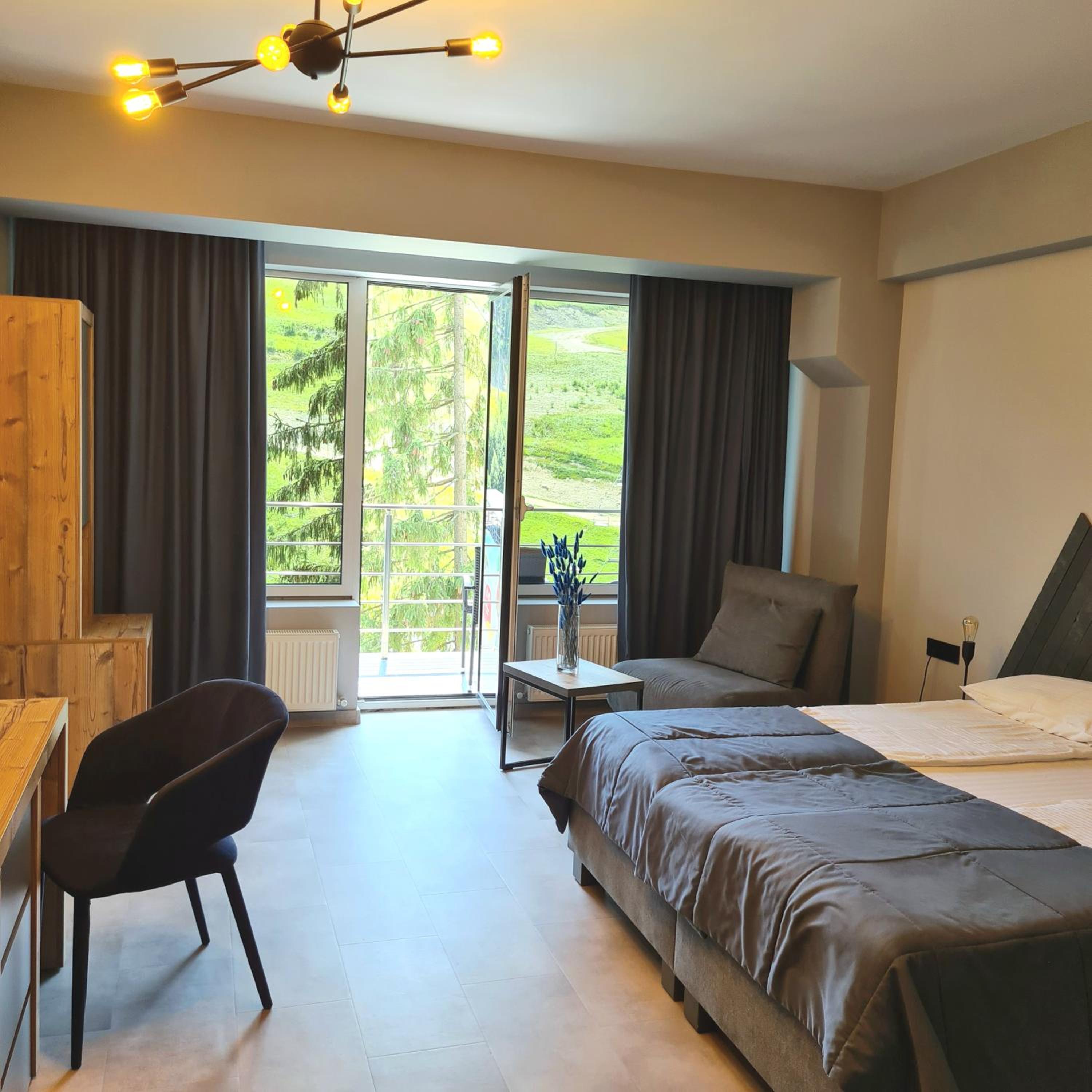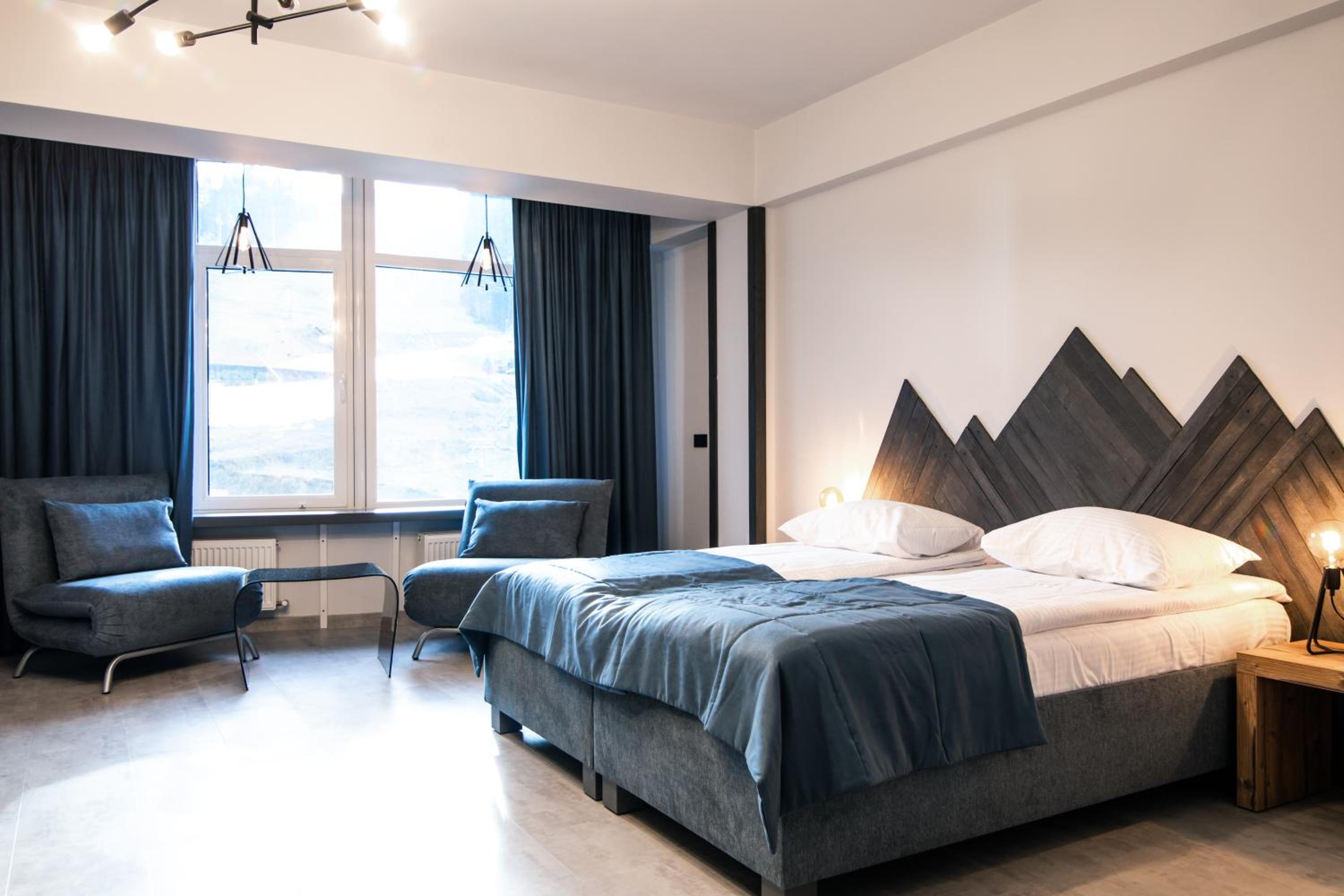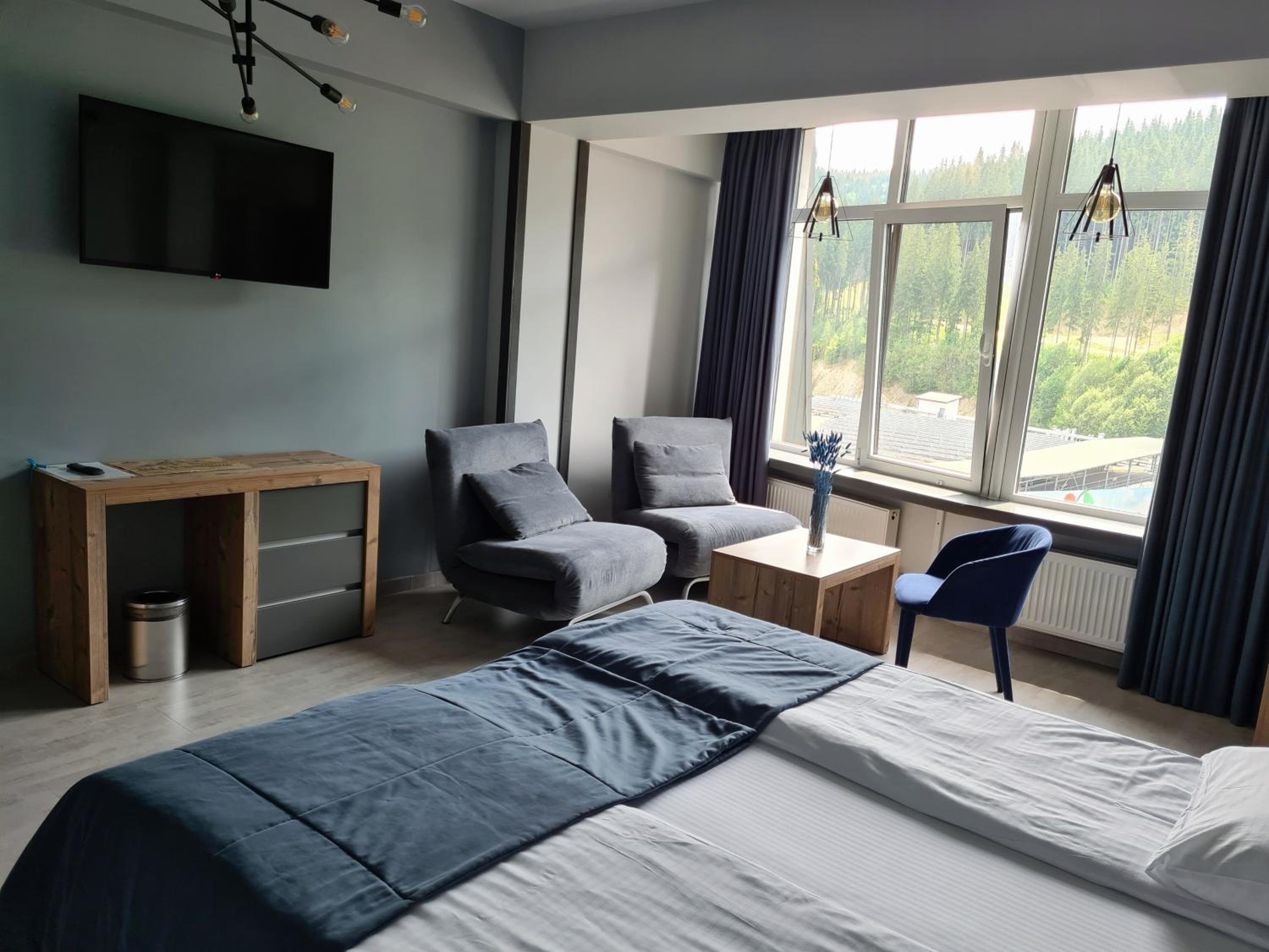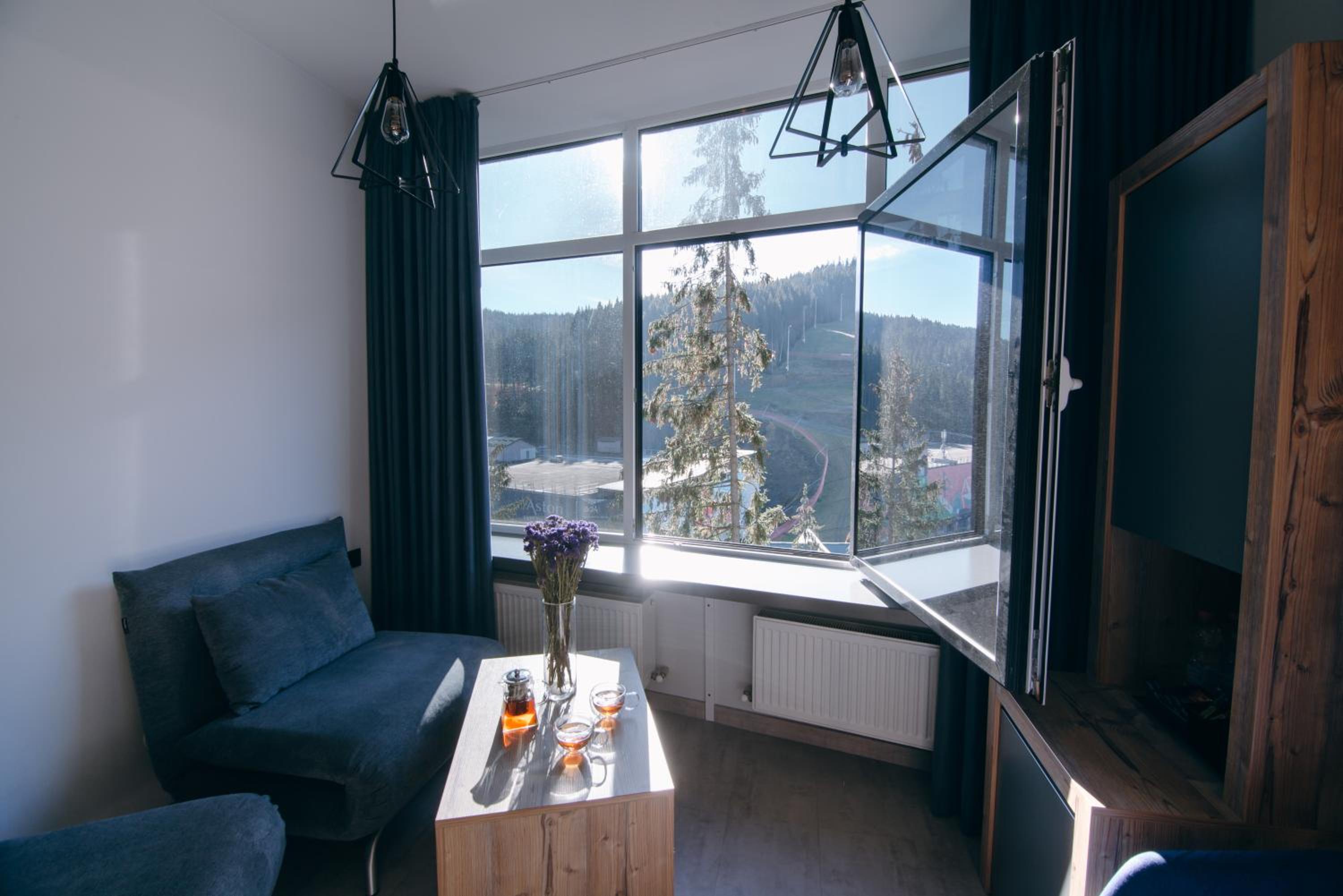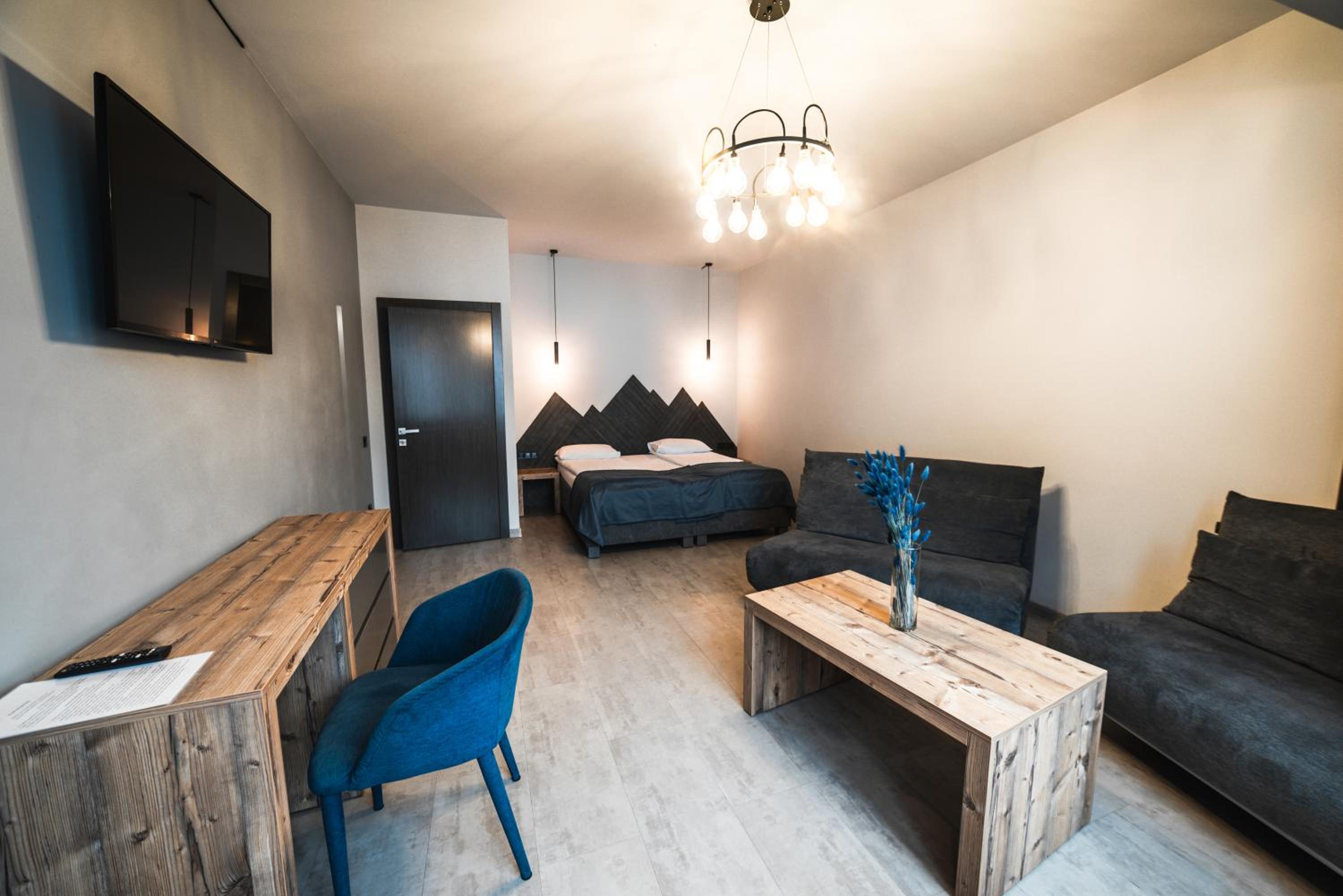 Located in Bukovel, BLUE mountain offers a luxurious stay with rooms featuring modern amenities like free WiFi, flat-screen TVs, and private bathrooms. Some rooms even boast stunning mountain views, providing a truly immersive experience.