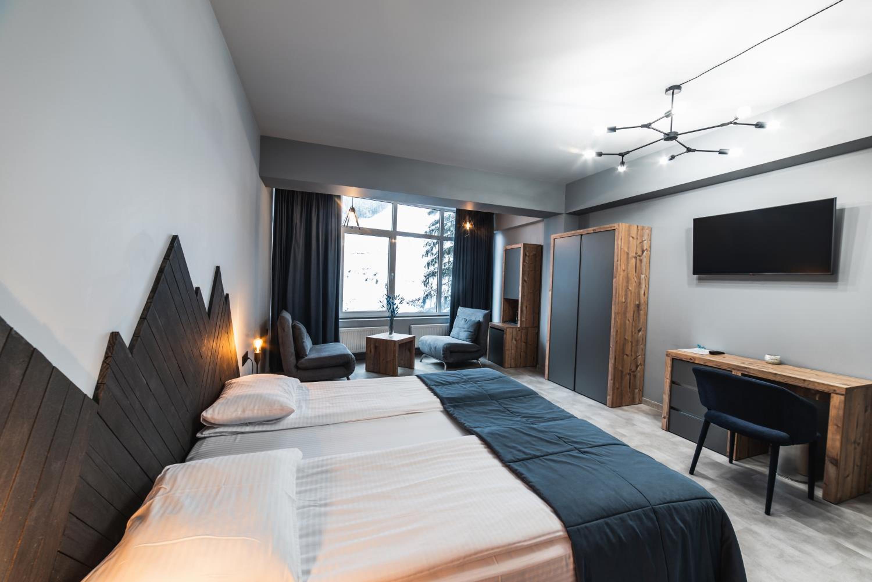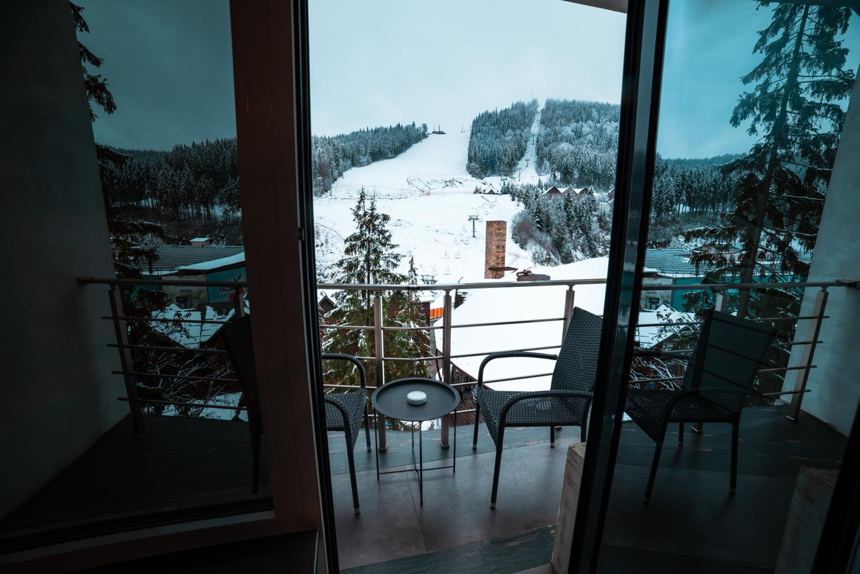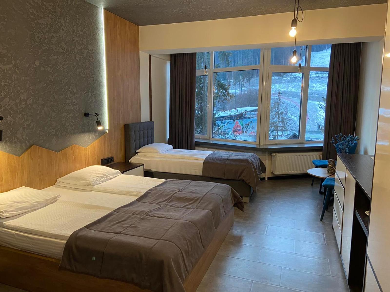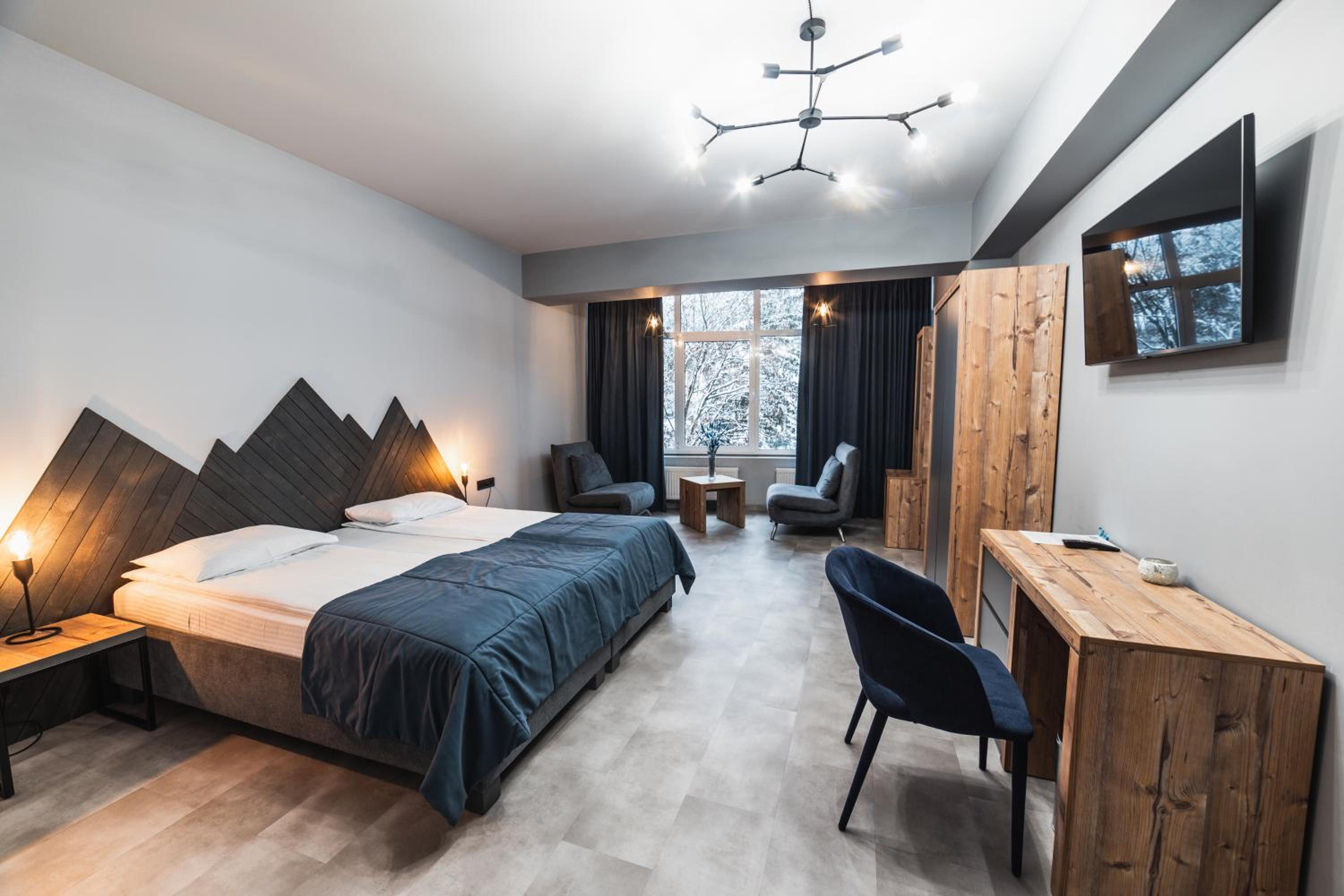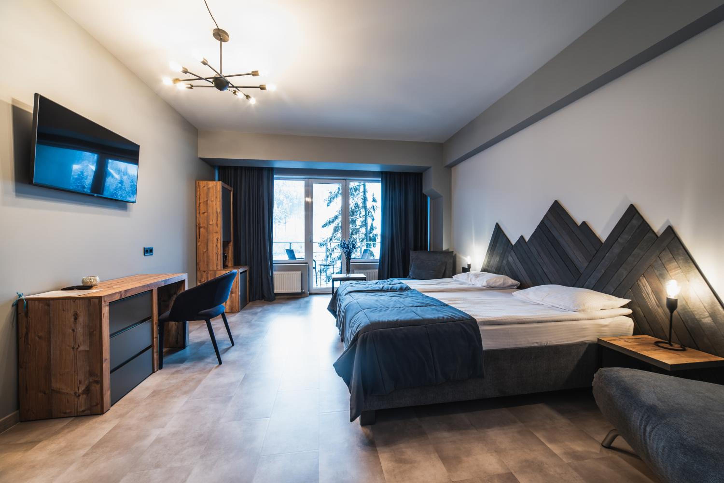 Located in Bukovel, BLUE mountain offers a luxurious stay with rooms featuring modern amenities like free WiFi, flat-screen TVs, and private bathrooms. Some rooms even boast stunning mountain views, providing a truly immersive experience.