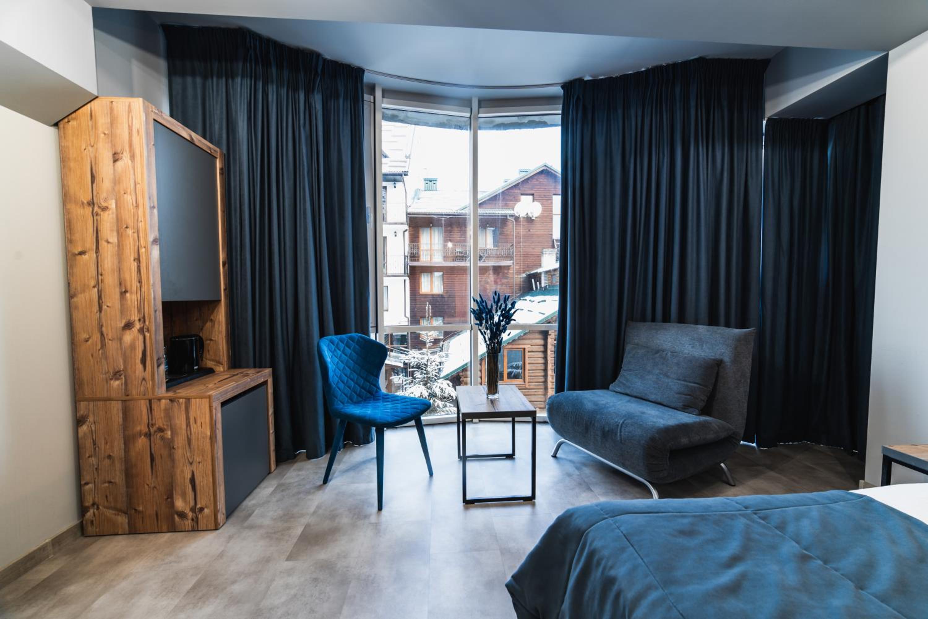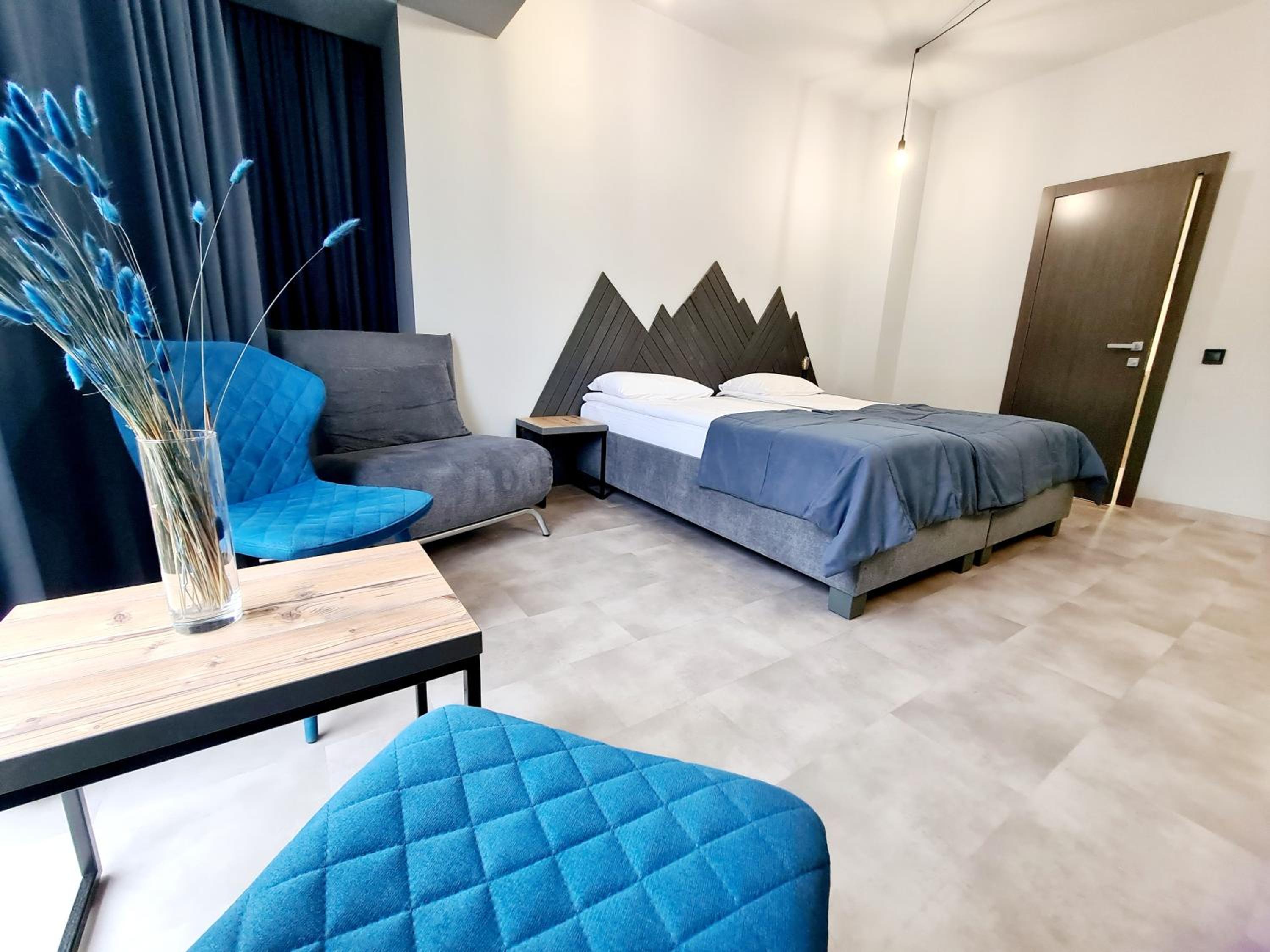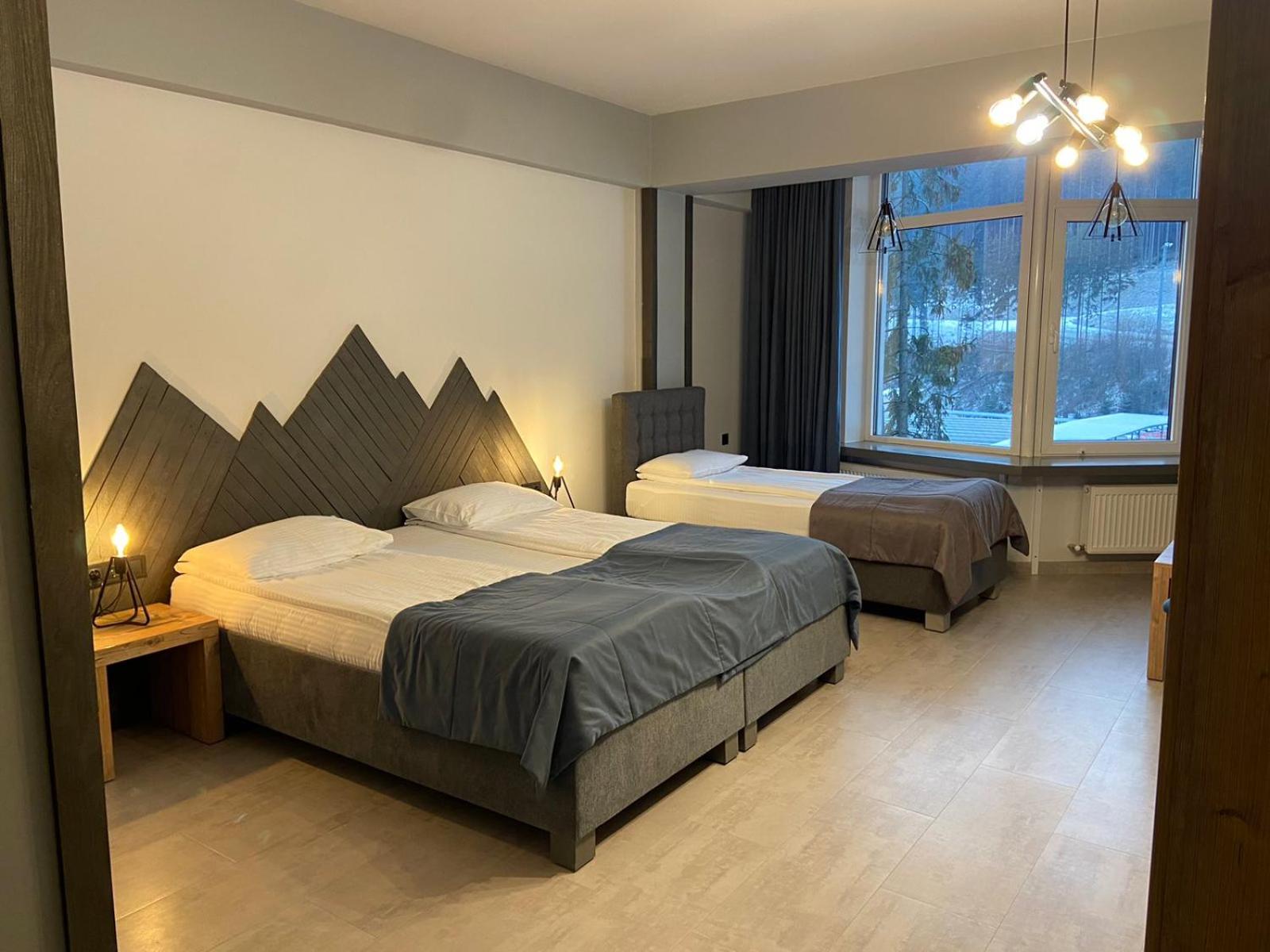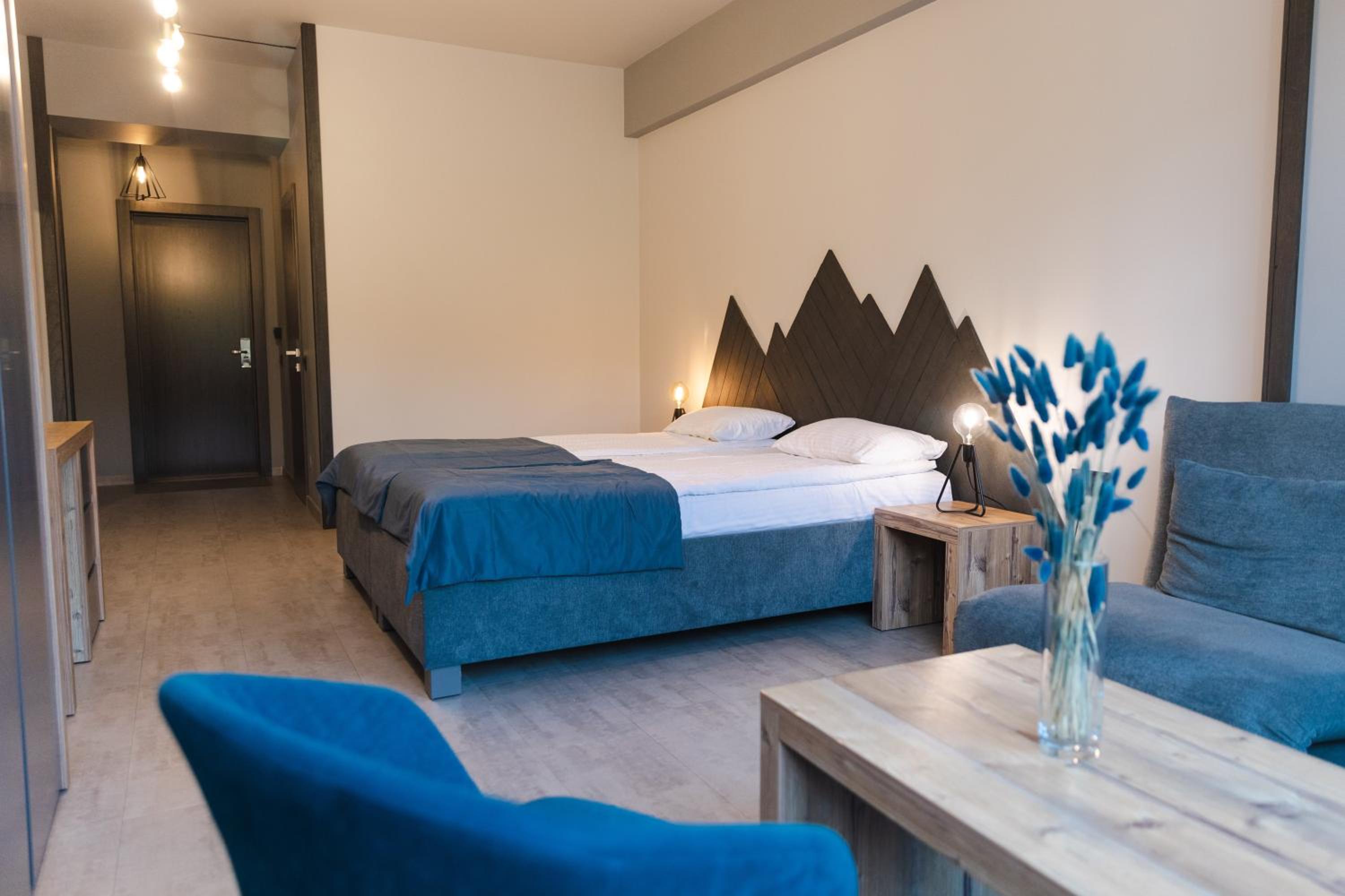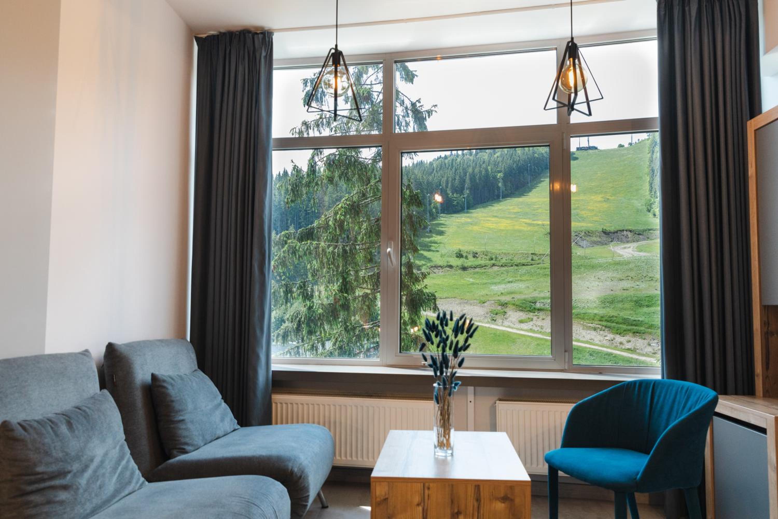 Located in Bukovel, BLUE mountain offers a luxurious stay with rooms featuring modern amenities like free WiFi, flat-screen TVs, and private bathrooms. Some rooms even boast stunning mountain views, providing a truly immersive experience.