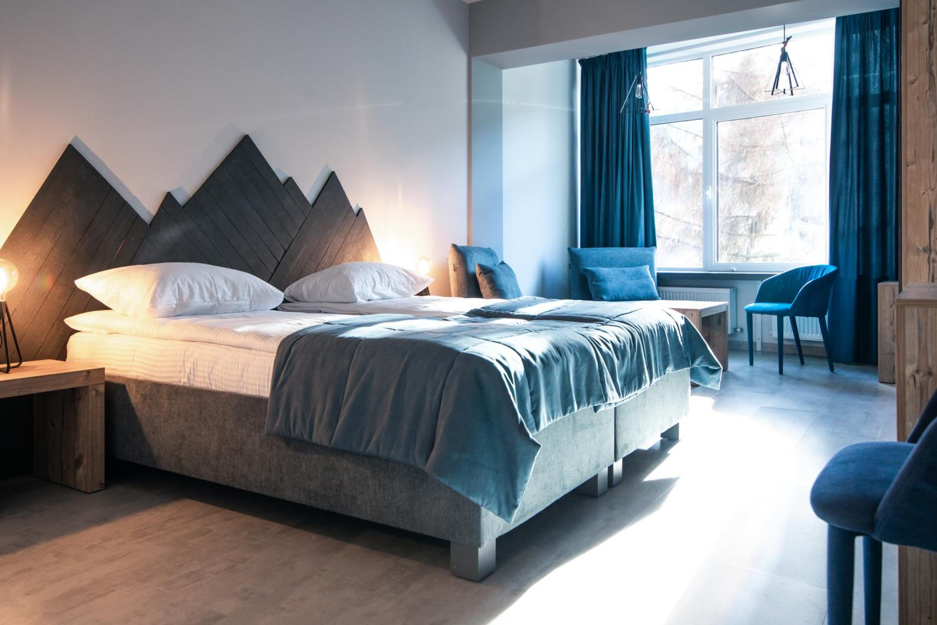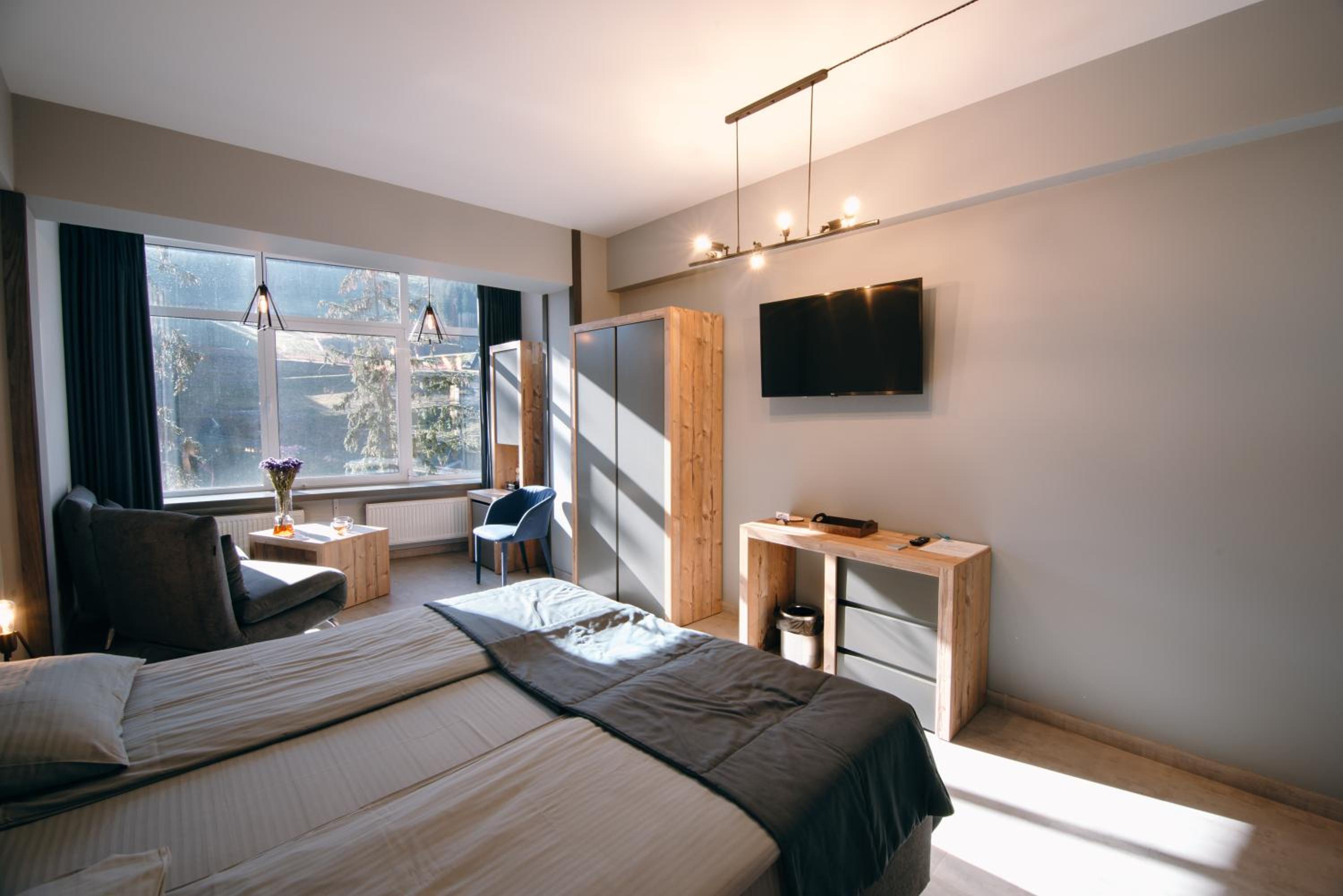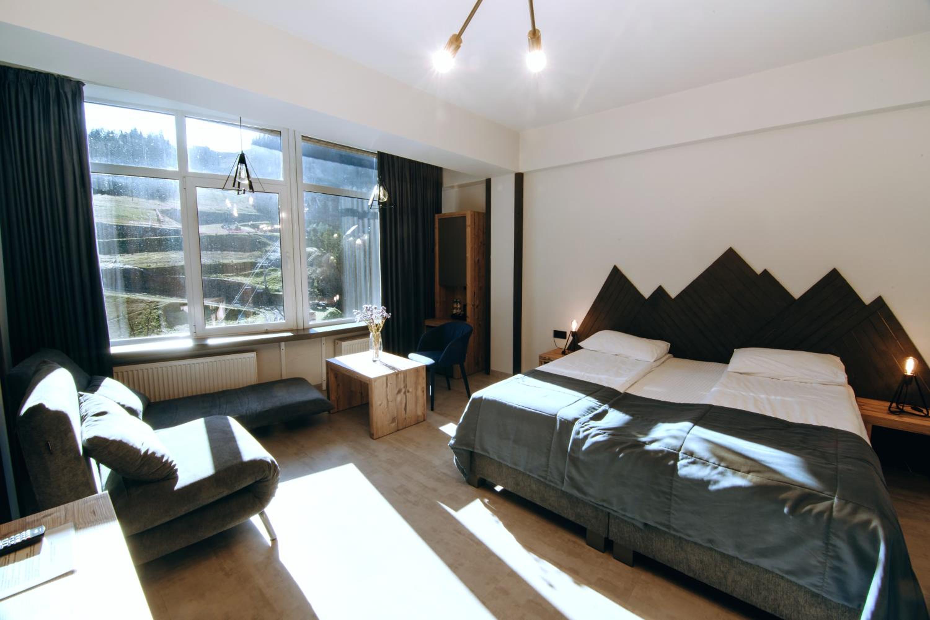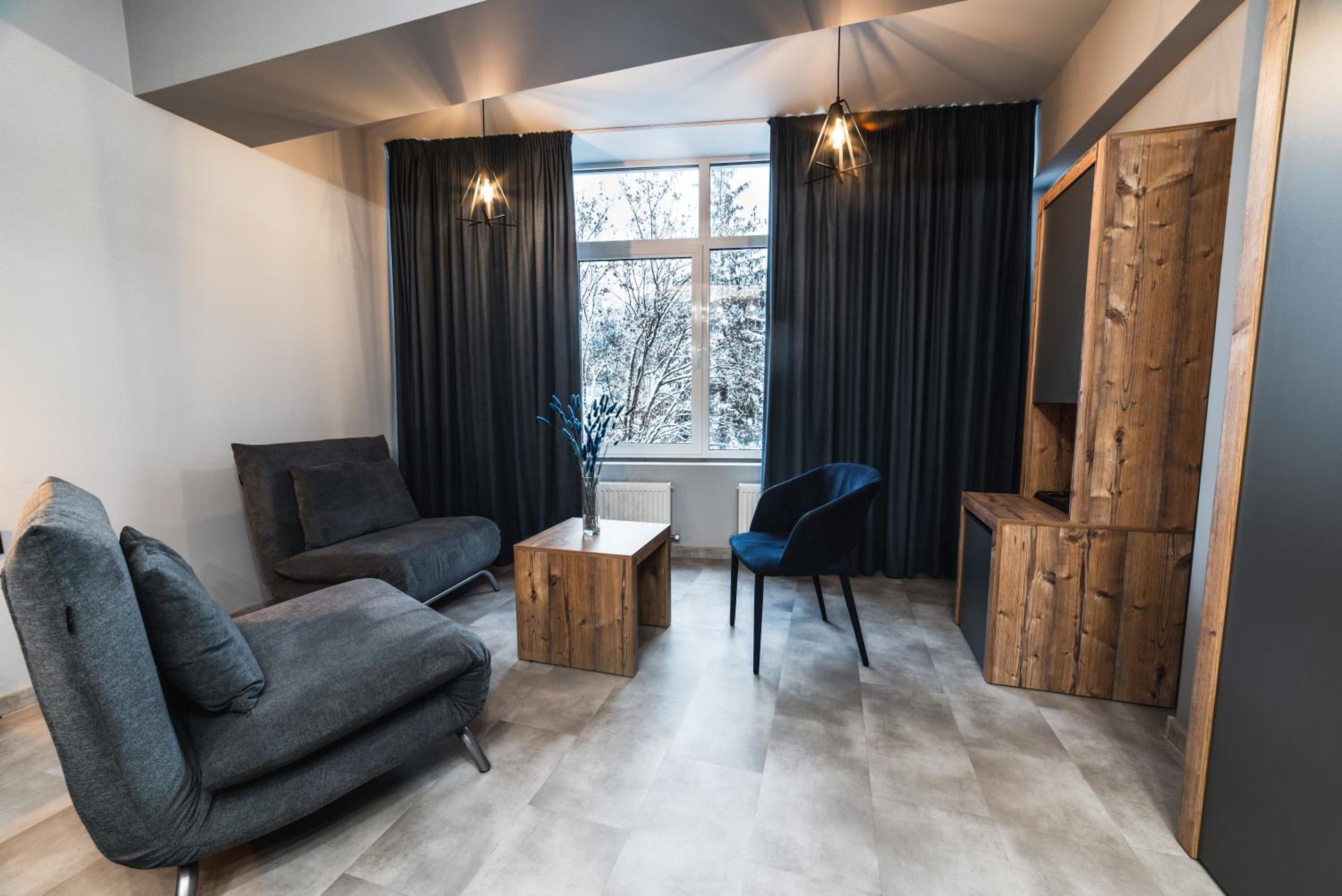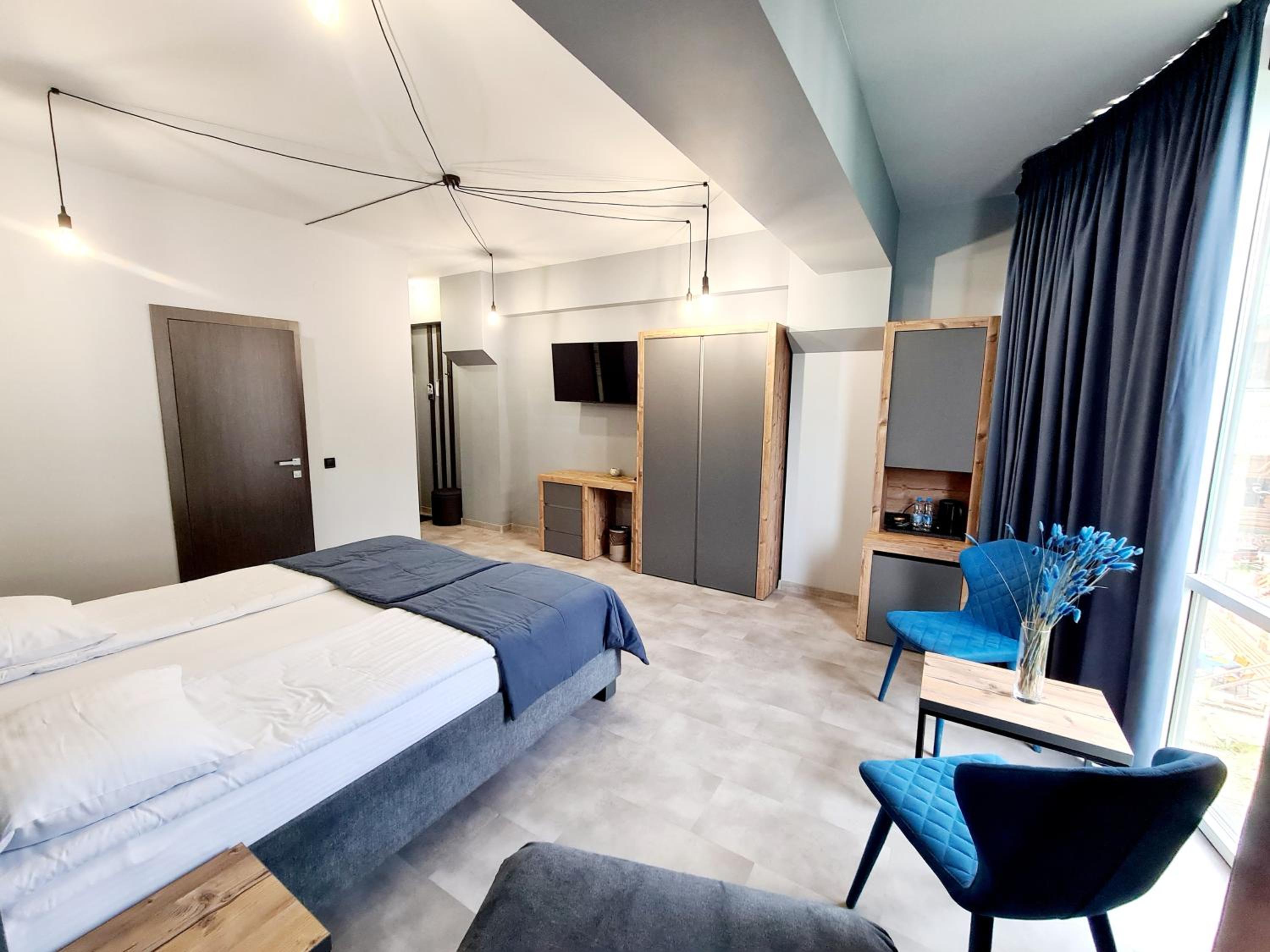 Located in Bukovel, BLUE mountain offers a luxurious stay with rooms featuring modern amenities like free WiFi, flat-screen TVs, and private bathrooms. Some rooms even boast stunning mountain views, providing a truly immersive experience.