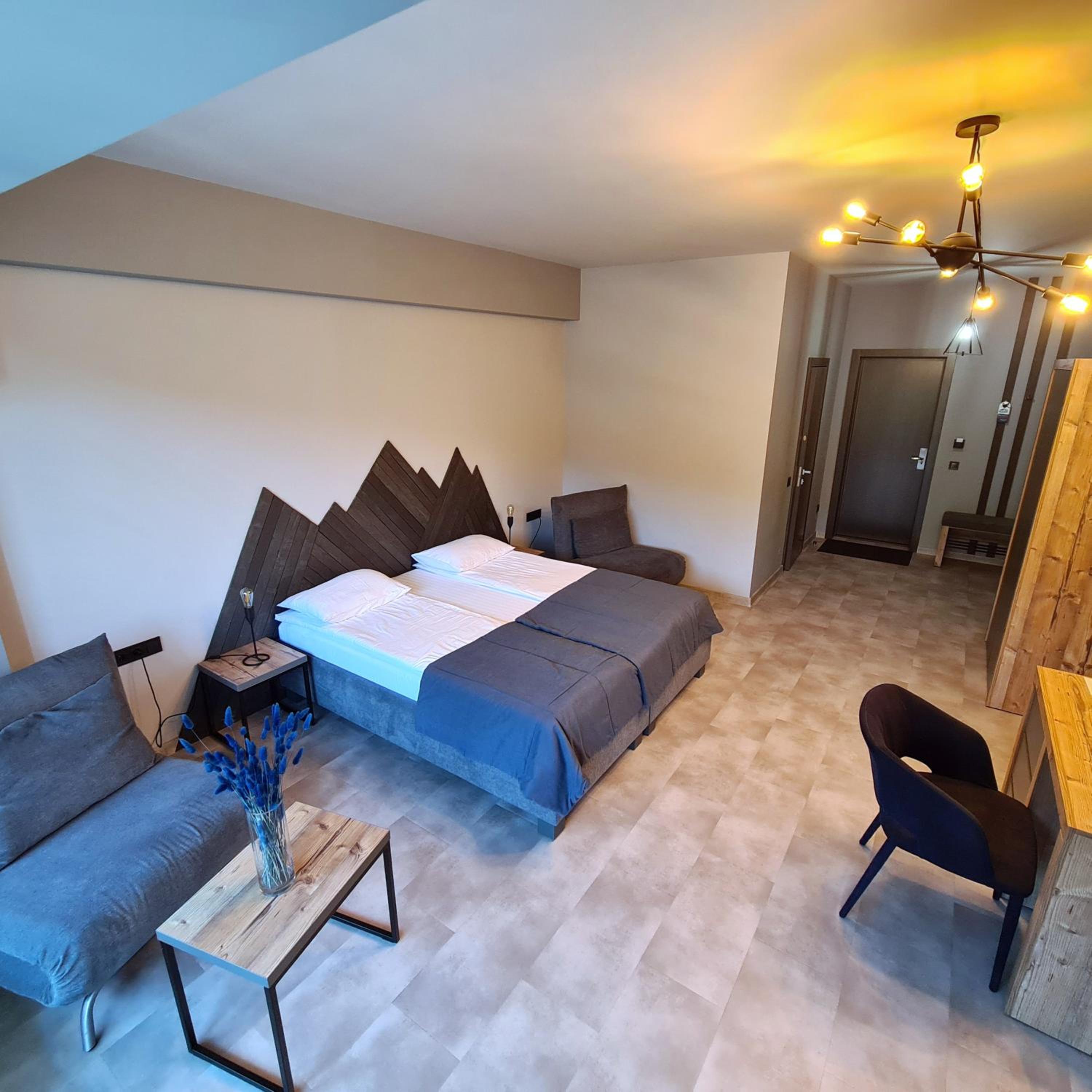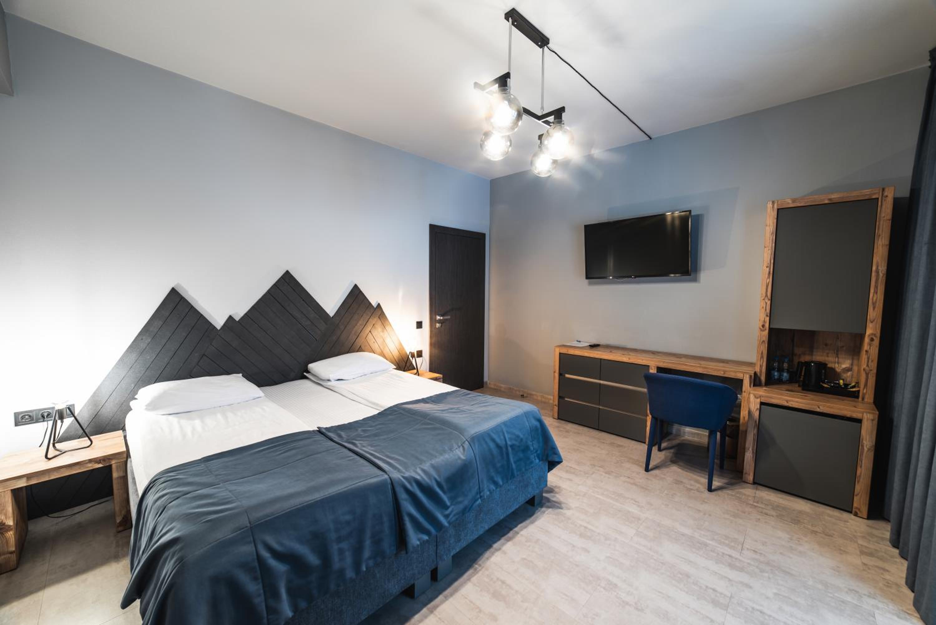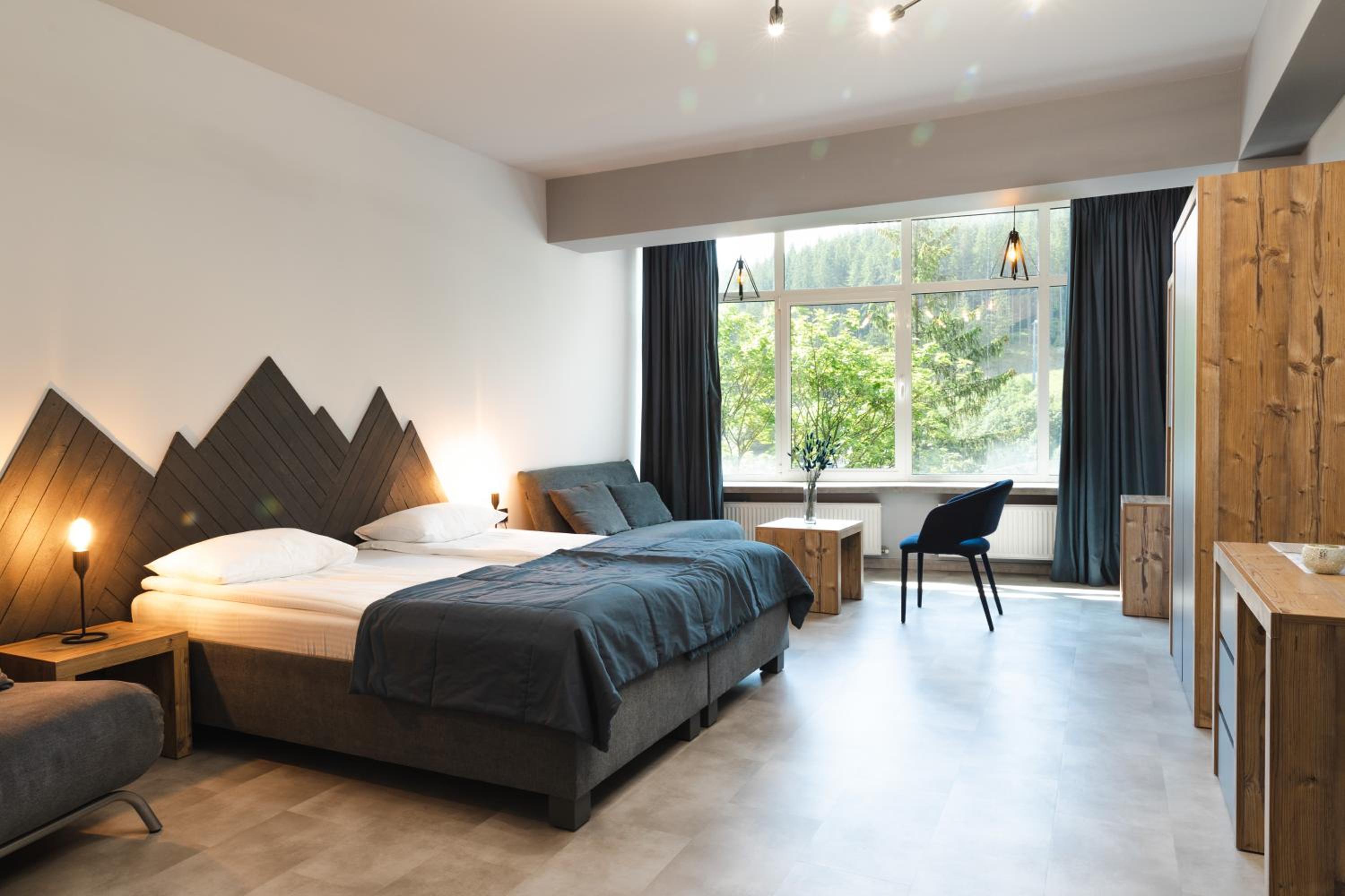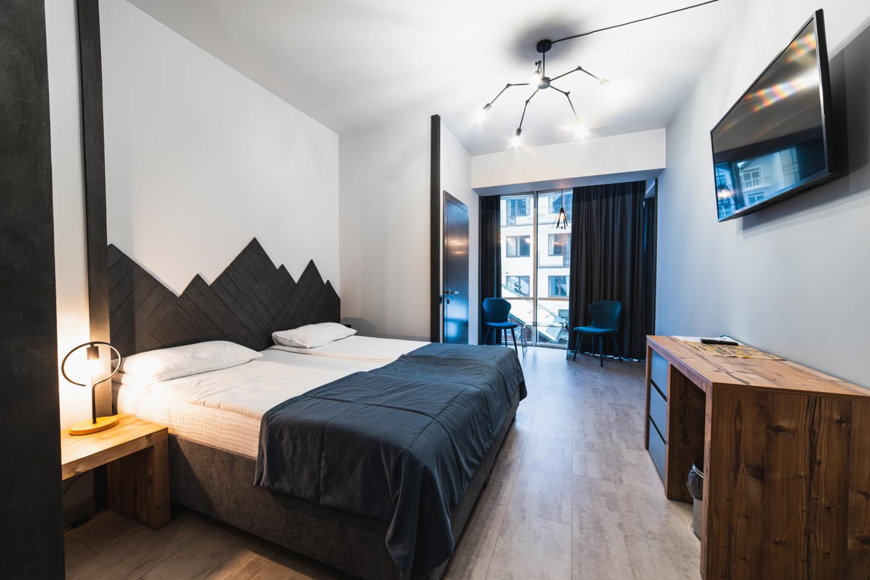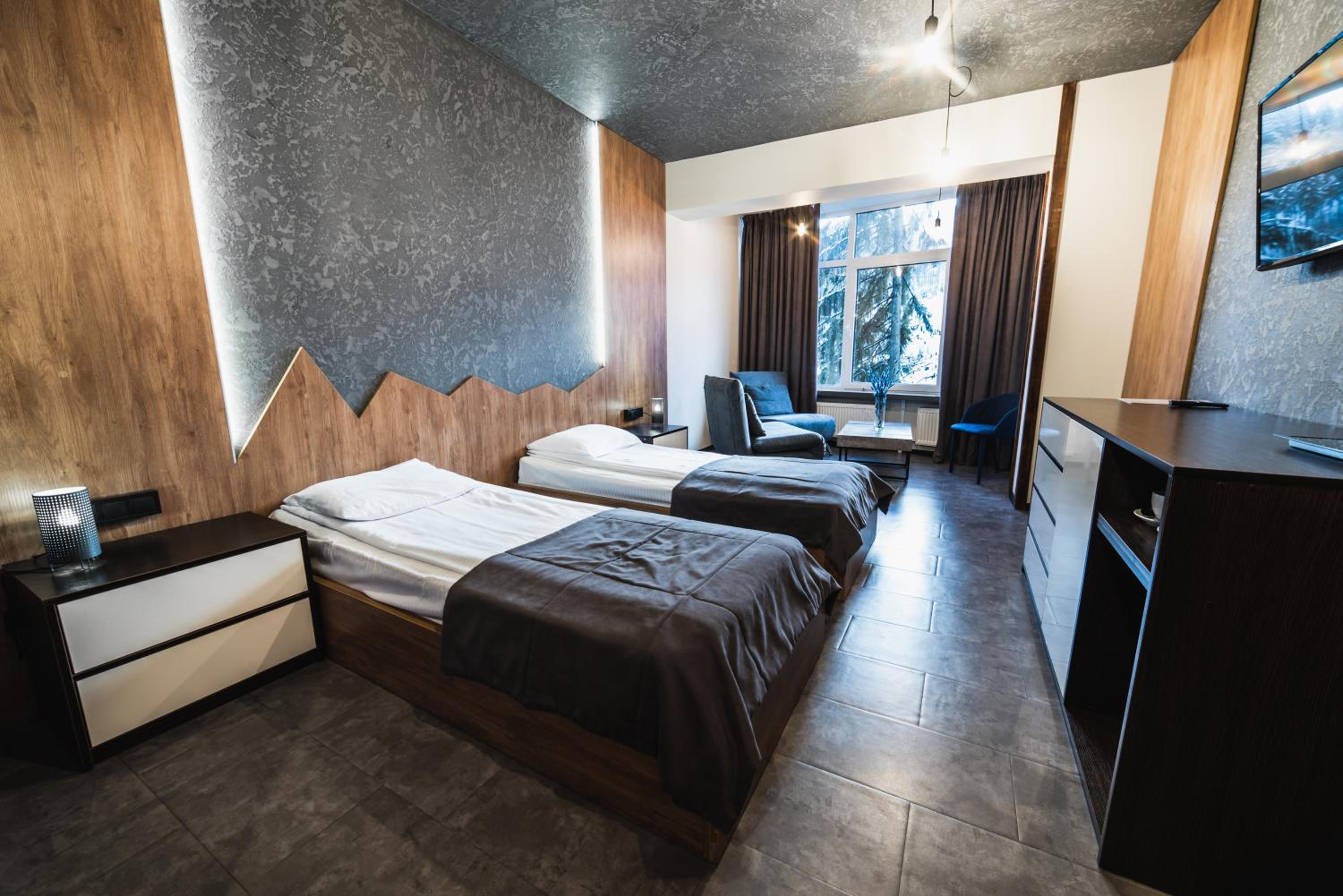 Located in Bukovel, BLUE mountain offers a luxurious stay with rooms featuring modern amenities like free WiFi, flat-screen TVs, and private bathrooms. Some rooms even boast stunning mountain views, providing a truly immersive experience.