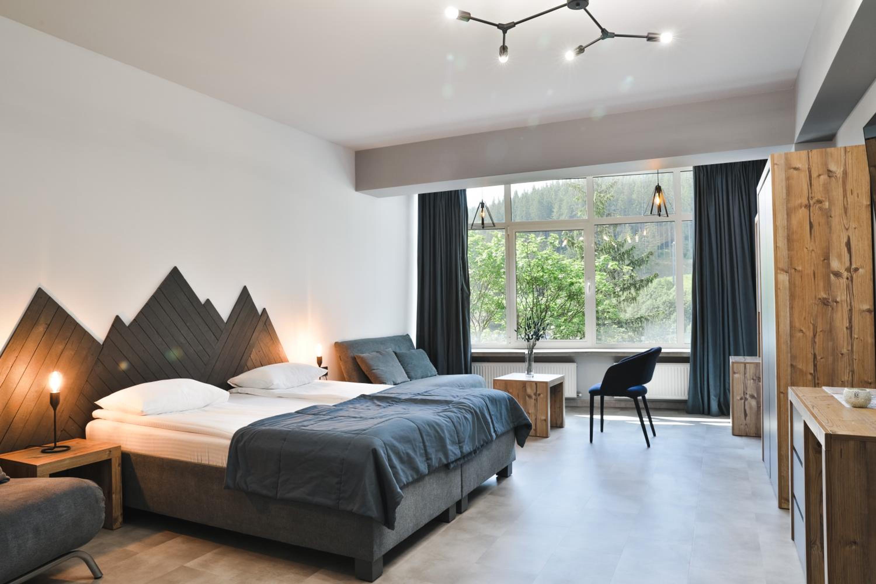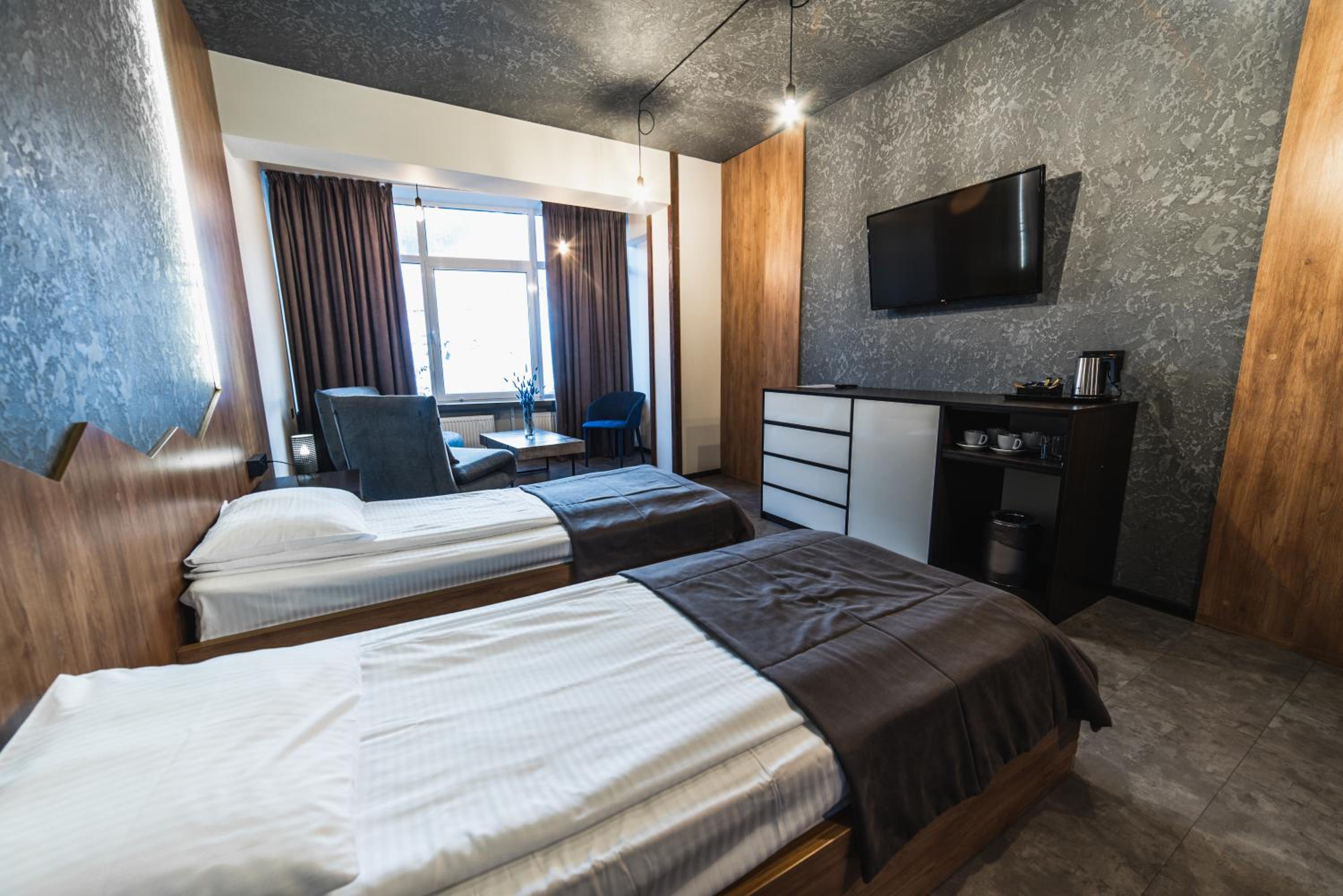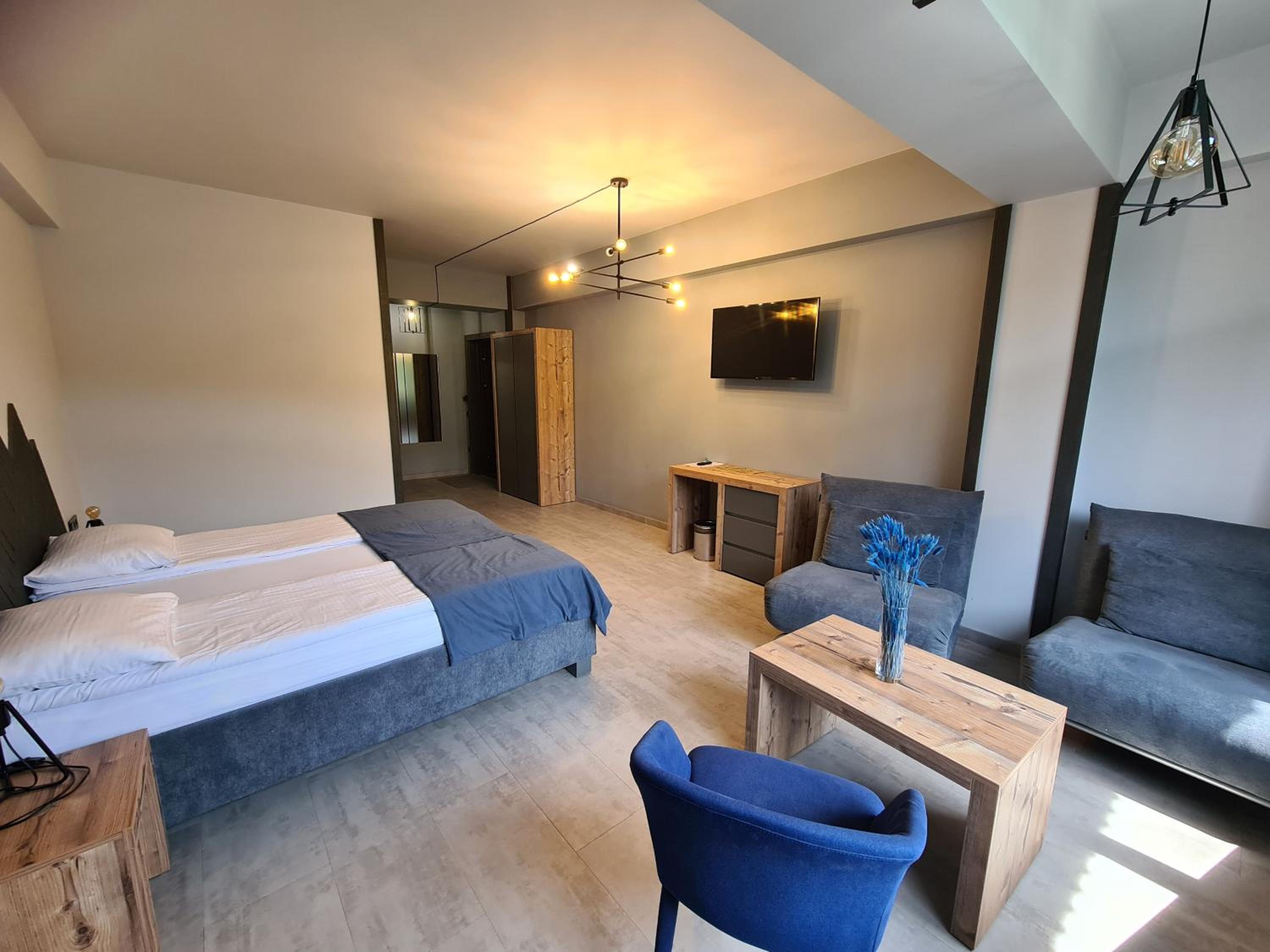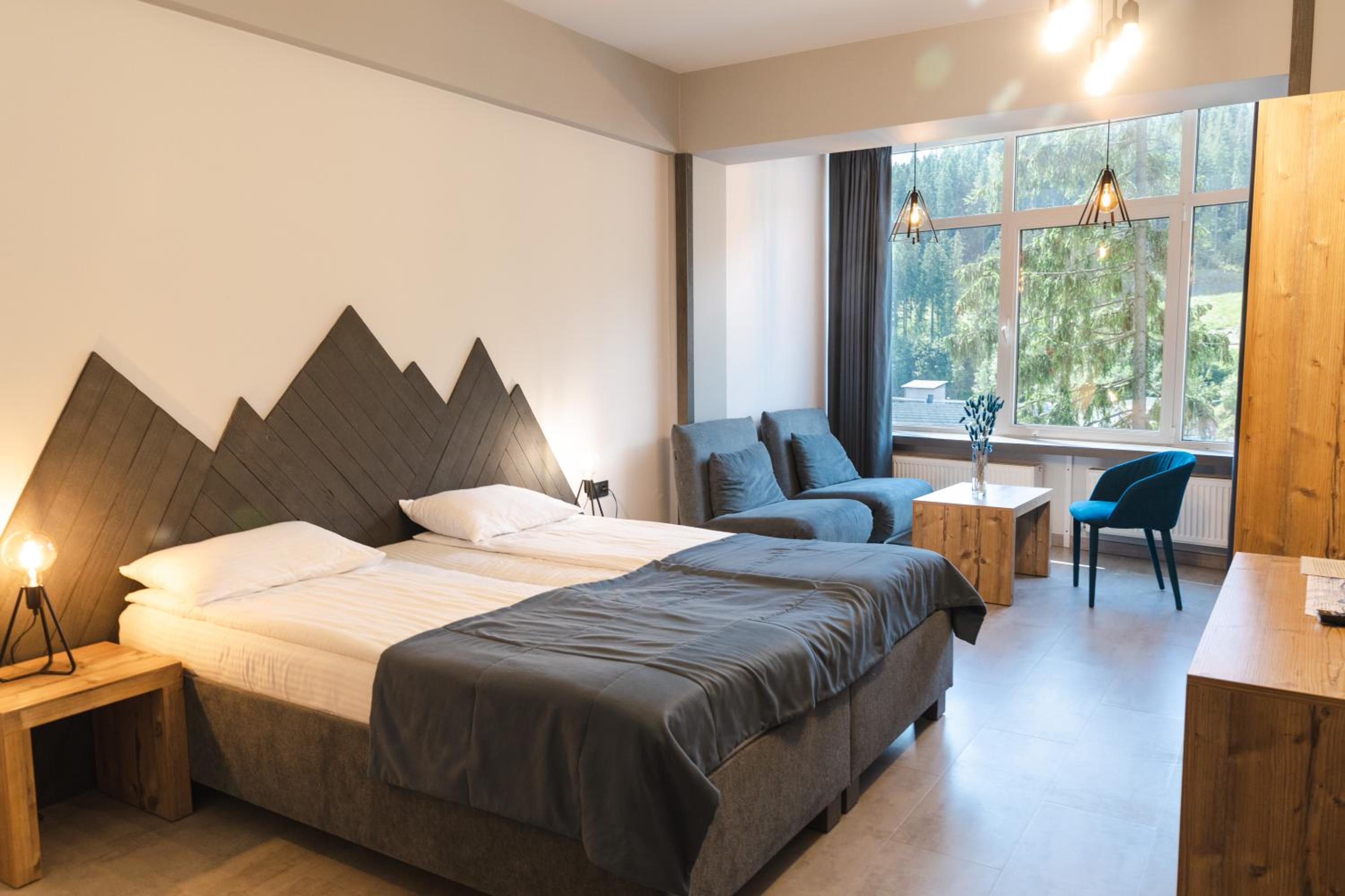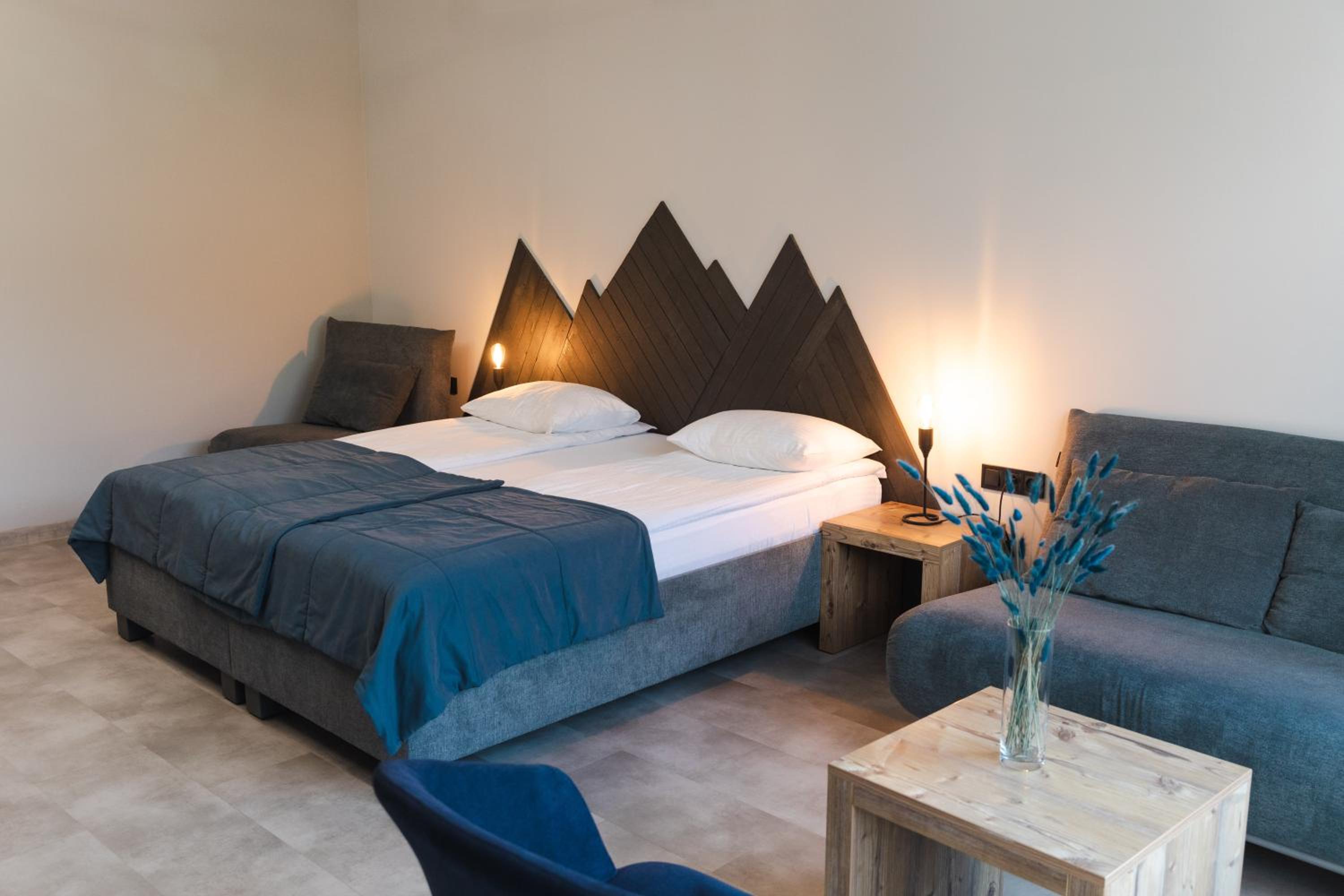 Located in Bukovel, BLUE mountain offers a luxurious stay with rooms featuring modern amenities like free WiFi, flat-screen TVs, and private bathrooms. Some rooms even boast stunning mountain views, providing a truly immersive experience.