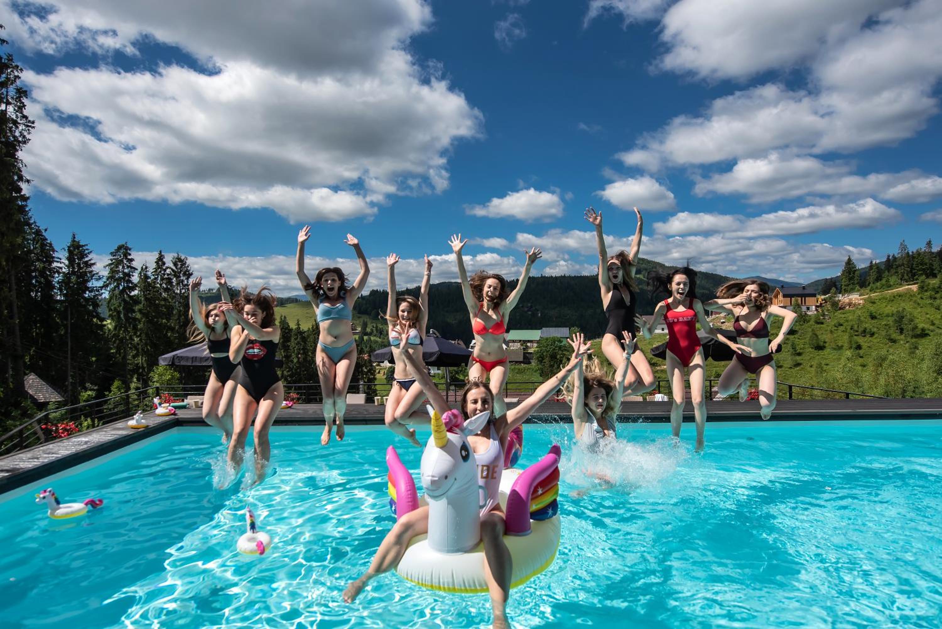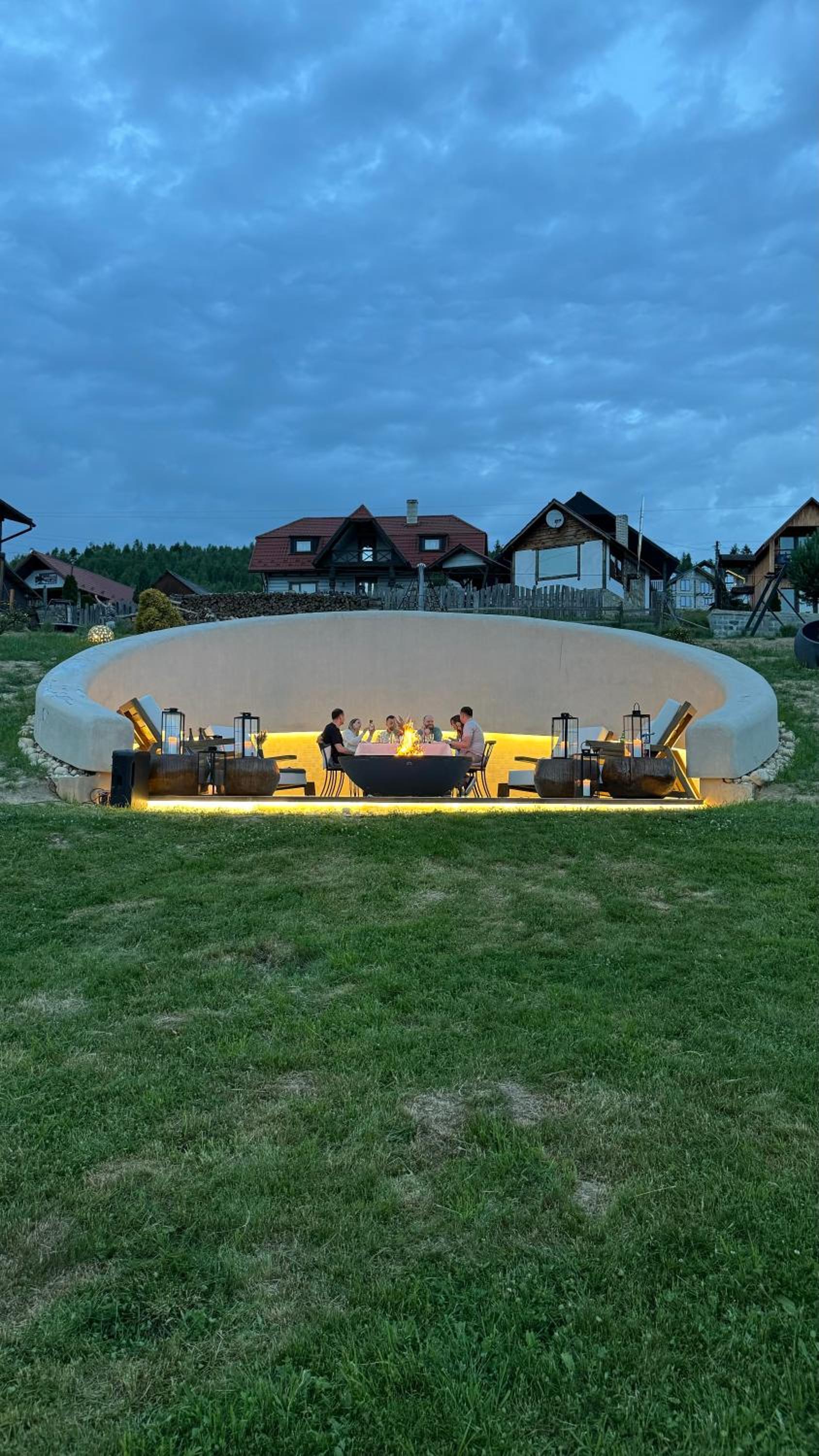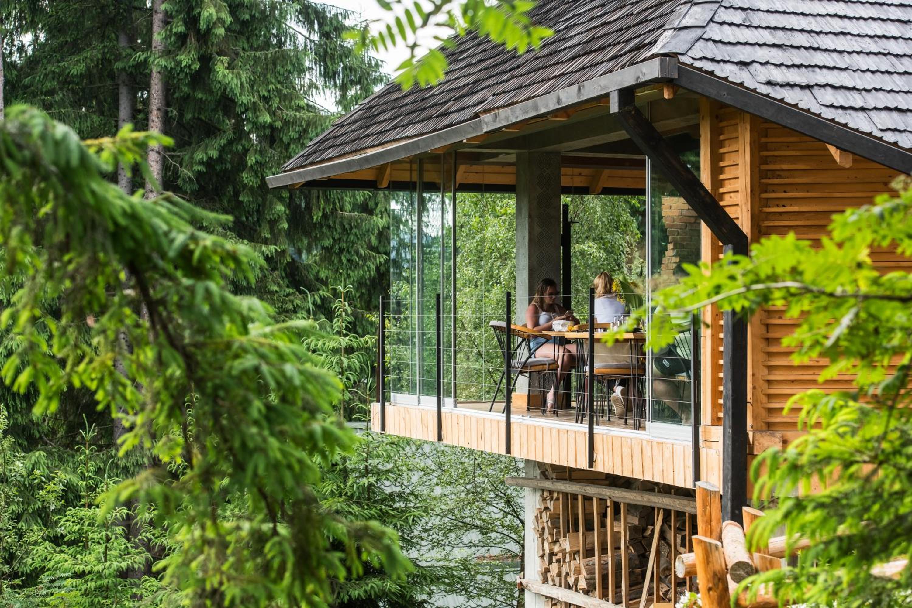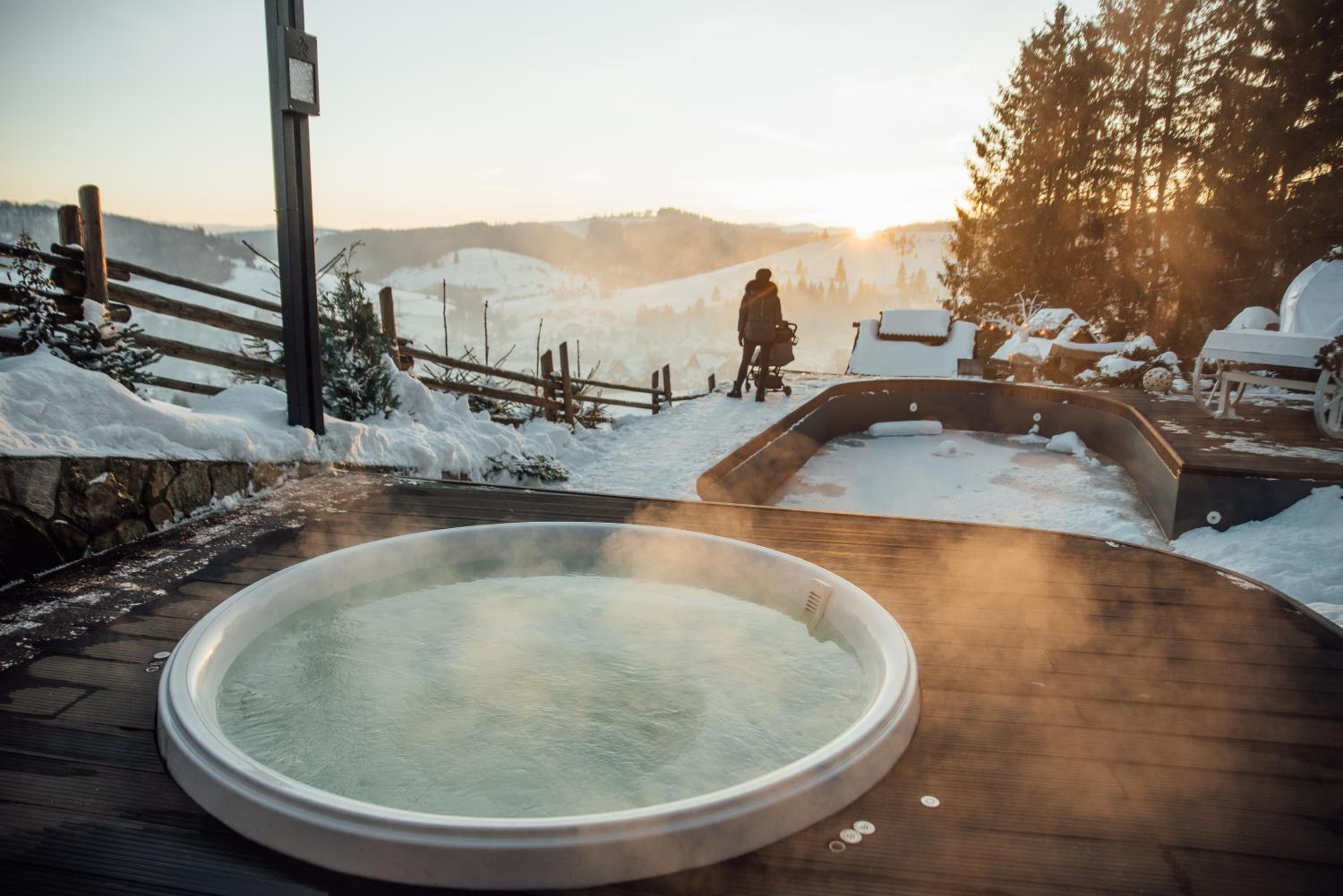 Територія — неймовірна! Все утопає у зелені, казкові фотозони, альтанки, вогнище під зорями, відкритий басейн і джакузі з видом на гори. Це місце ніби створене для перезавантаження й натхнення.