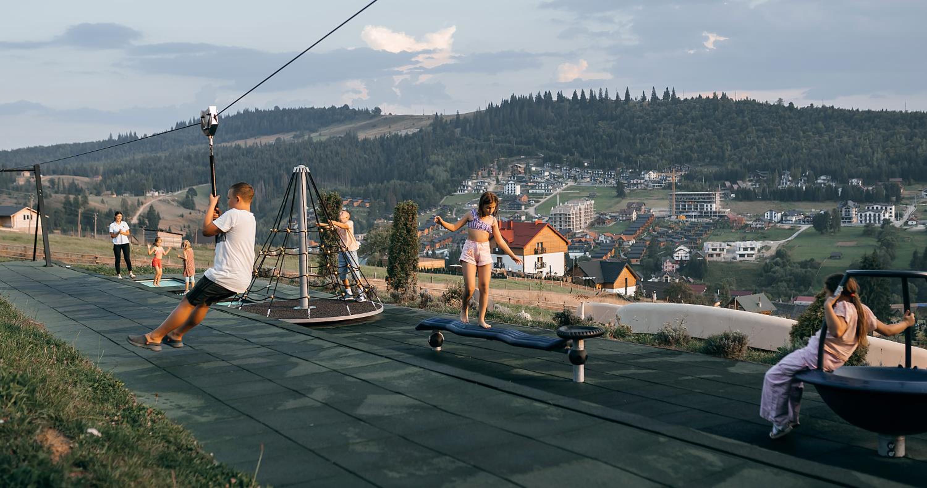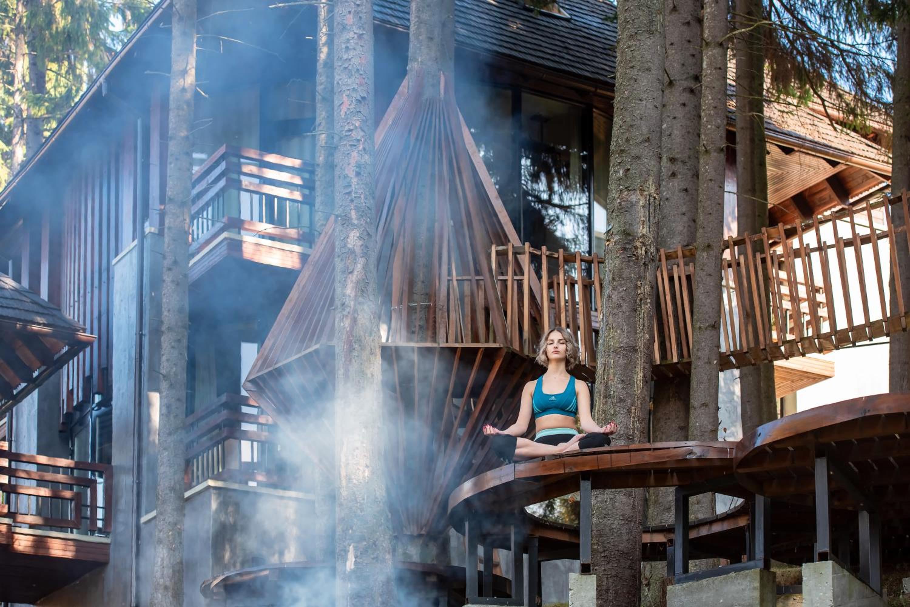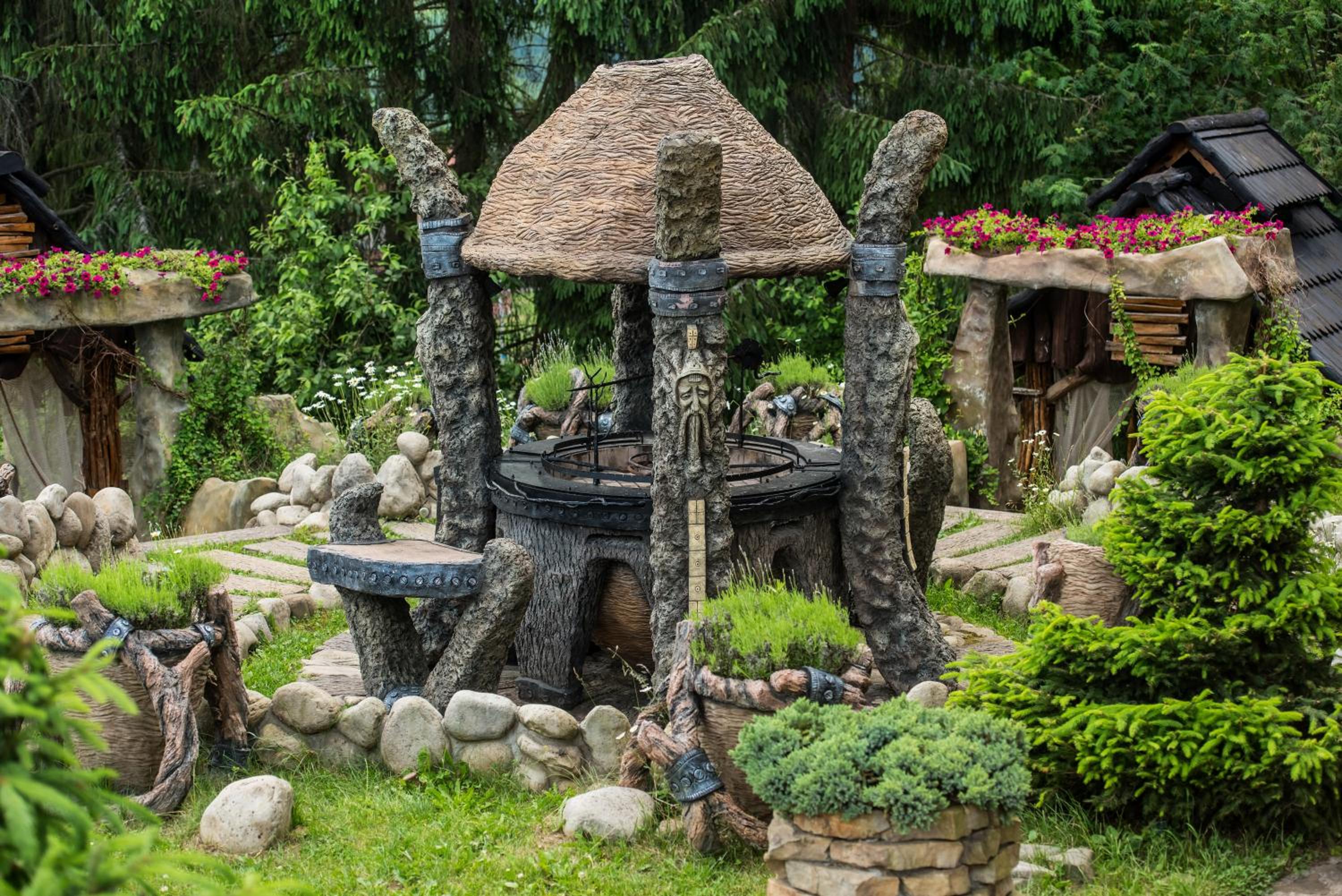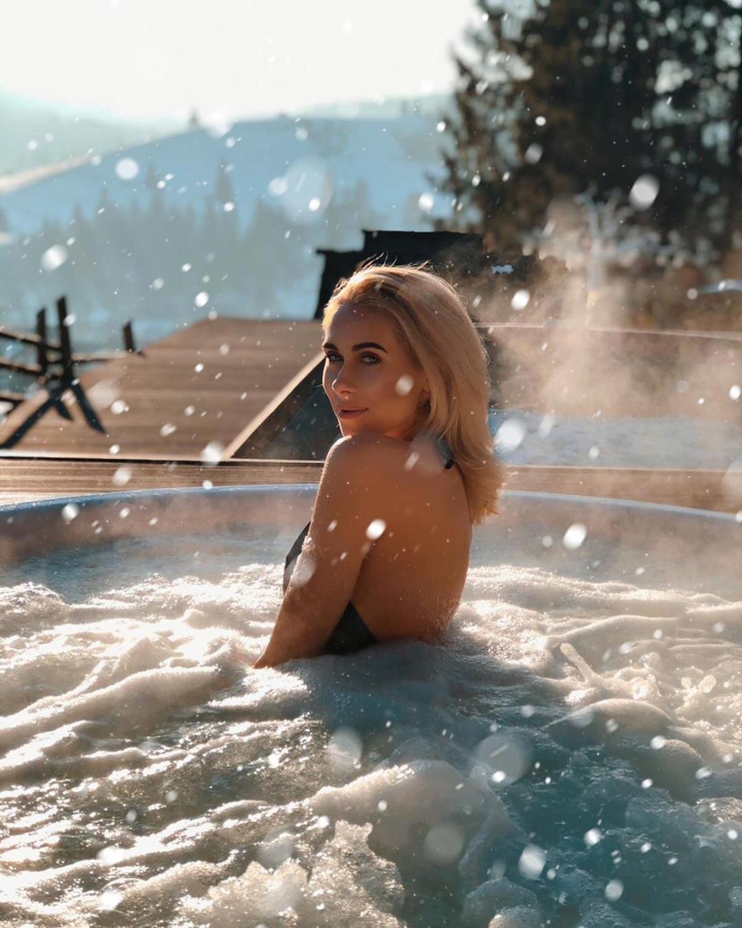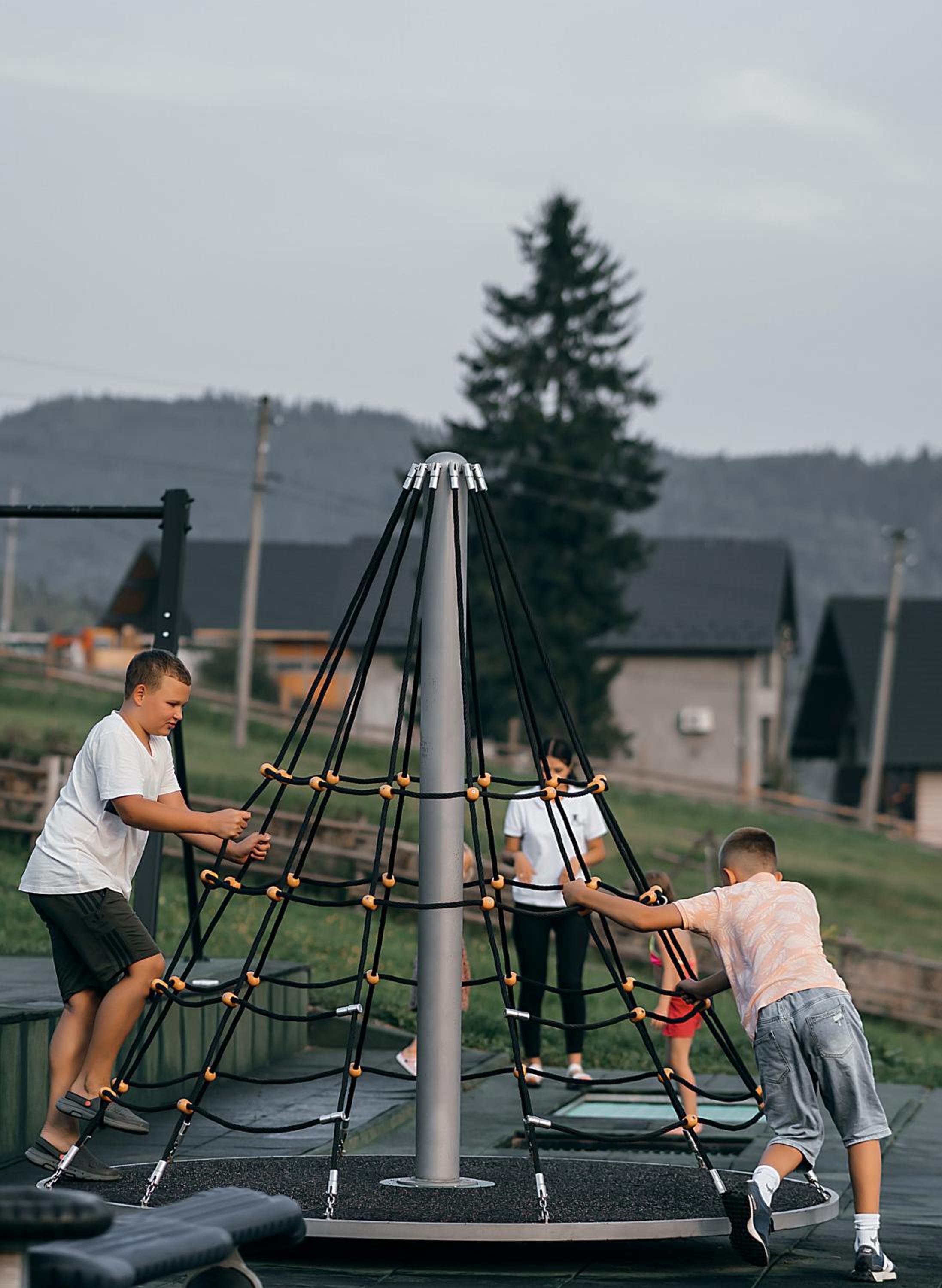Територія — неймовірна! Все утопає у зелені, казкові фотозони, альтанки, вогнище під зорями, відкритий басейн і джакузі з видом на гори. Це місце ніби створене для перезавантаження й натхнення.