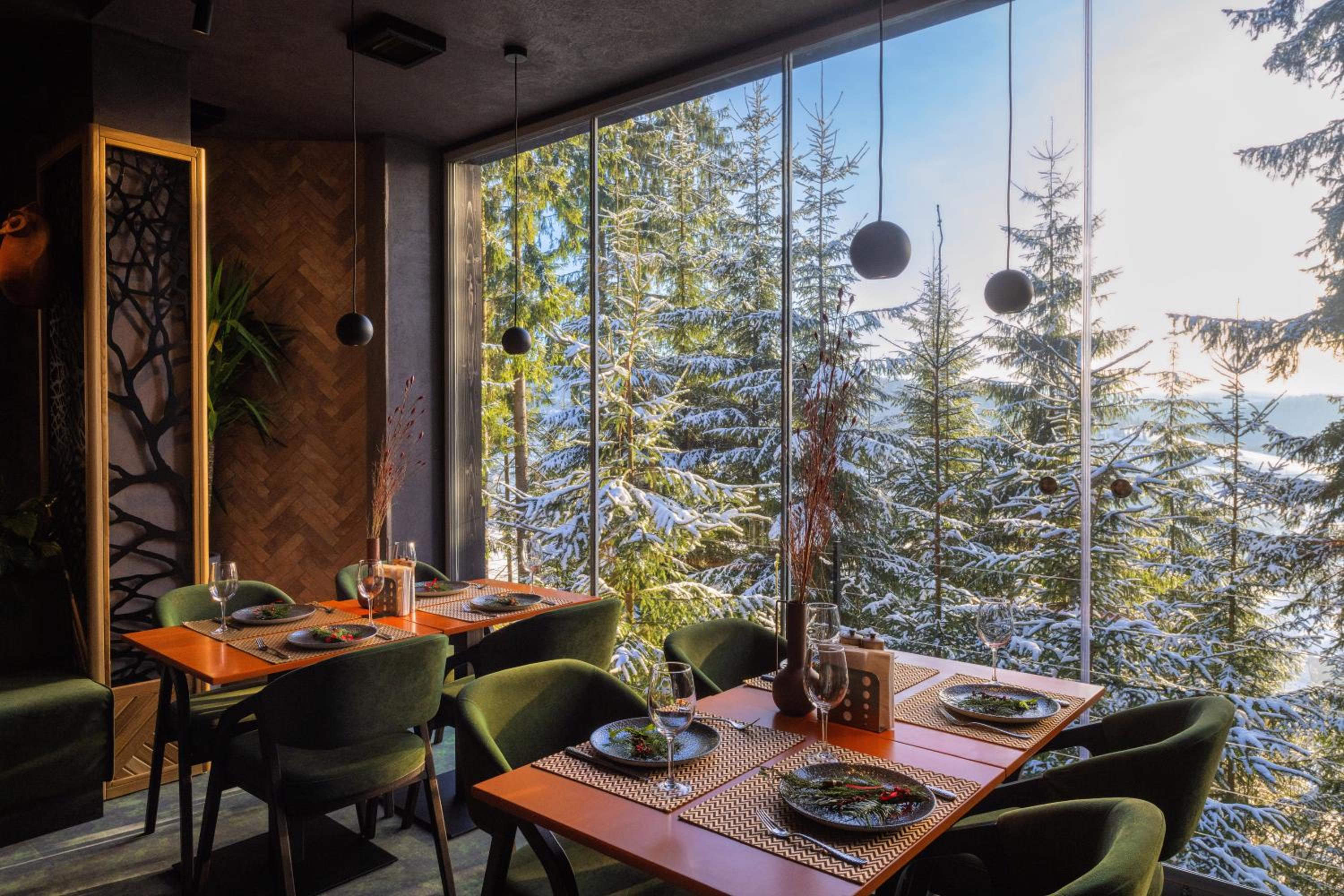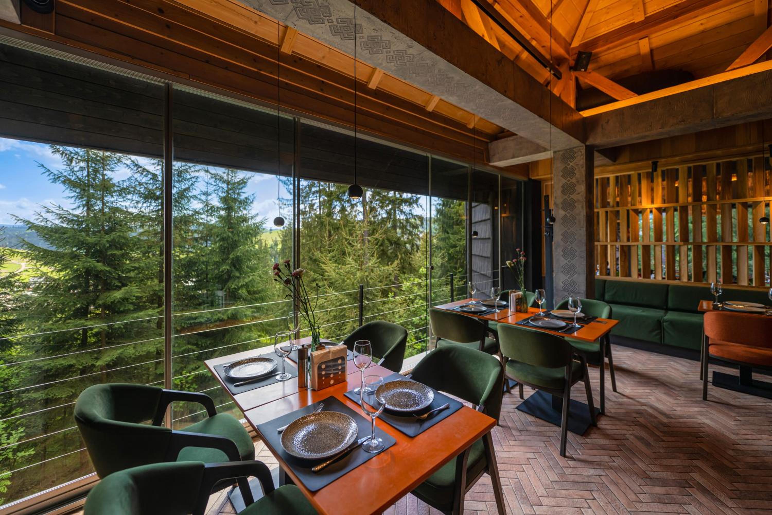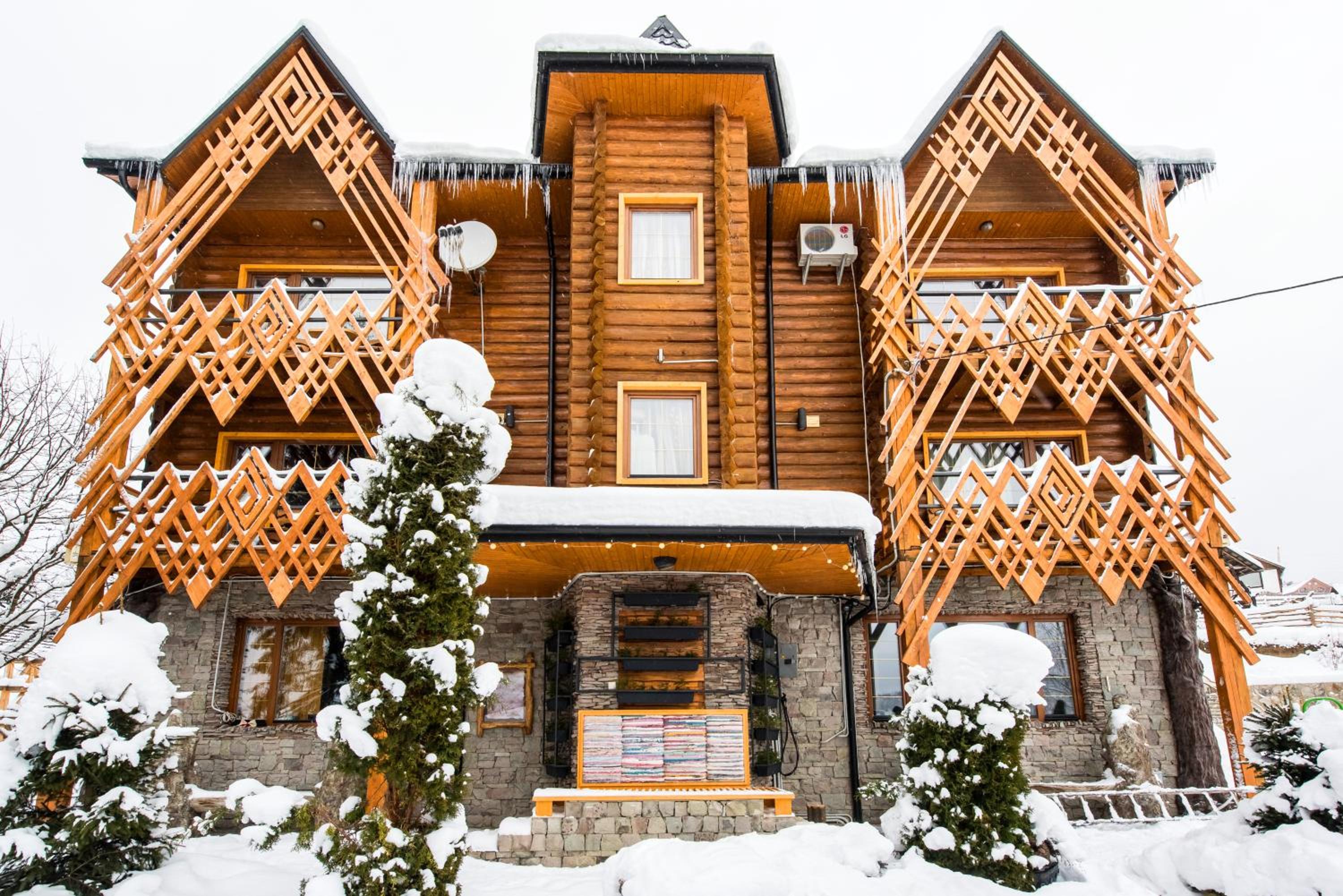 Convenient Amenities and Services: Benefit from free Wi-Fi, eco-friendly rooms, shuttle service to the ski slopes, and proximity to Bukovel Ski Resort and Guk waterfall.