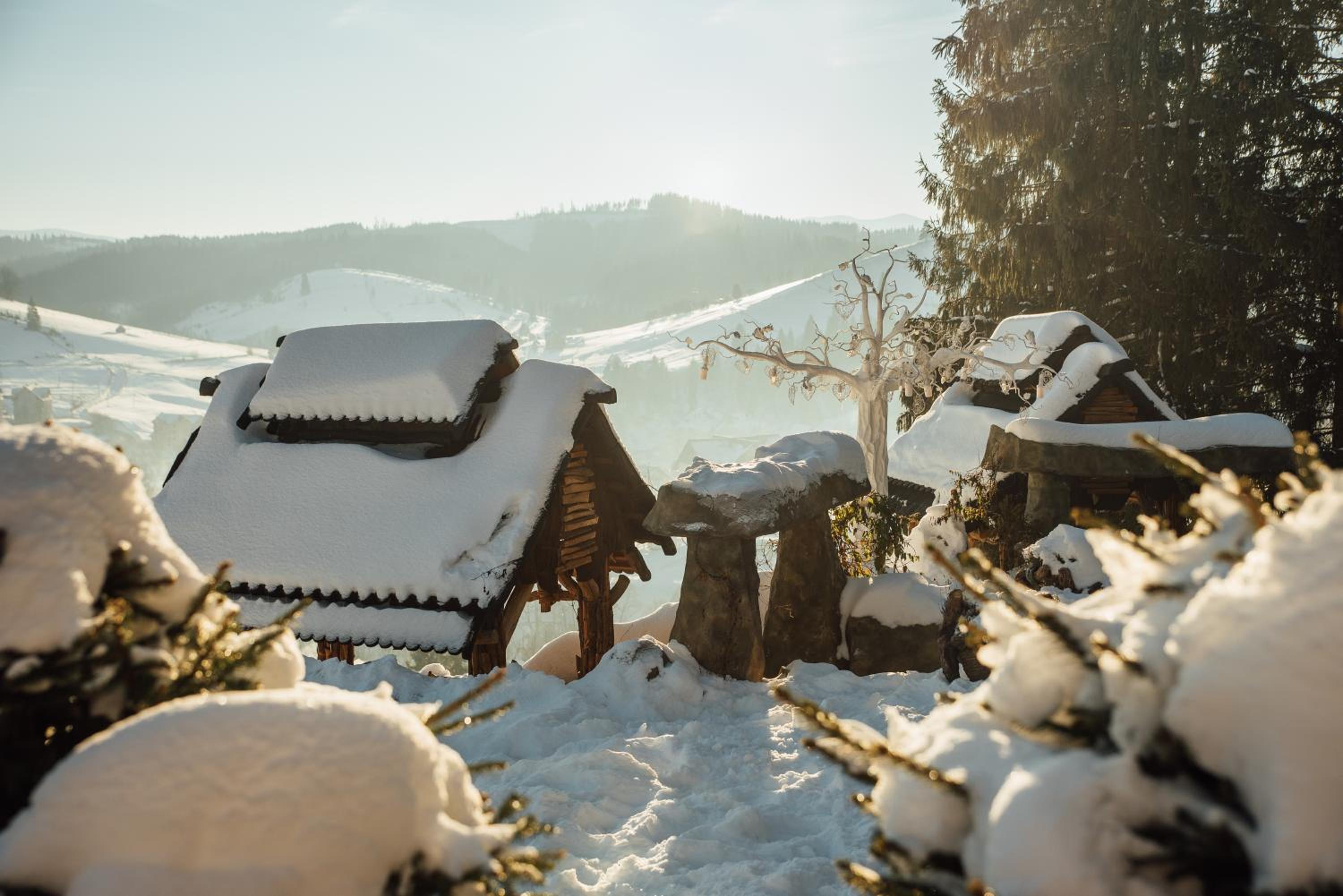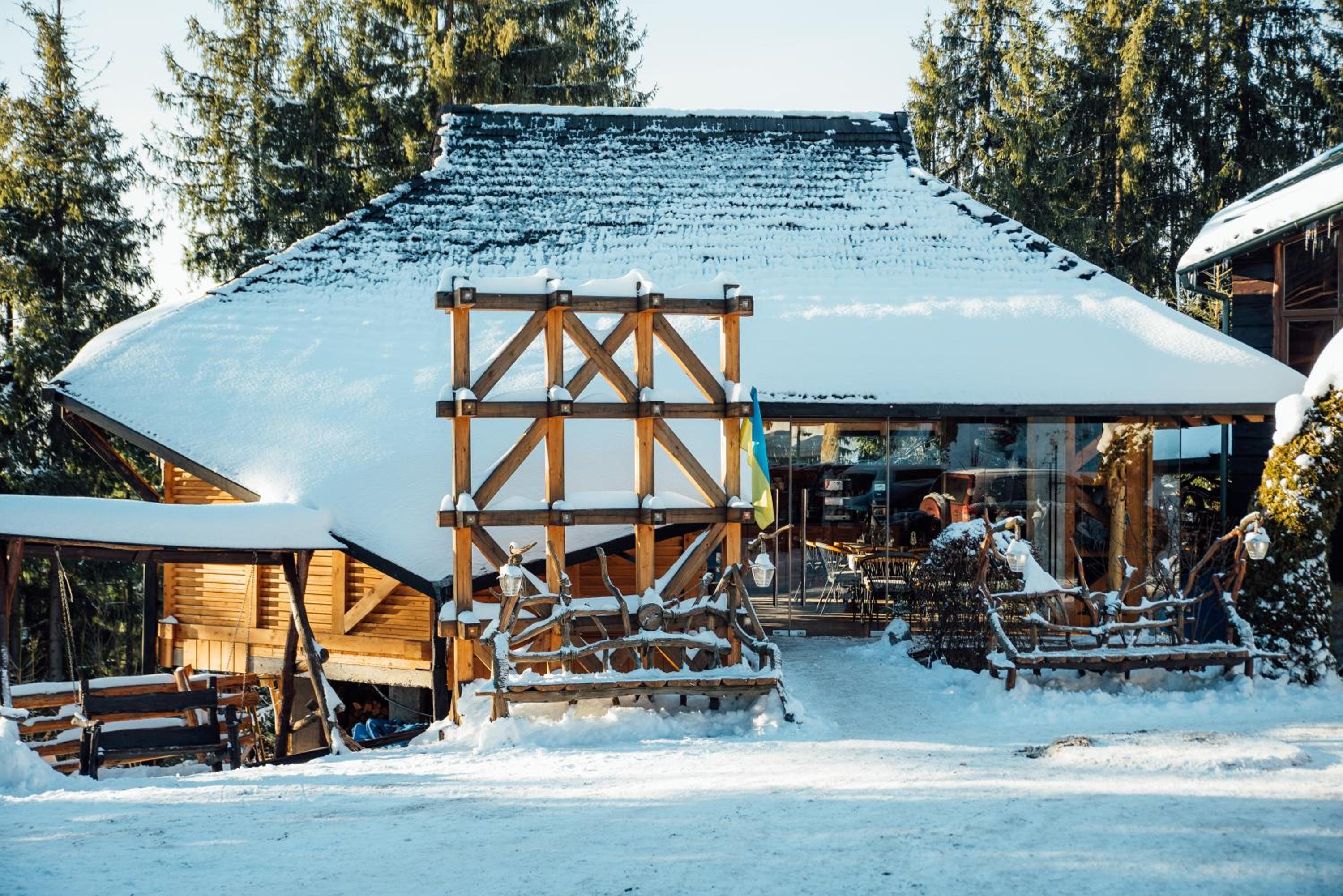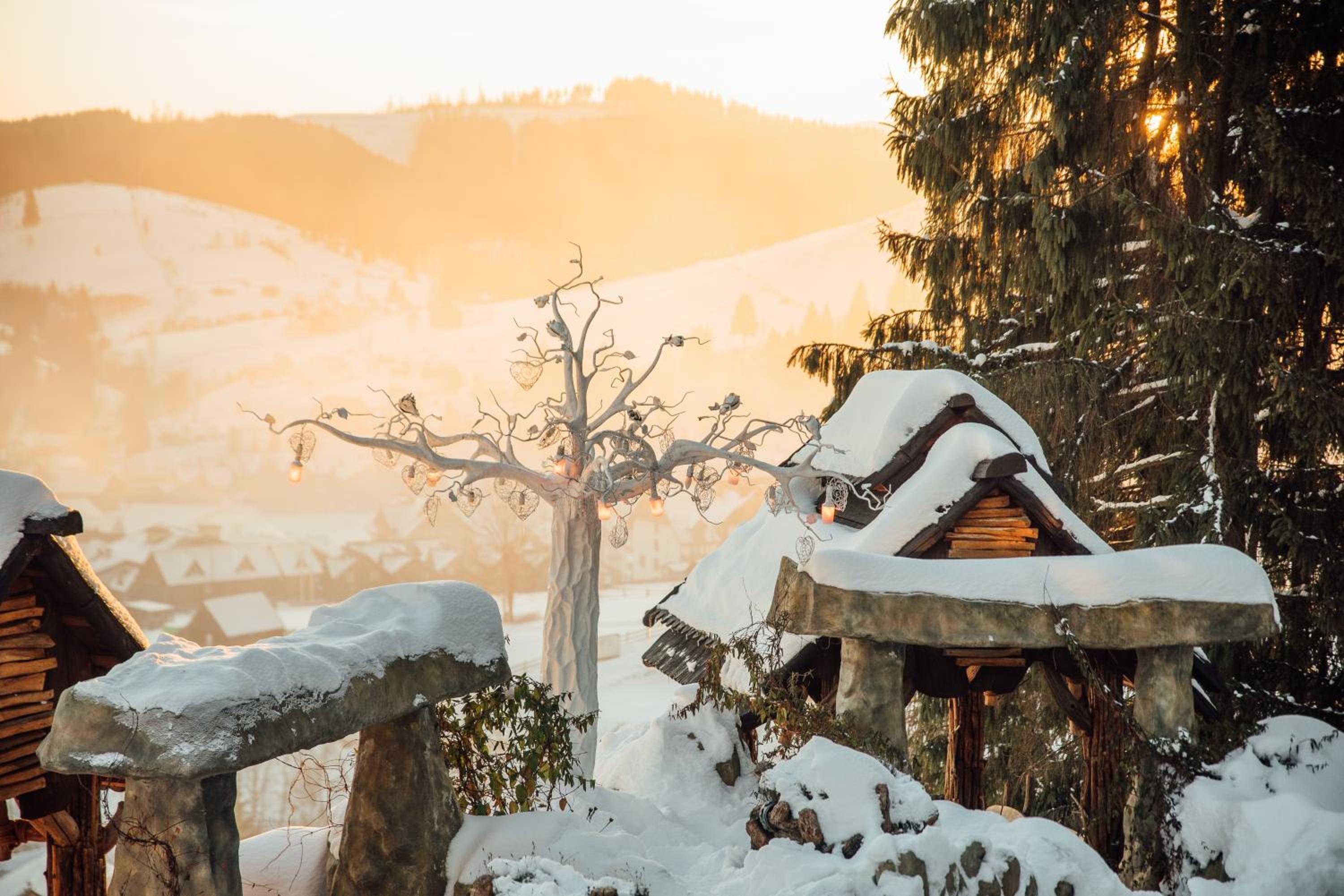 Convenient Amenities and Services: Benefit from free Wi-Fi, eco-friendly rooms, shuttle service to the ski slopes, and proximity to Bukovel Ski Resort and Guk waterfall.
