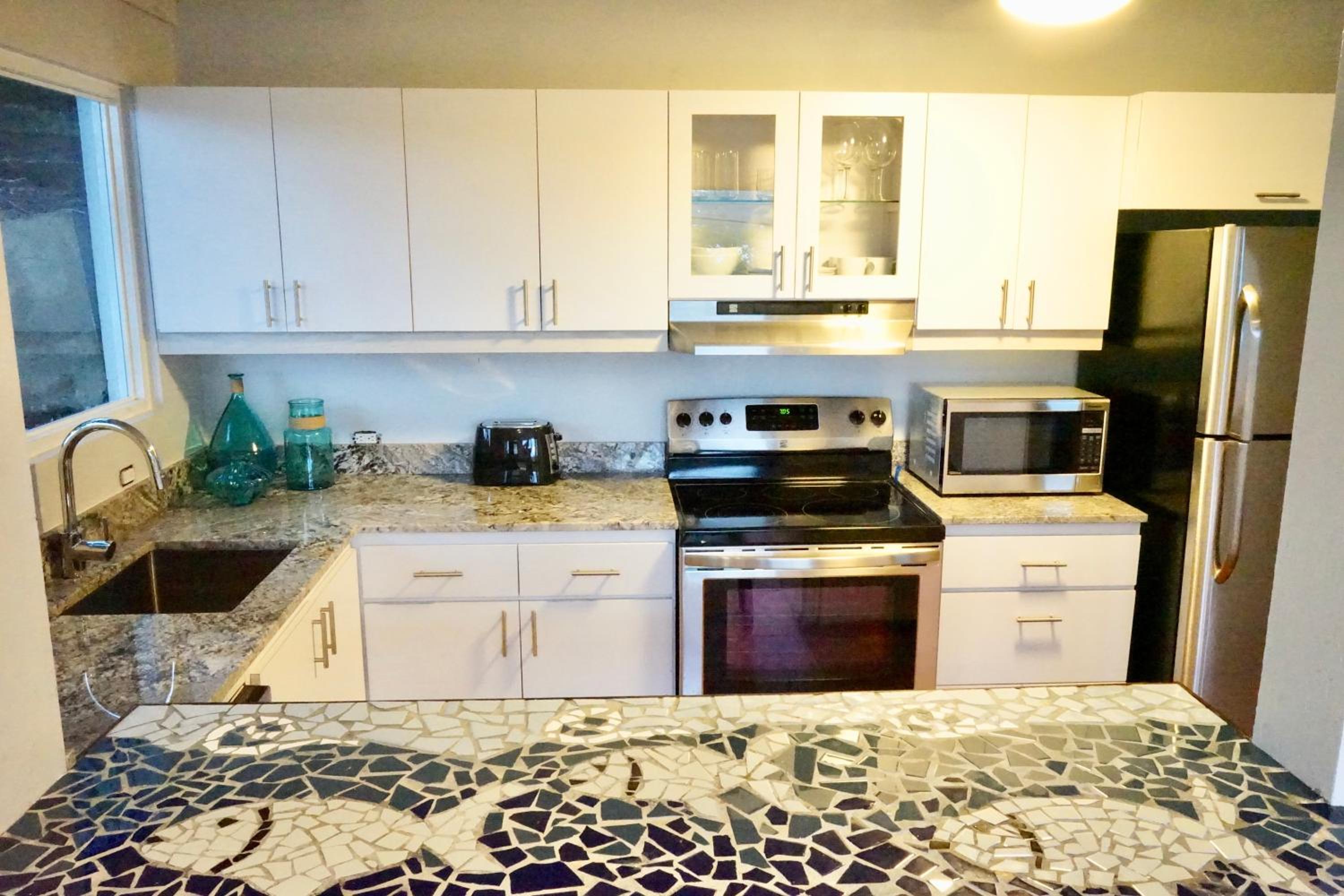 A little dated on the beds and appliances. No stove, and lots of mosquitos. Bring bug repellant! It could use a little more cleaning, and don't drink the wine lol.