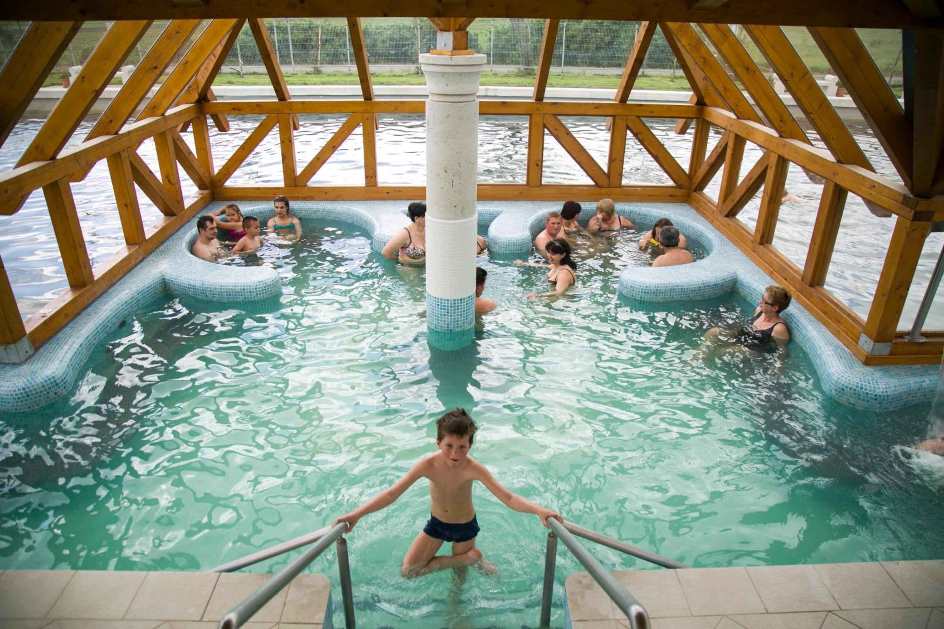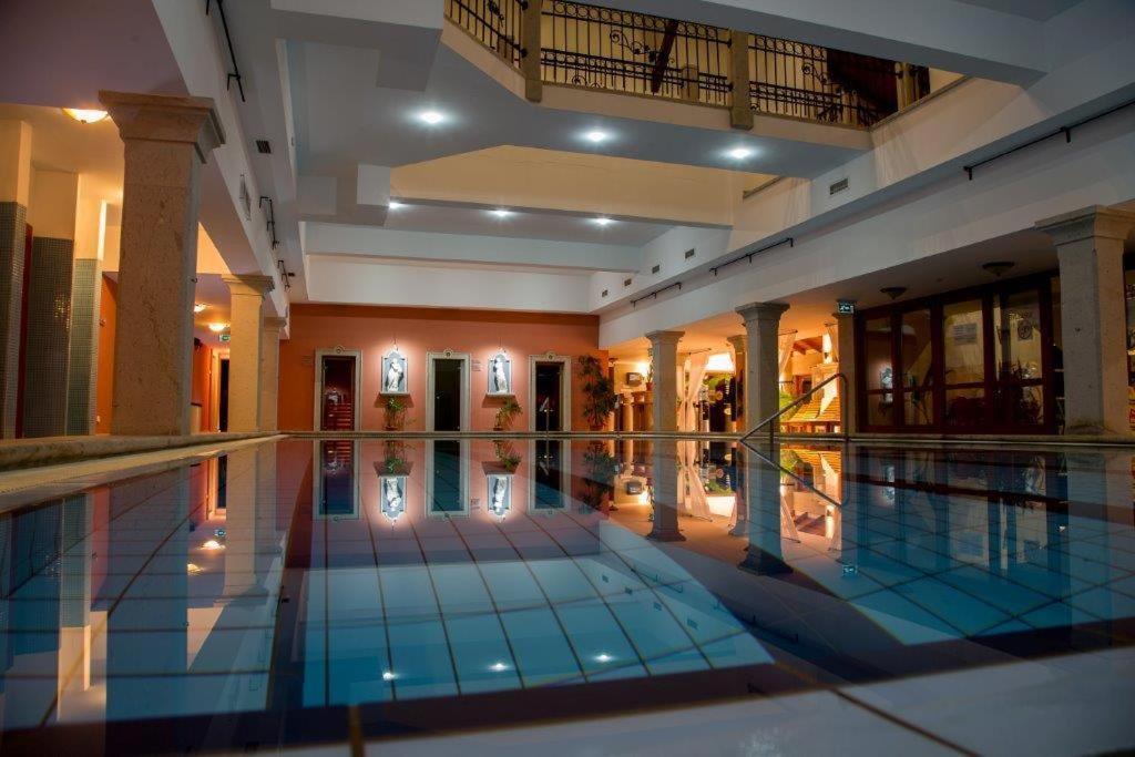 Indulge in fine Hungarian and international cuisine at the gourmet restaurant, relax in the outdoor pool with thermal water, and pamper yourself with spa facilities including saunas, hot tub, massages, and more.