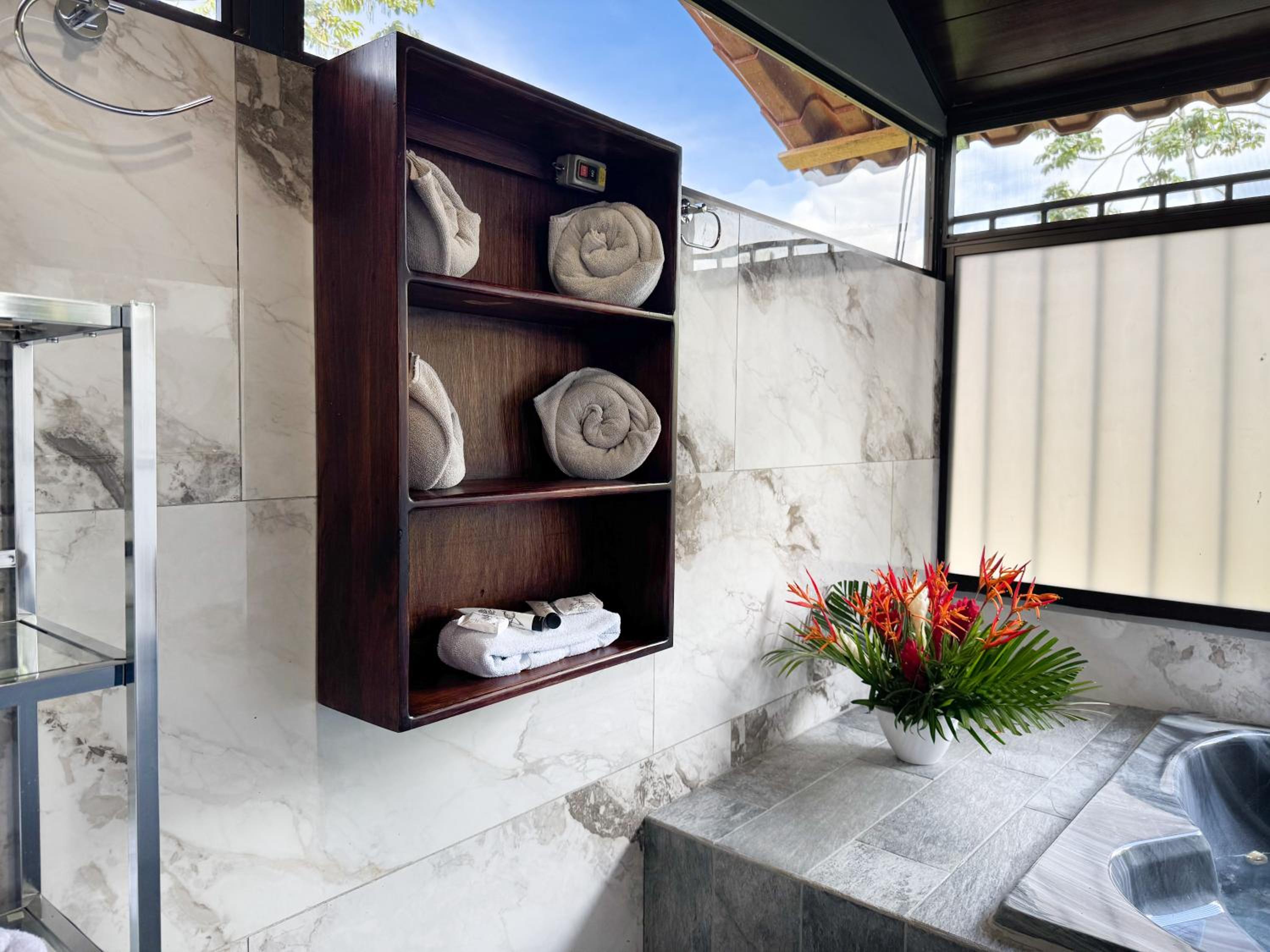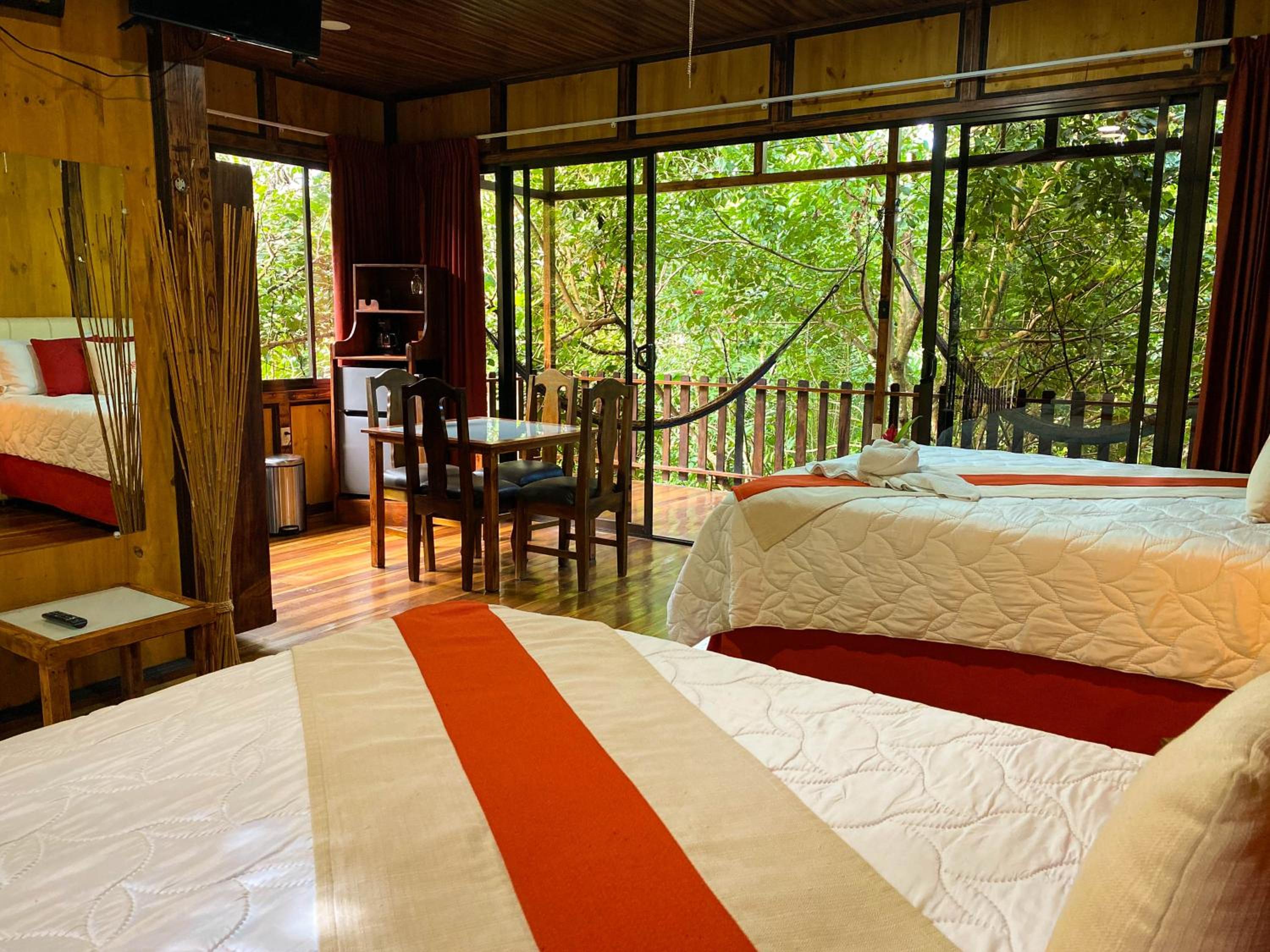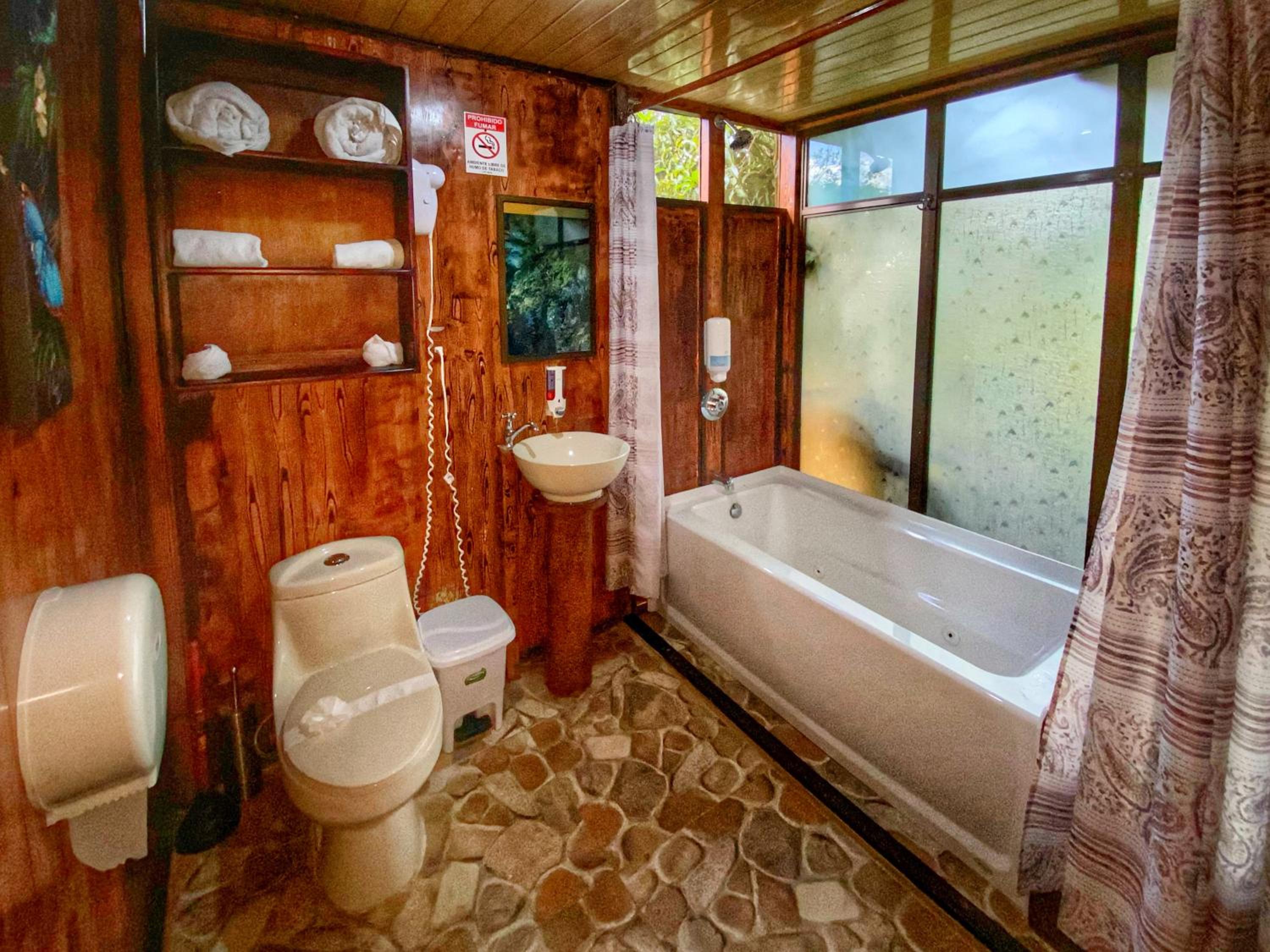 Está dentro del bosque pero hay sitios mucho más bonitos, las termas abrían súper tarde, la habitación no era bonita ni agradable, el desayuno fue el peor de todo mi viaje por Costa Rica