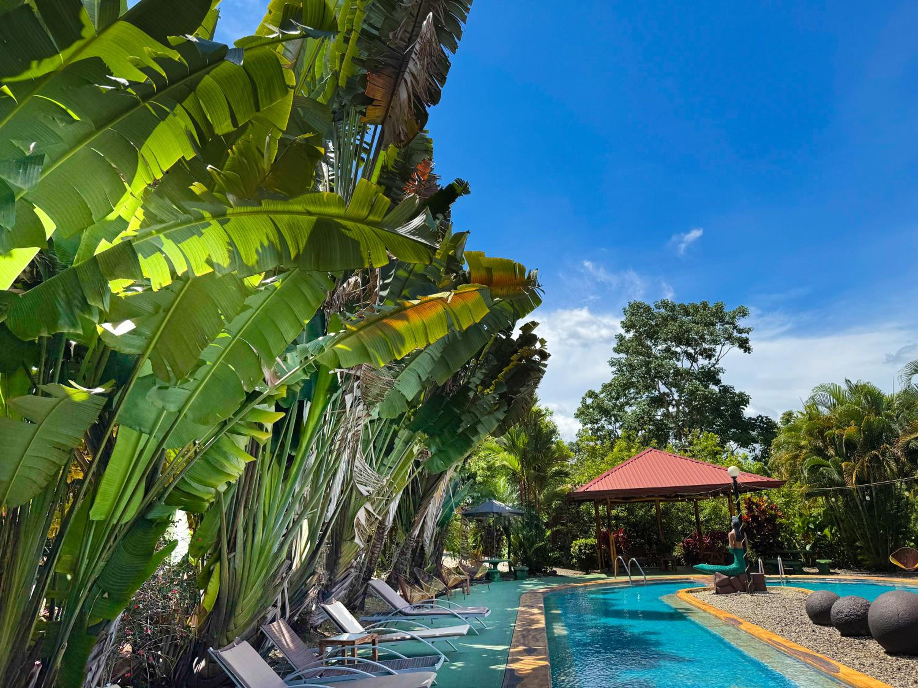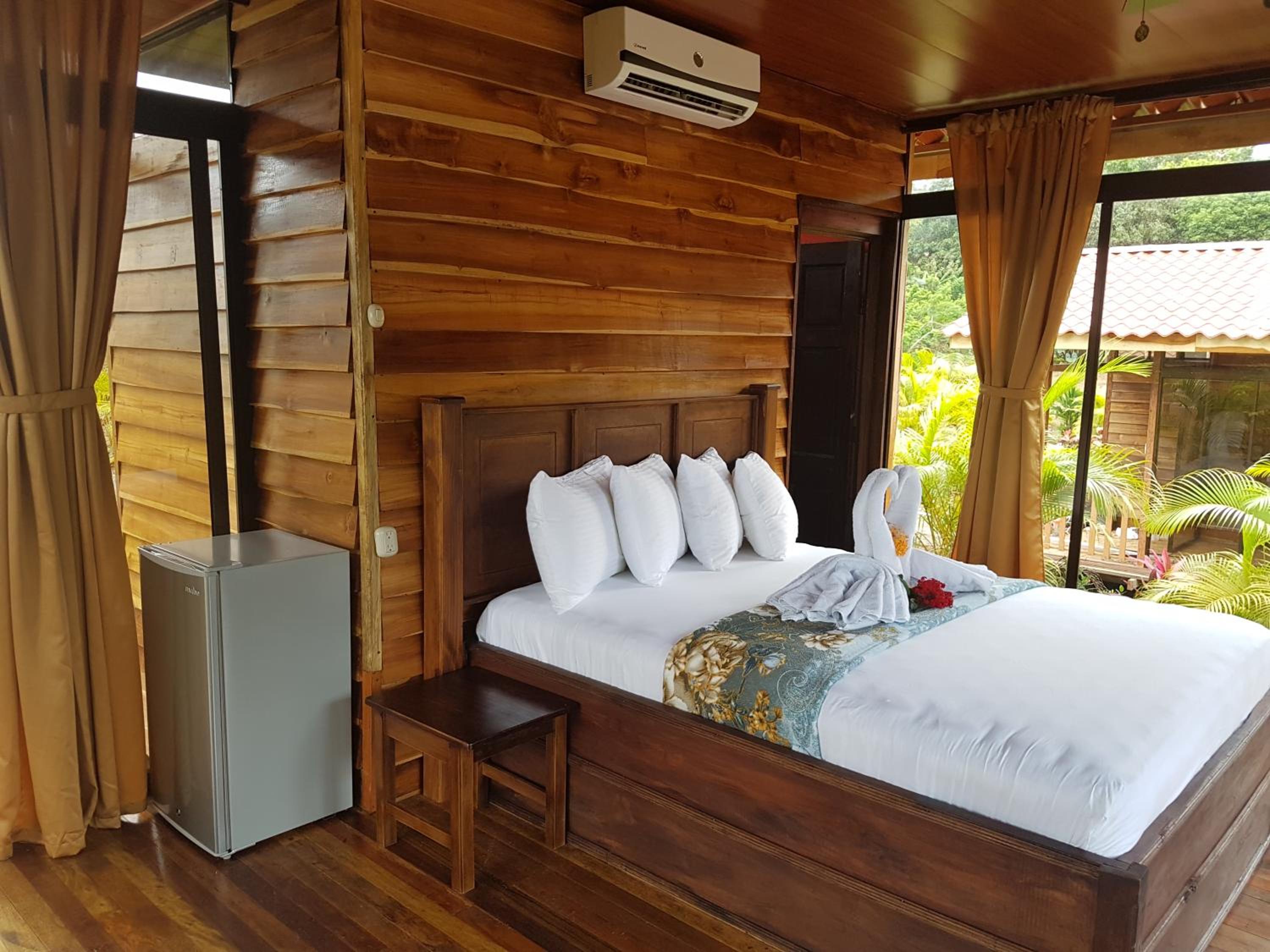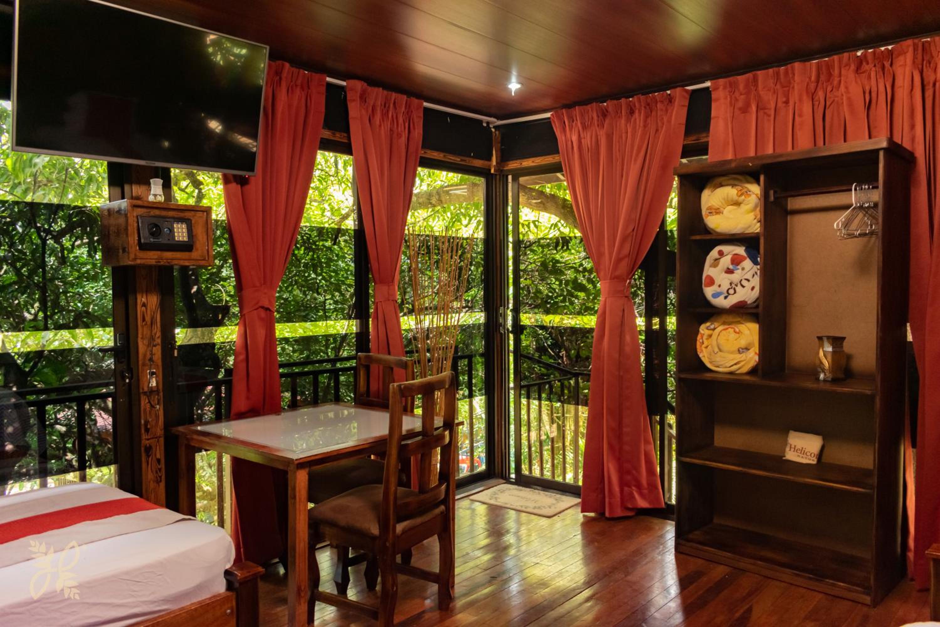 Nestled in the lush rainforest, Cabañas Heliconias offers rustic yet comfortable accommodations with stunning views of the mountains and pool. Each unit is equipped with modern amenities like air conditioning, TV, and a private patio for a relaxing stay.