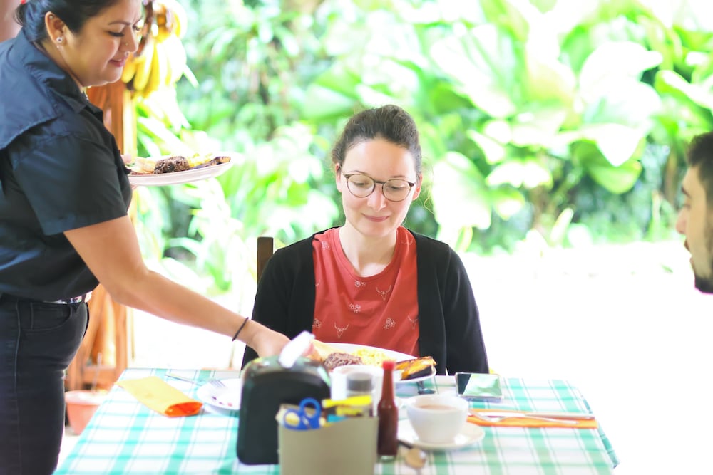 It is important to note that this hotel is slightly easier to navigate if you have your own car -- each room has its own parking spot, and rooms are spread apart. However, we did not have our own car and had no trouble walking between our room and reception/breakfast area. There is a slightly longer road for you to drive your car to your room, but there is a shortcut with a cool little hanging bridge over a stream for you to walk over. When we arrived, Hazel offered to have a staff member take our luggage to our room via car so we didn't have to walk it over the hanging bridge. So kind! We had rides arranged to pick us up at the hotel for all of our tours in the area, so we didn't worry about not having a rental car at the hotel. There are a few small convenience stores and delicious restaurants in short walking distance down the road from the hotel, so we walked a little if we needed a meal or snack. This gave us some extra opportunities to explore. Hazel also has a personal contact for someone who can take you to La Fortuna as an affordable option. He only charges $10 to La Fortuna and $10 back but be aware that he only speaks Spanish and doesn't generally work past 7 p.m.! He was very kind though. I speak Spanish so had no trouble.