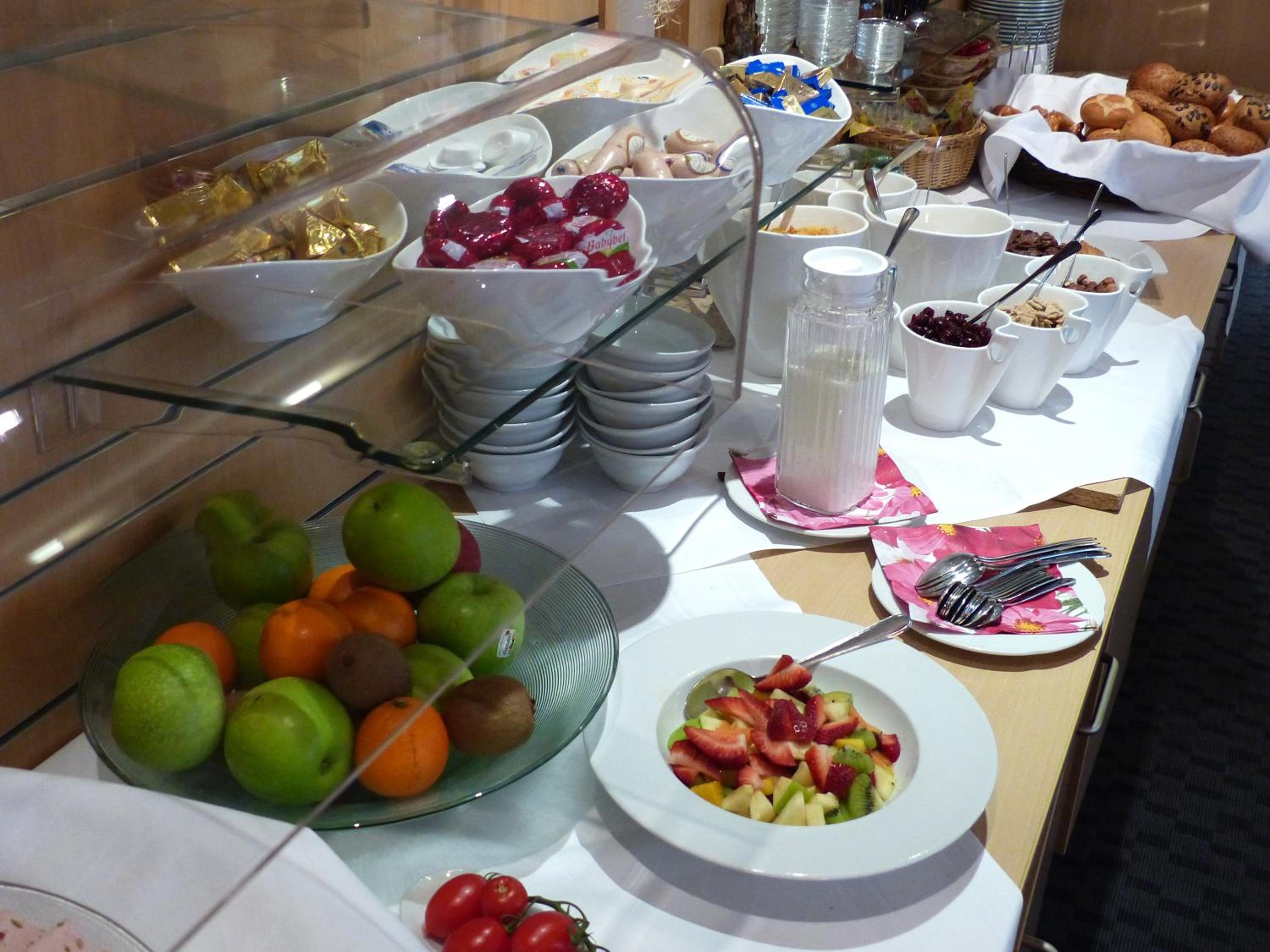 Sehr gutes, reichhaltiges Frühstück in gemütlichem Frühstücksraum mit nettem Service - und das zum günstigen Preis von 12,00 Euro pro Person.