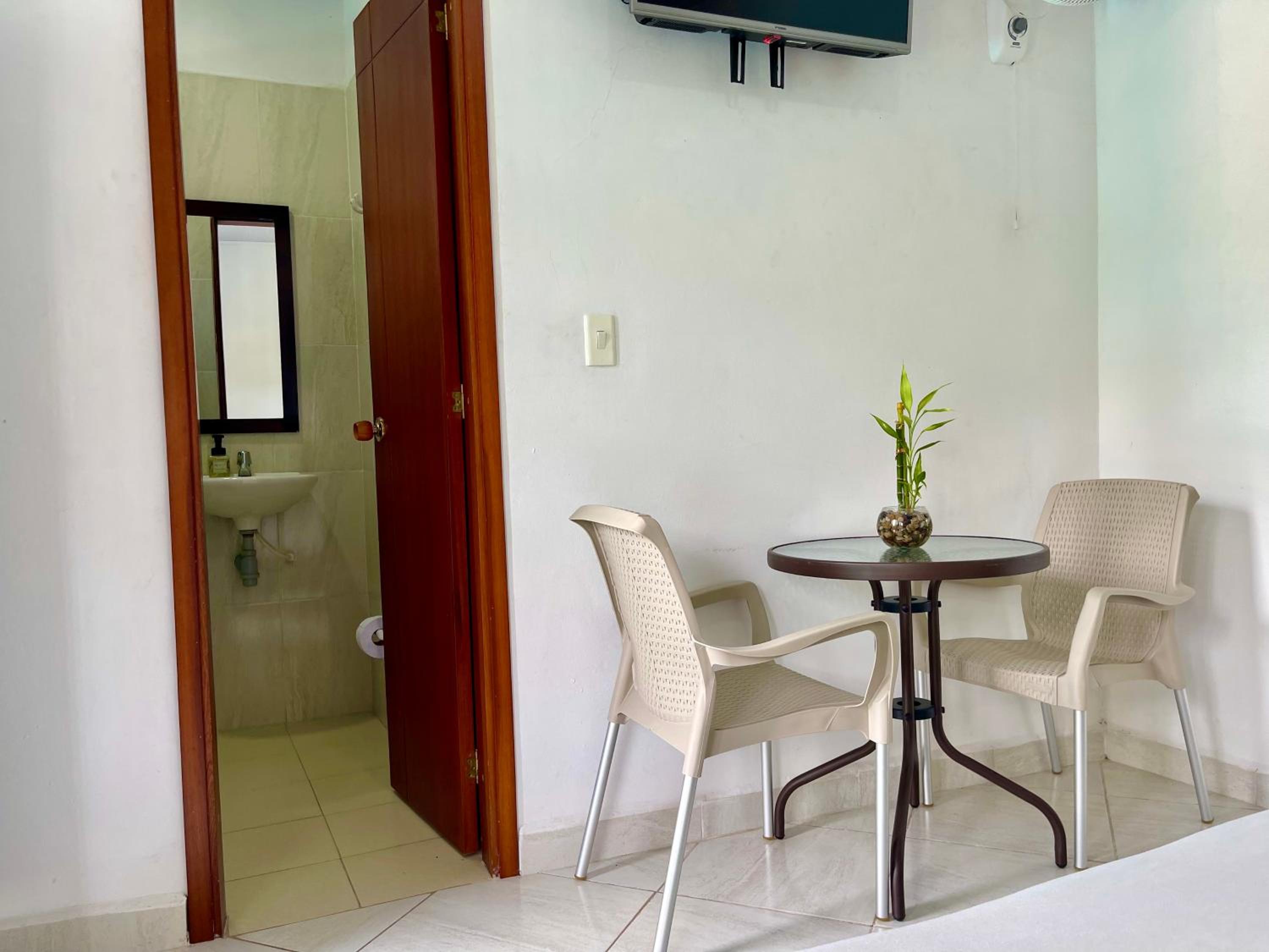 Para el precio, a la habitación le hace falta el aire acondicionado y el minibar no enfriaba, el parqueadero no está dentro del hotel (es una cuadra ) y la calle de acceso al hotel es empinada y con superficie irregulares por cuanto ir a dejar el vehículo allá se vuelve complejo.