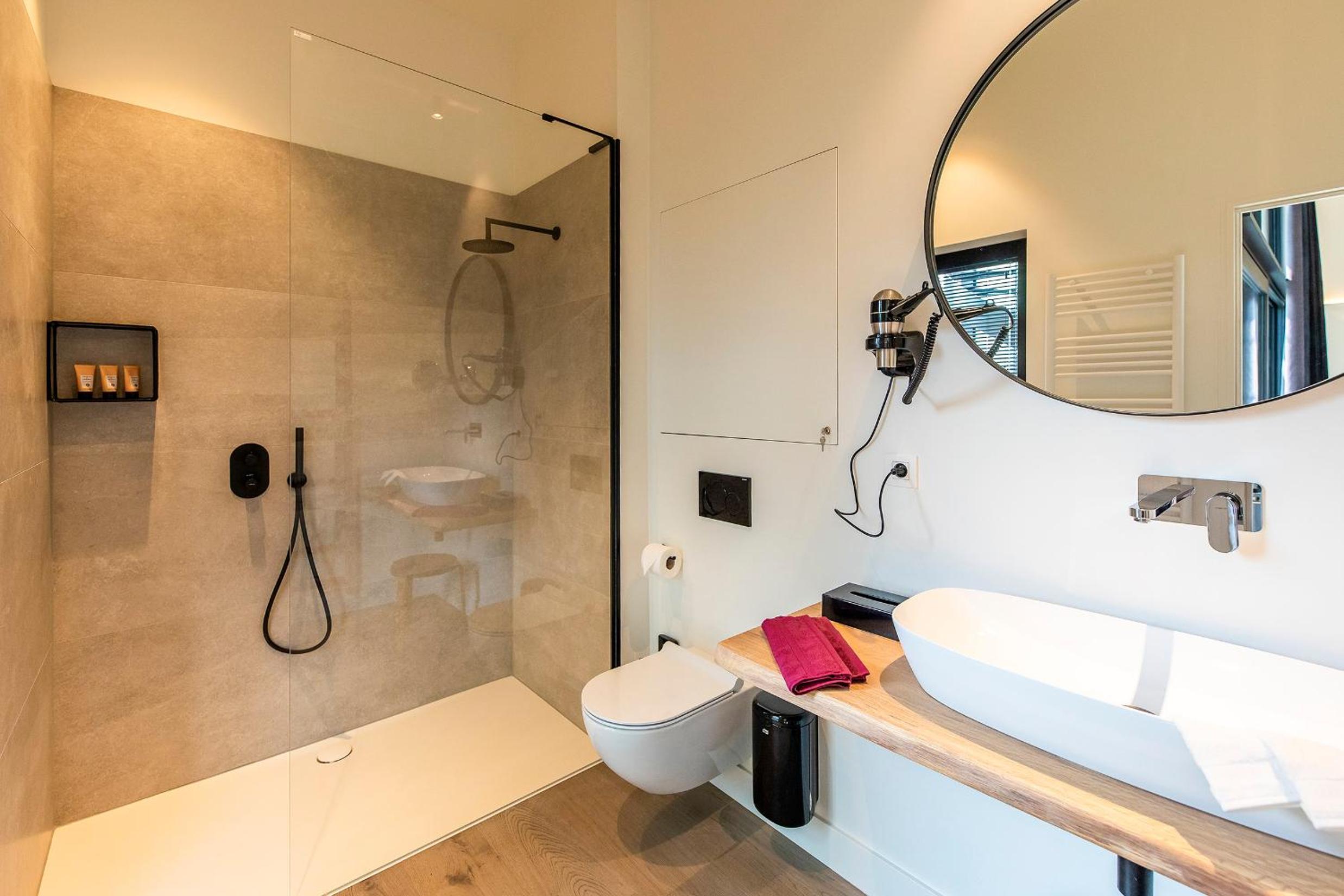 Het enige kleine minpuntje was dat de schuifdeur naar de badkamer onderaan een vrij grote opening had en de ruimte daardoor niet helemaal afsloot.