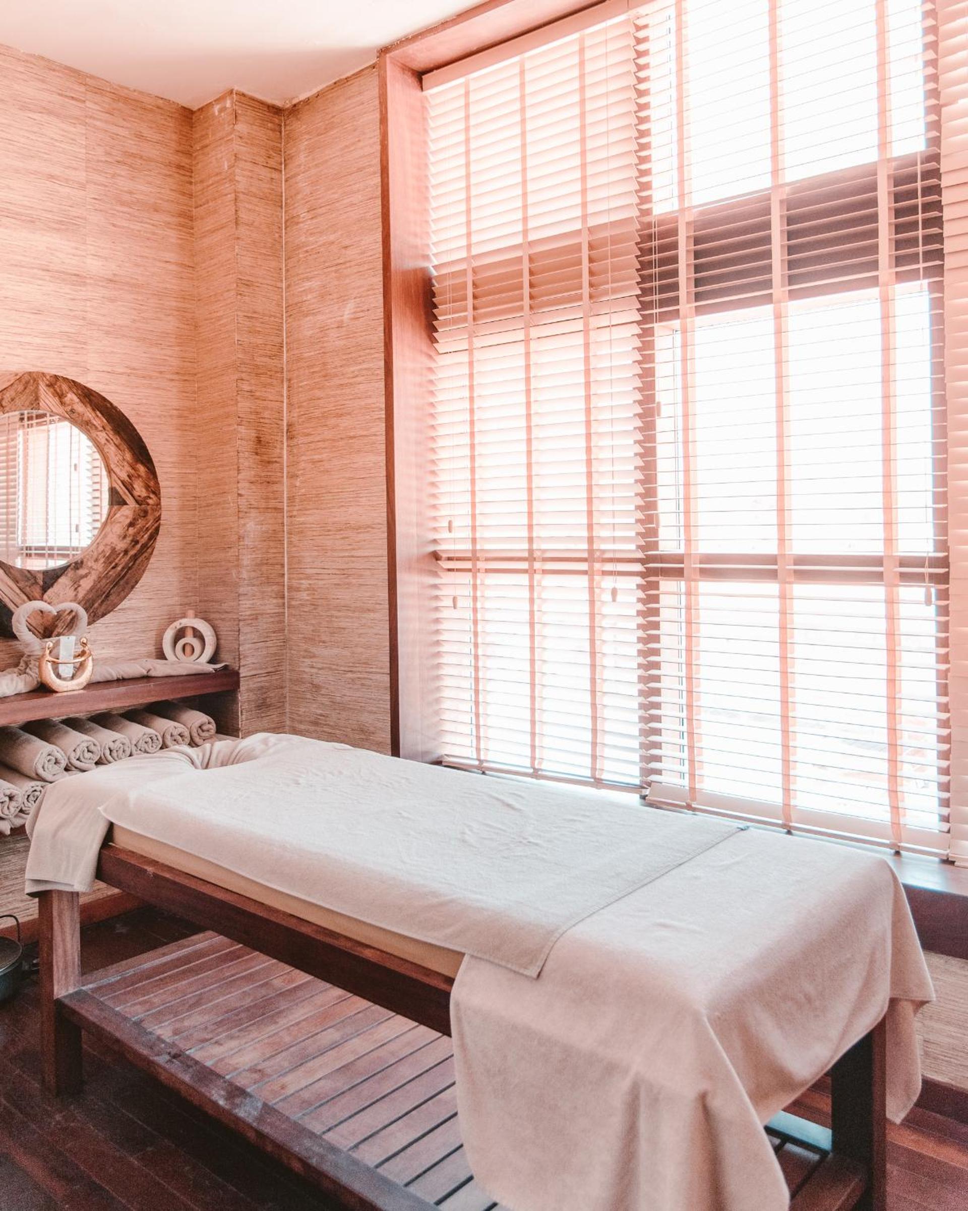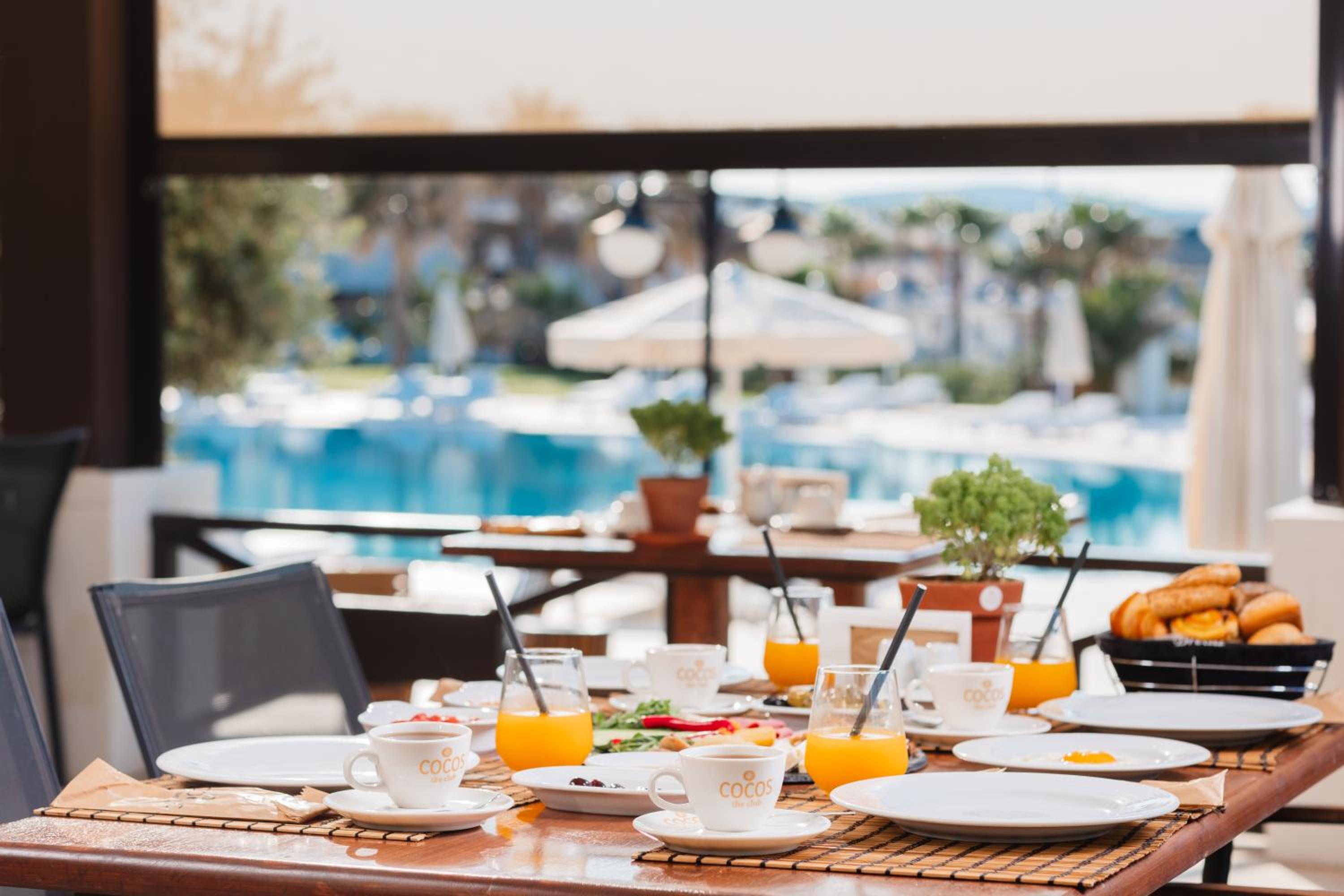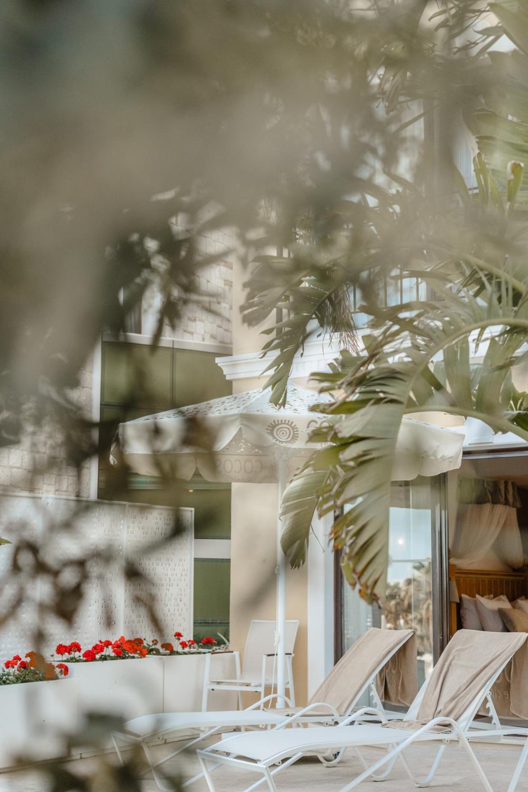 La deco très cosy avec son architecture, les transats piscine et plage très confortable et le petit déjeuner très varié .