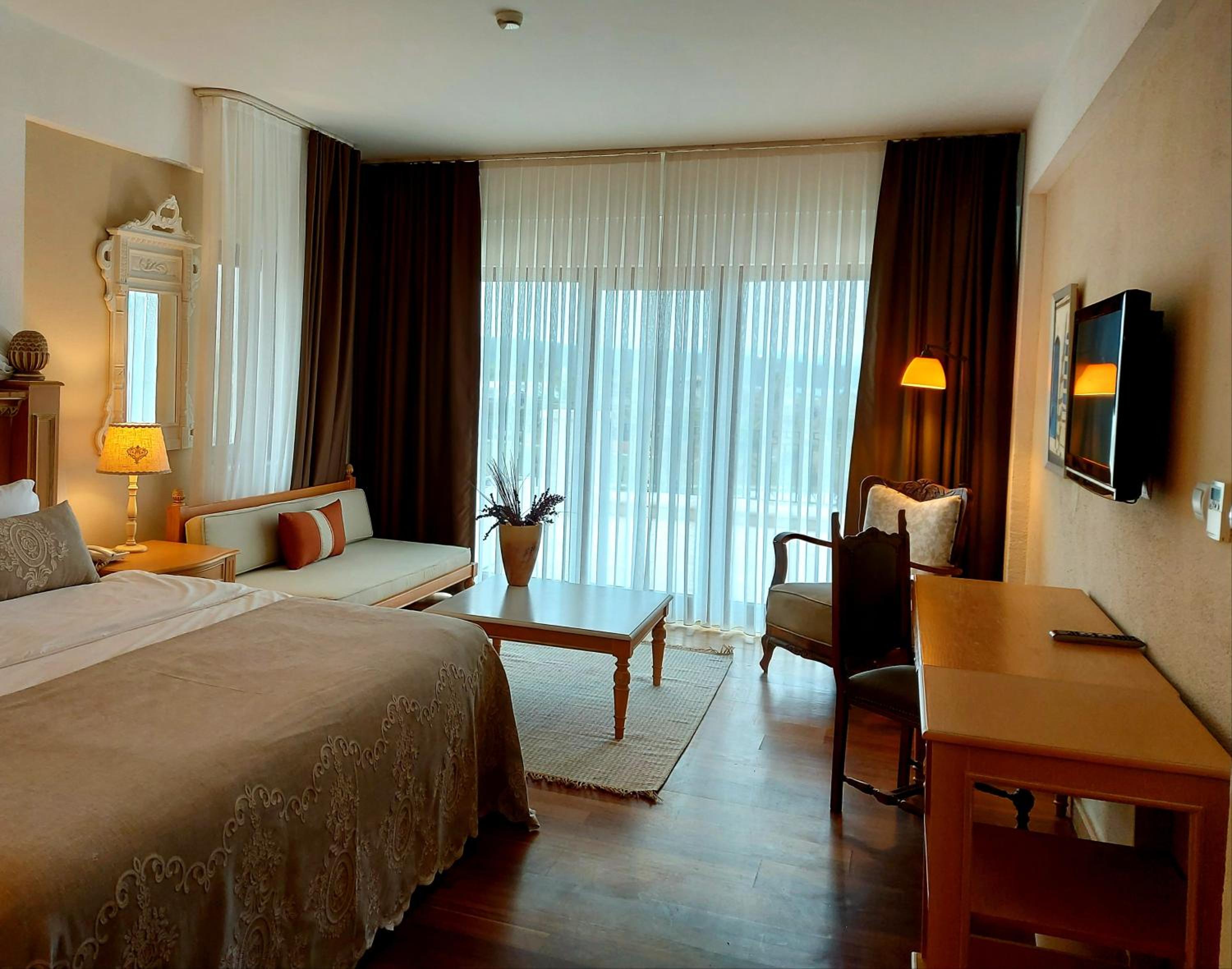 Offering spacious rooms with a private balcony, Solto Alaçati Hotel is a serene retreat surrounded by palm gardens along the Aegean Sea. Each elegantly decorated room features free WiFi, an LCD TV, a minibar, and a modern bathroom.