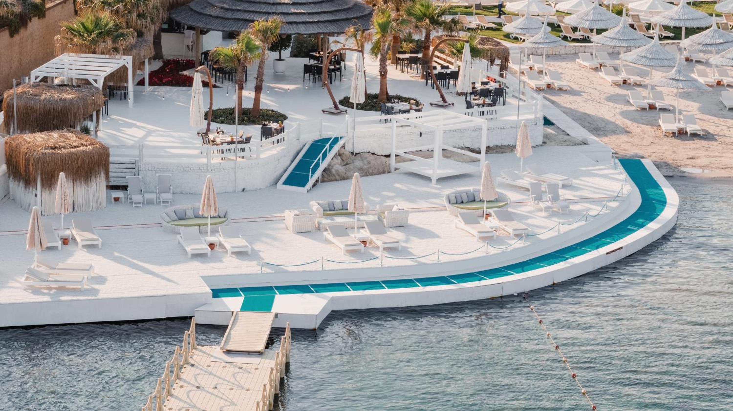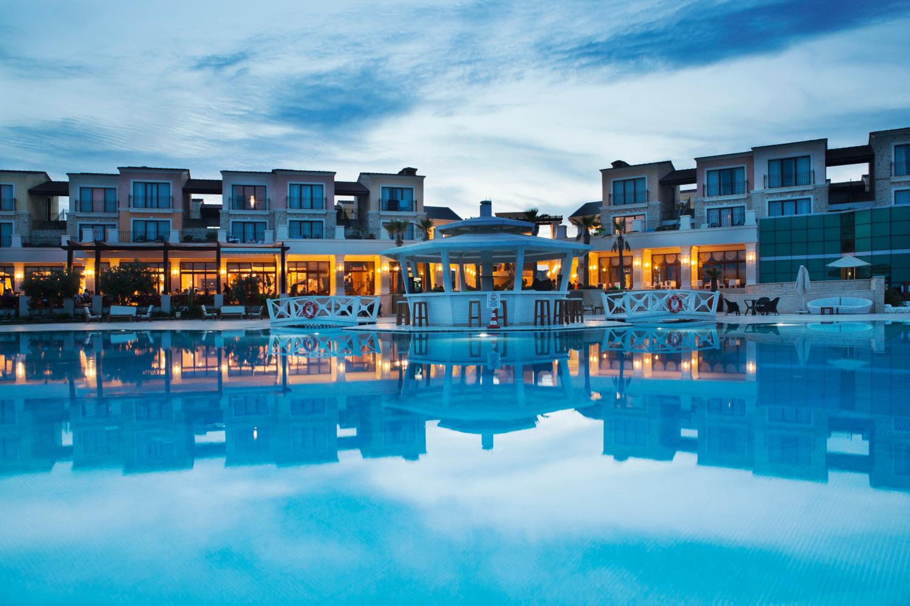 Indulge in freshly baked bread and local olives at the Alaçatı-style breakfast, savor Mediterranean and Aegean dishes at L’olive Restaurant, or grab a snack at the on-site snack bar. Unwind with a drink at Pupa Bar, Thematique Bar, or Lobby Bar. After a rejuvenating massage, enjoy the sauna, Turkish bath, and indoor pool with sea views.