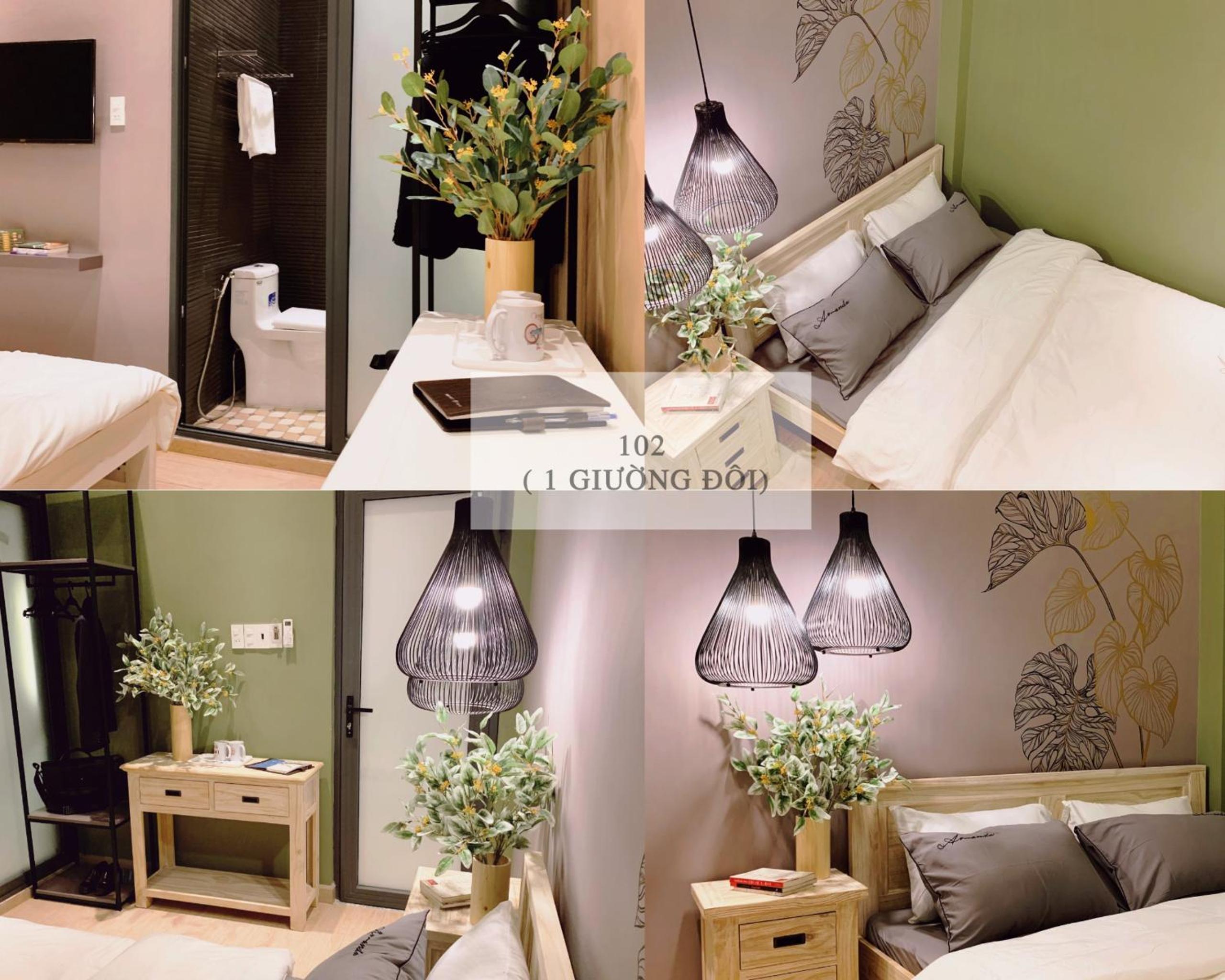 Trang trí có gu, nhìn ấn tượng và trông trẻ trung hơn nhiều chỗ. Các bạn nhân viên đều nhiệt tình, rep tin nhắn 24/24. Bảng giá, chú thích đều ghi rất rõ ràng, công khai ở từng phòng. Trong phòng có máy sáy tóc, bàn chải và kem đánh răng, dầu gội, sữa tắm. Không cho thuê xe máy nhưng giới thiệu chỗ cũng chuyên nghiệp. Có bán nước, có máy nước lọc miễn phí, mỗi ngày cho thêm 1 chai nước suối/khách.