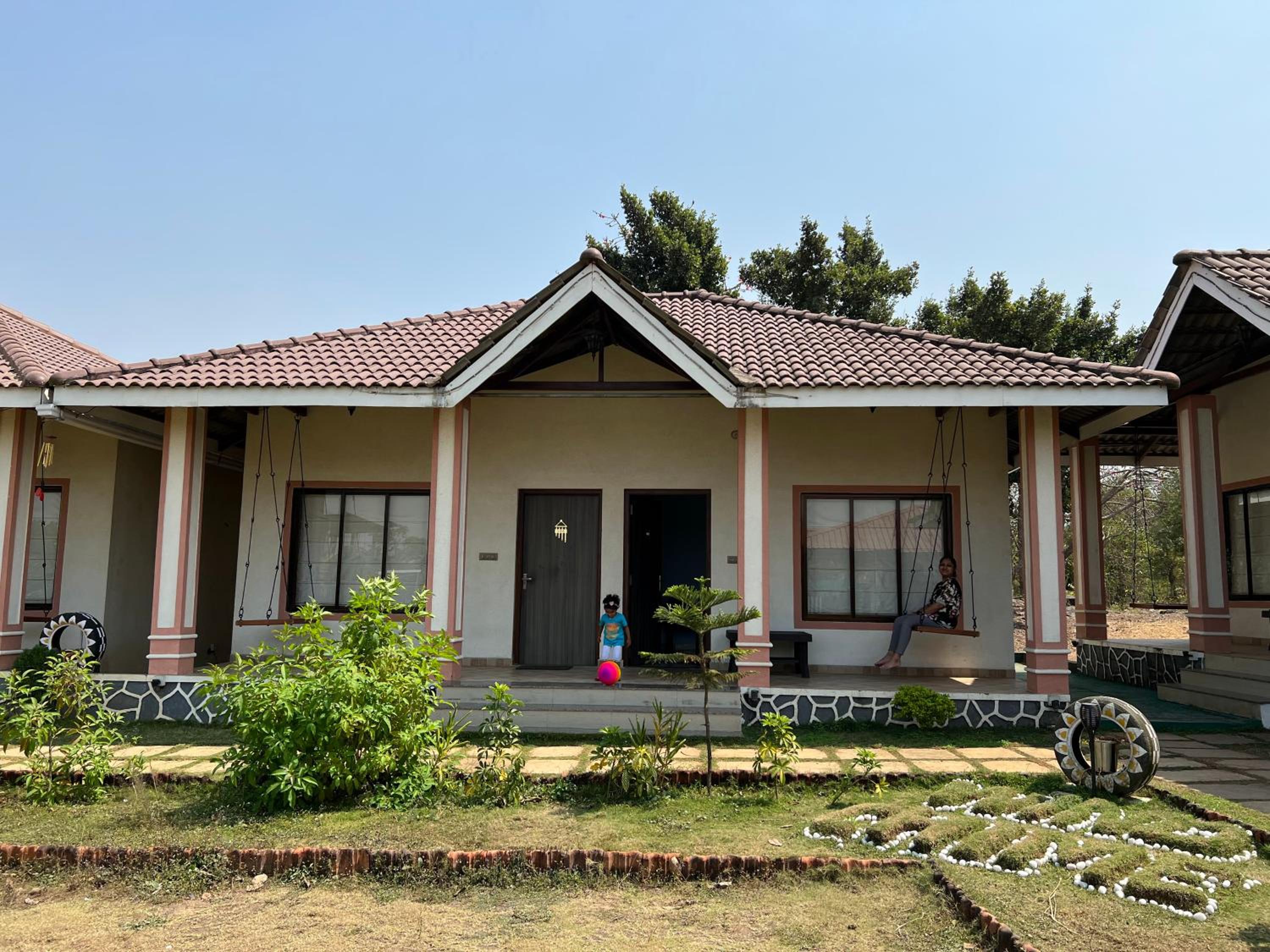 Windchime Cottages in Alibaug offers a serene escape with a touch of luxury. Each room is thoughtfully designed with modern amenities including air conditioning, a flat-screen TV, and a private patio with breathtaking mountain views.