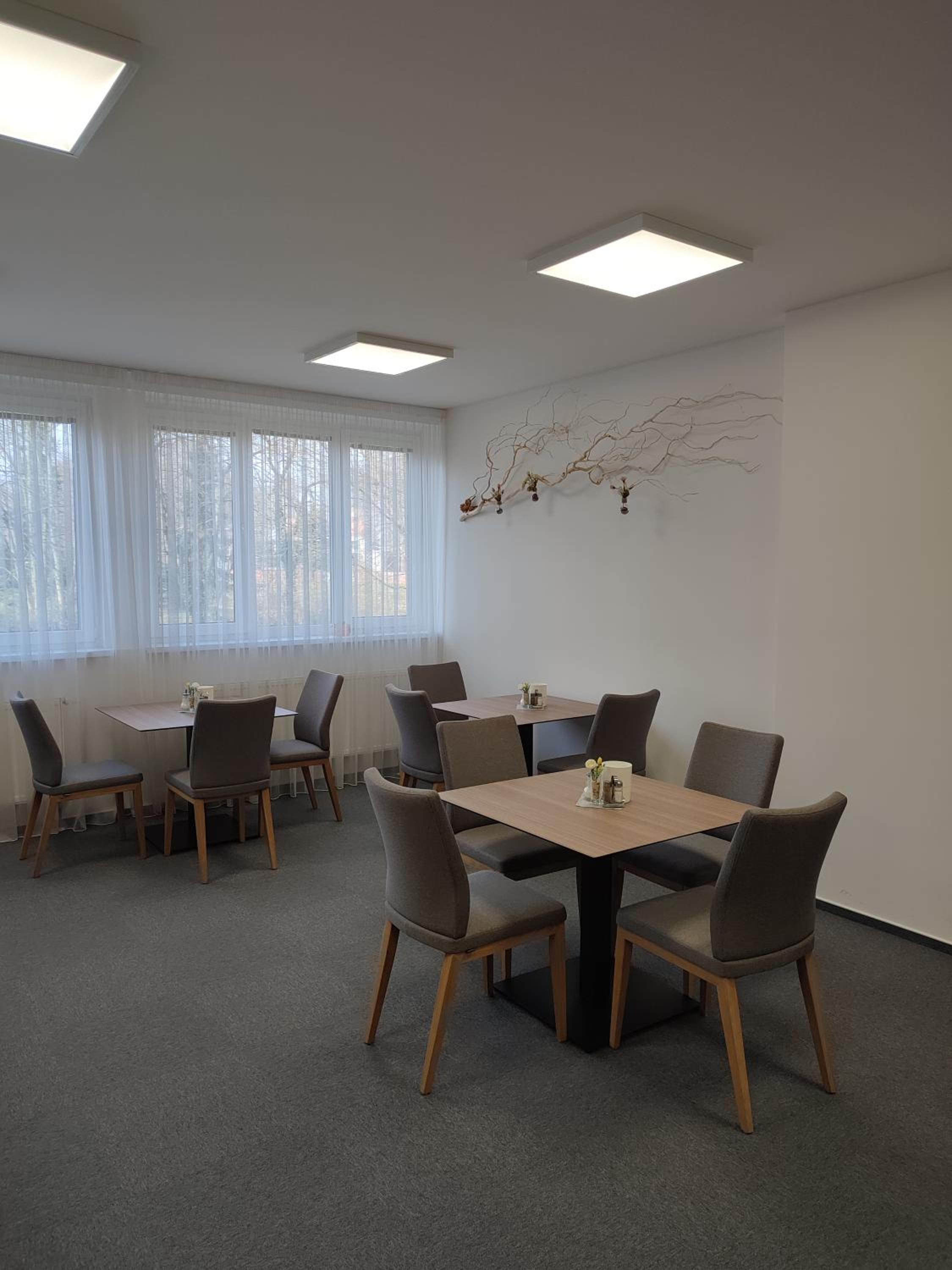 Velmi chutná snídaně v hezky zařízené jídelně. Milý personál v jídelně i na recepci.