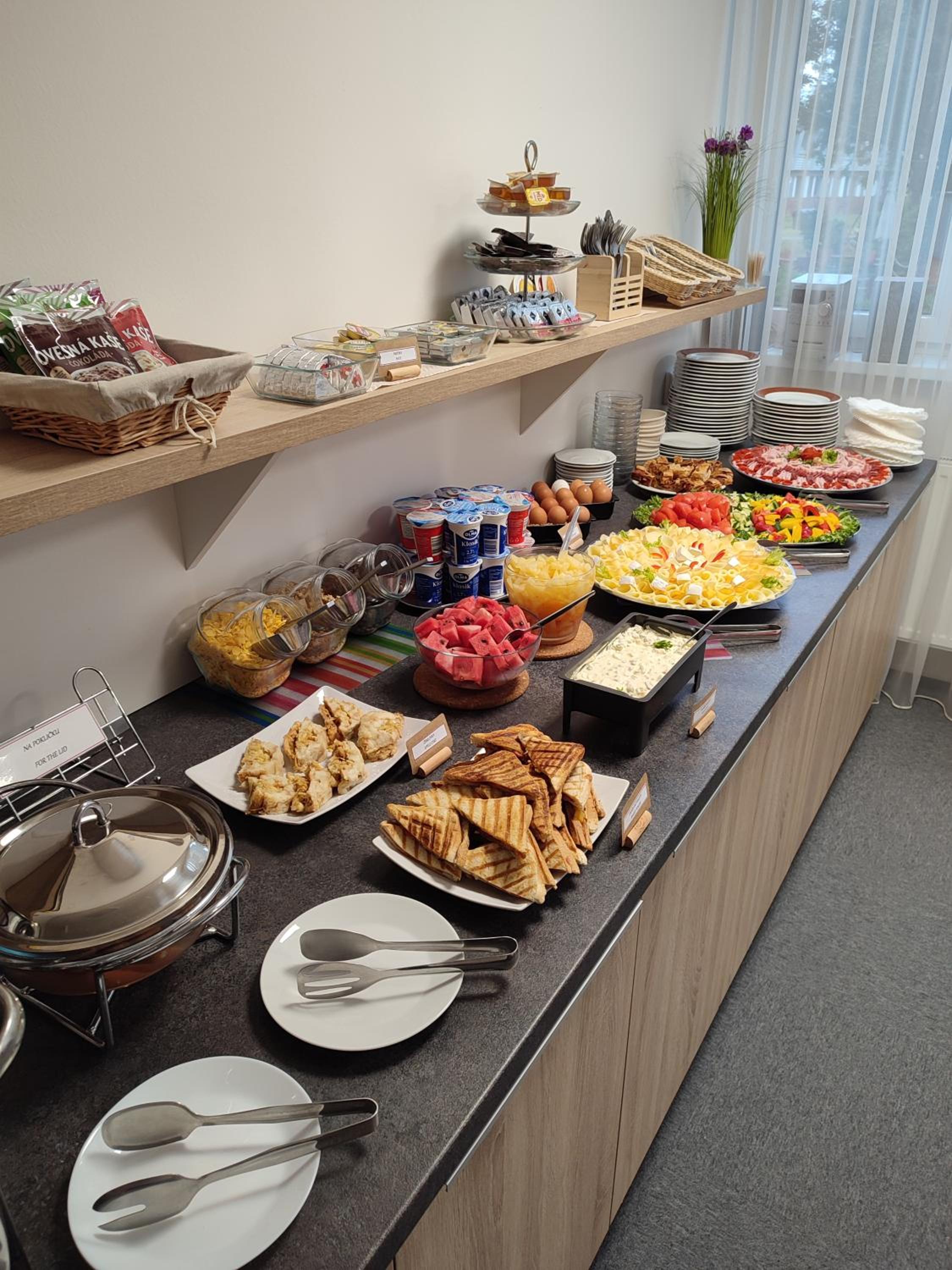 snídaně základní, působilo to dojmem, že na snídani nepřijde moc hostů...uvítala bych větší pestrost...
