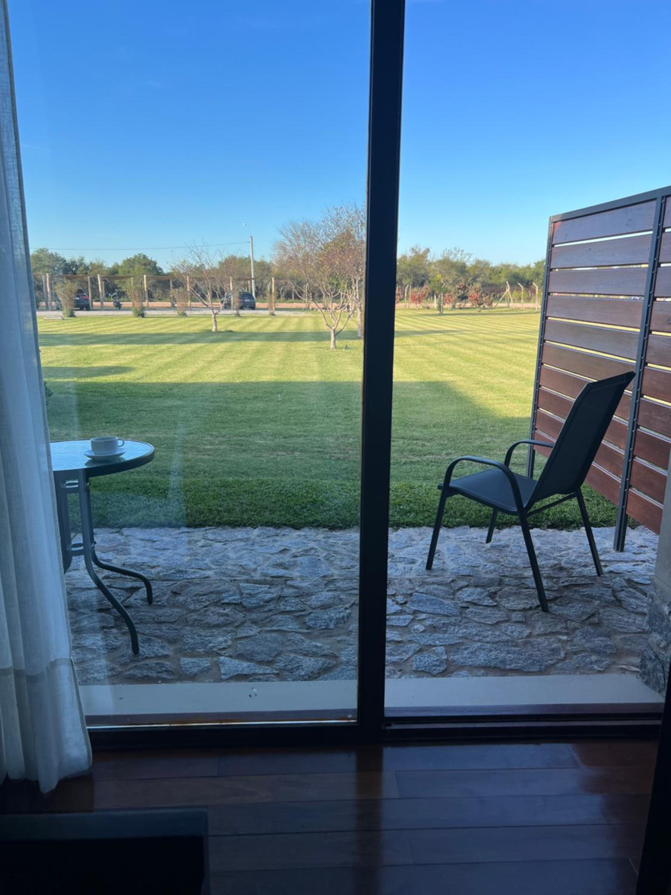 La pileta resulta muy chica cuando hay varias personas. Las mesas del comedor para 2 muy chicas. La puerta de vidrio de la ducha raspa al cerrar (h.14).