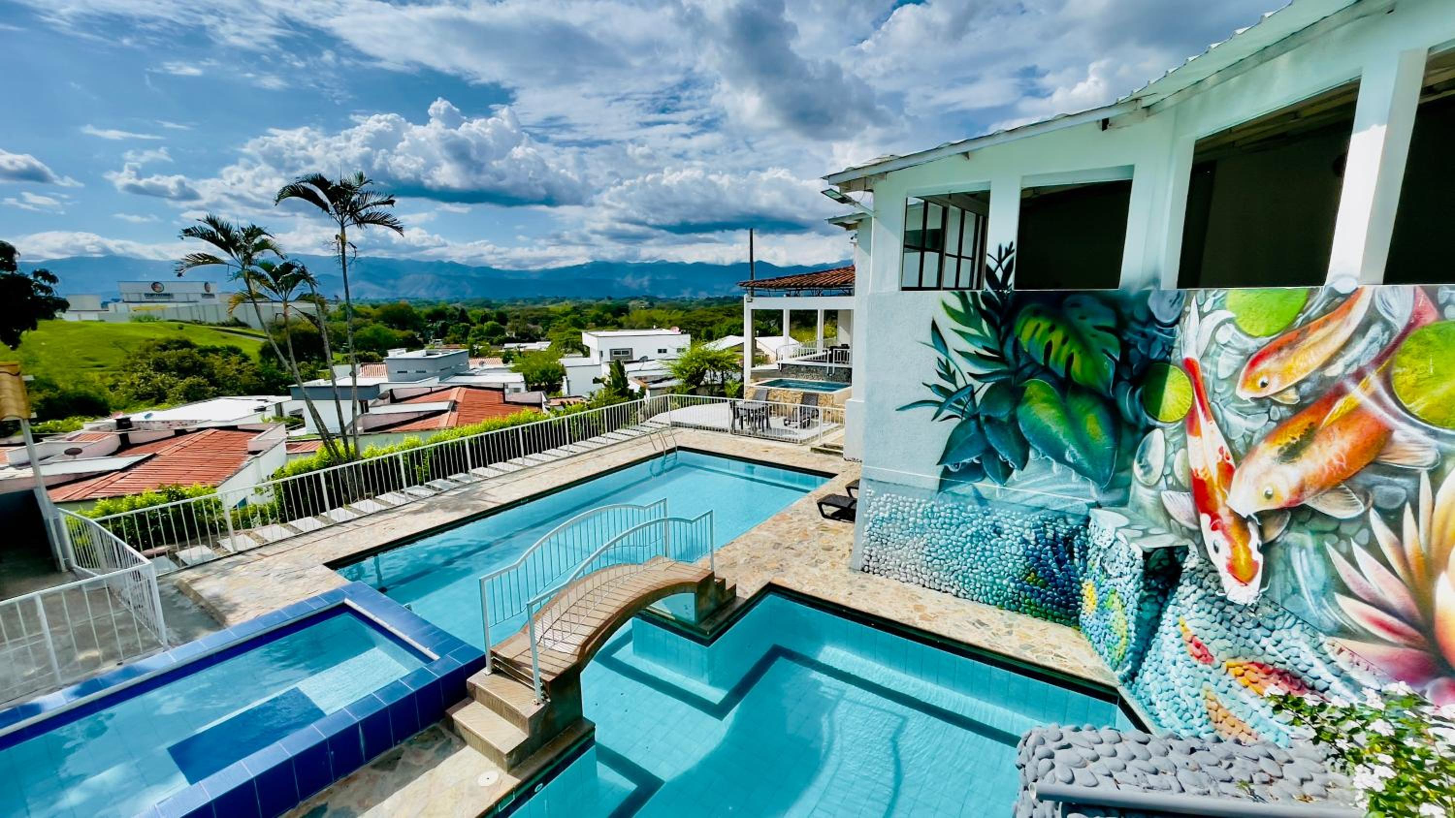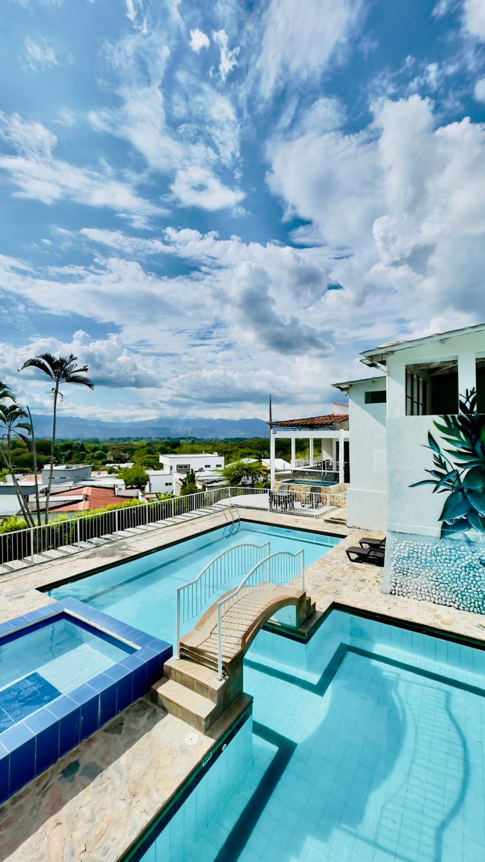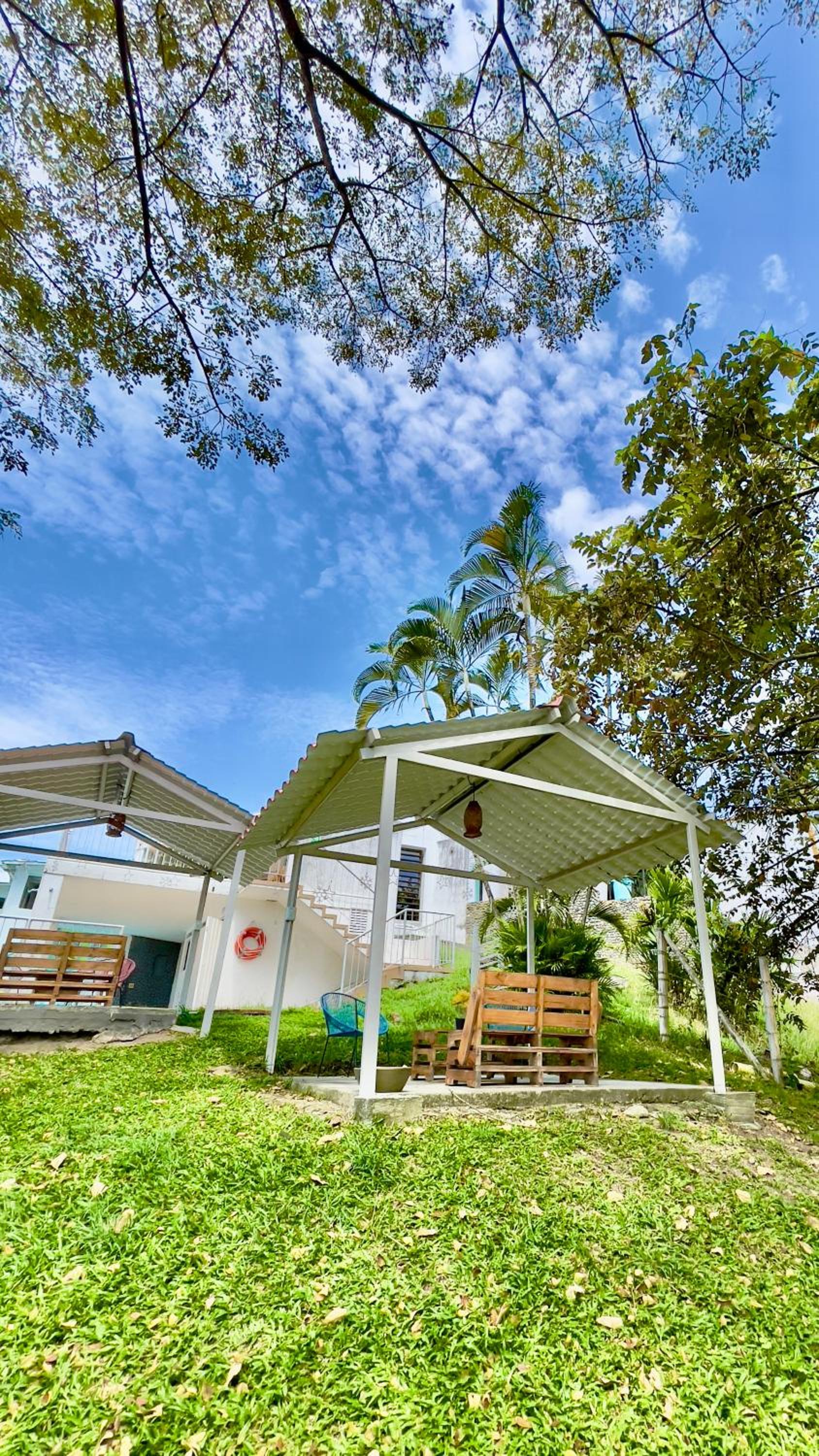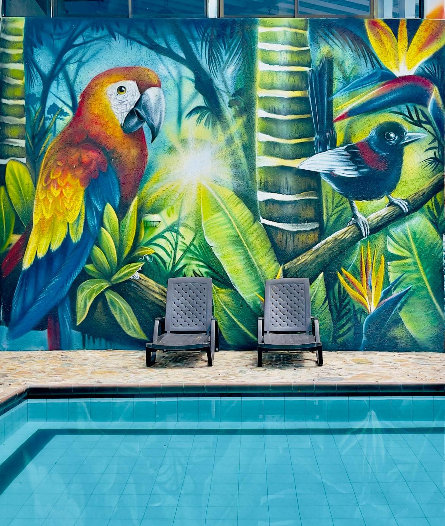 Hotel Loto Del Viento in Cartago boasts an inviting outdoor swimming pool, perfect for a refreshing dip, surrounded by a lush garden where guests can unwind and relax.