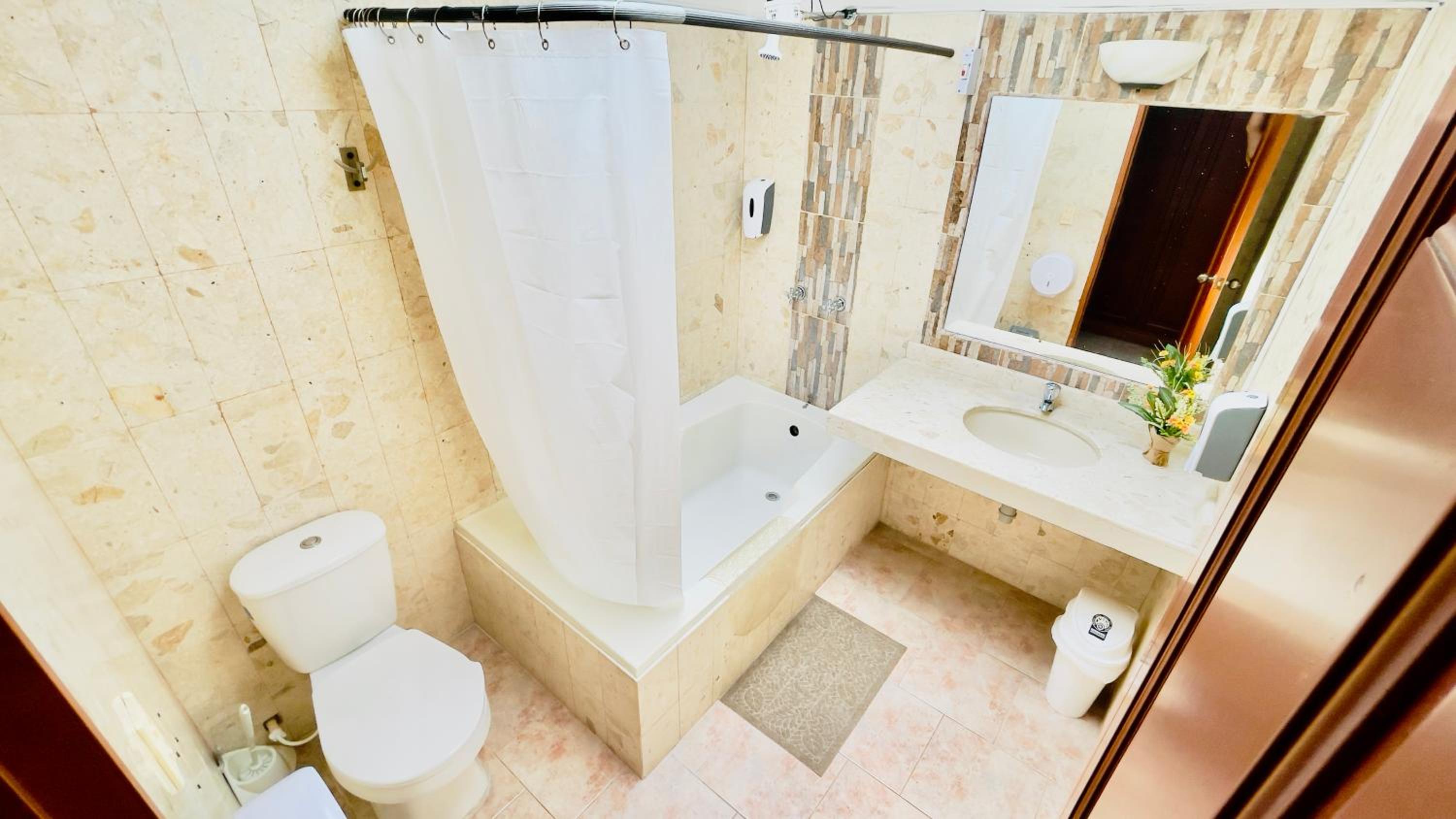 Hay cosas de mantenimiento para mejorar, por ejemplo la puerta del baño no cerraba, hace falta un pasamanos en el baño para salir seguro de la tina. Mi cuñada que estaba en la habitacion 101, se cayo en el baño cuando se bañaba. Falto un tapete apropiado en el baño para el piso y el pasamano que ya hice alusión.