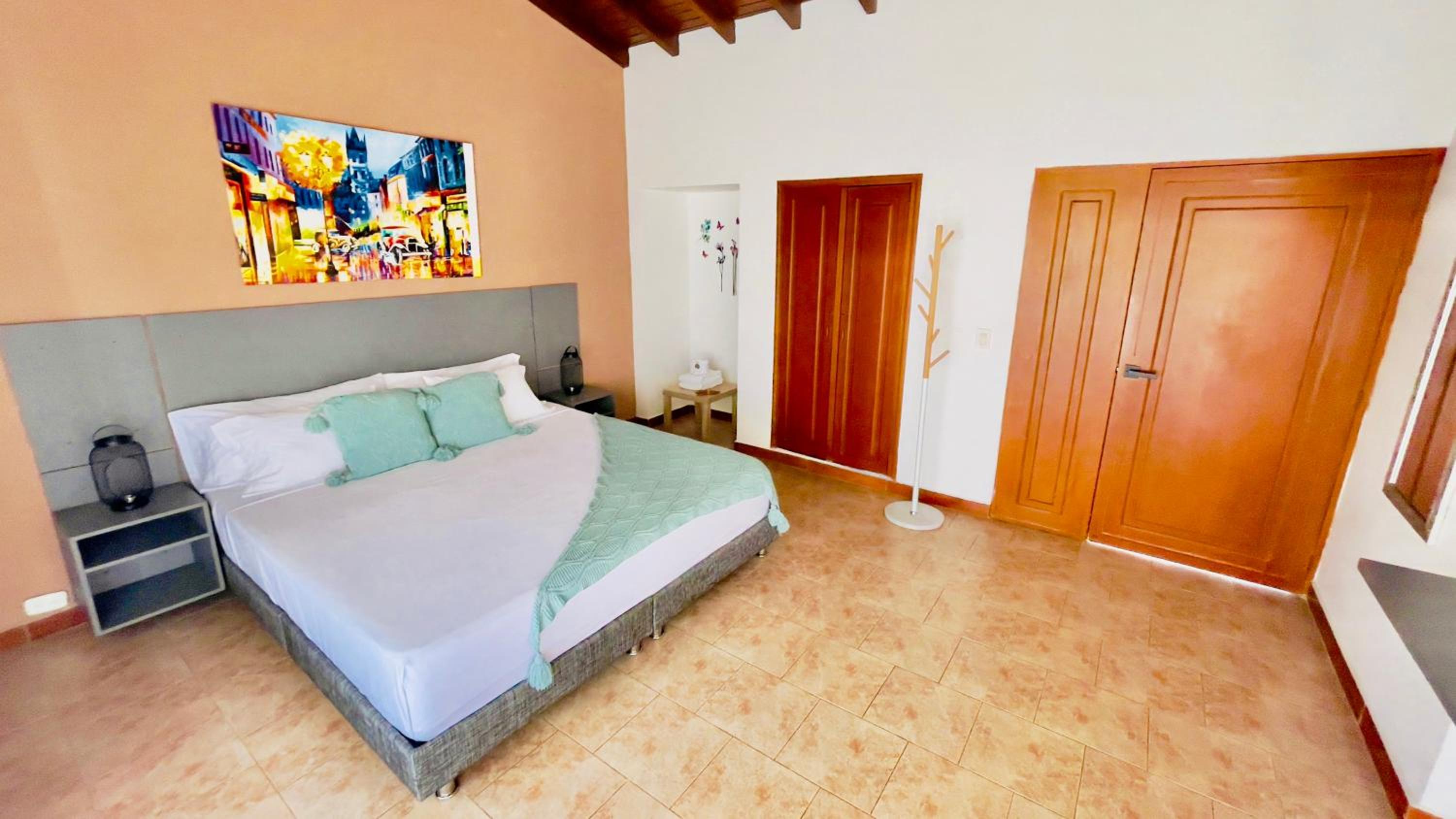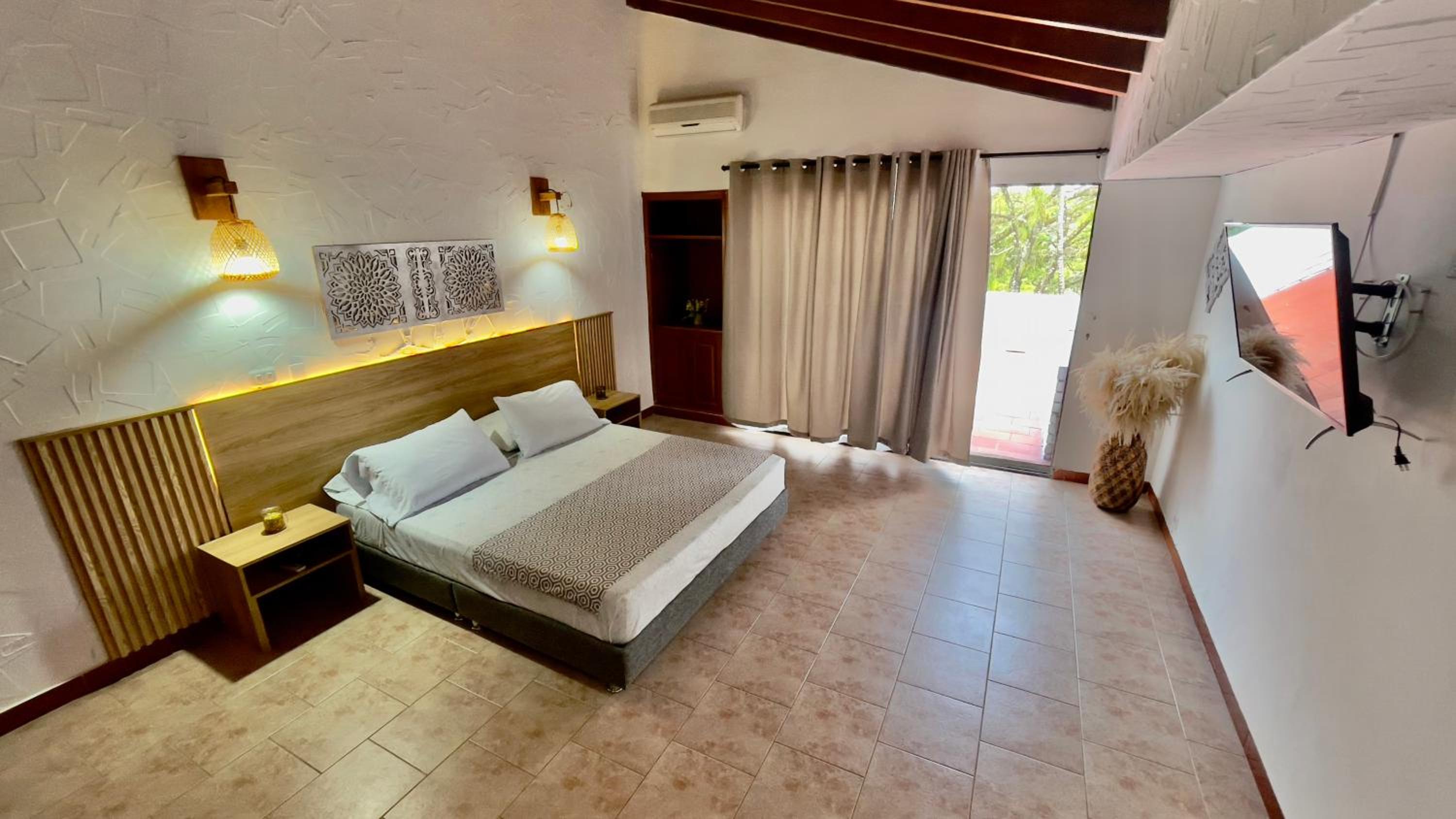 The guest rooms at Hotel Loto Del Viento are elegantly designed and equipped with air conditioning, flat-screen TVs, and private bathrooms. Some rooms even feature a cozy terrace for enjoying the scenic views.