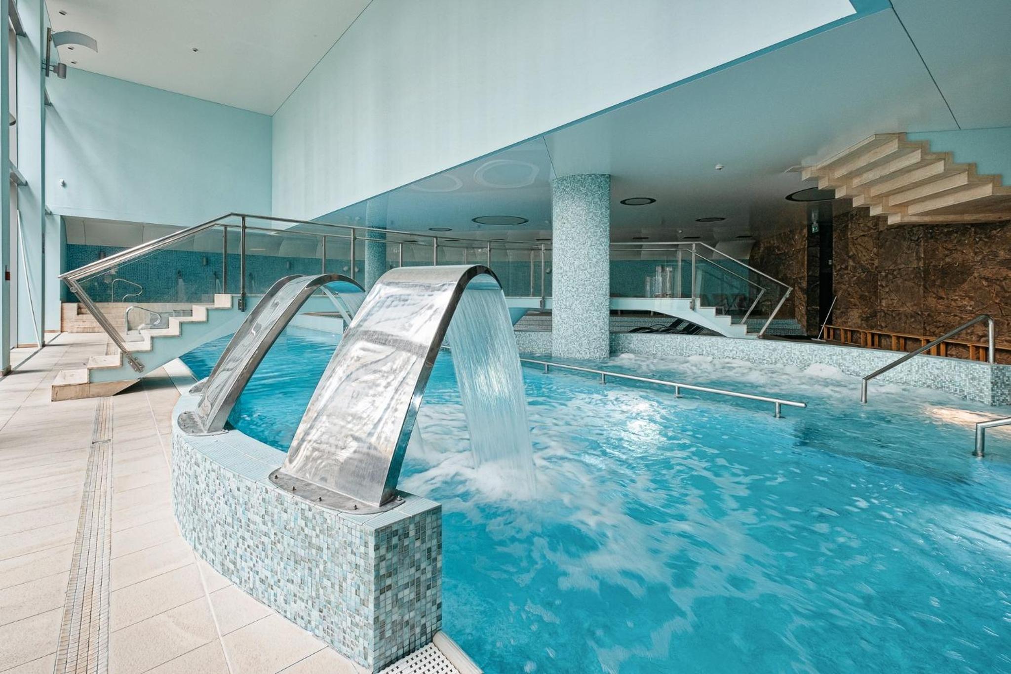 Indulge in relaxation at our modern spa with an indoor pool, hot tubs, and steam bath.