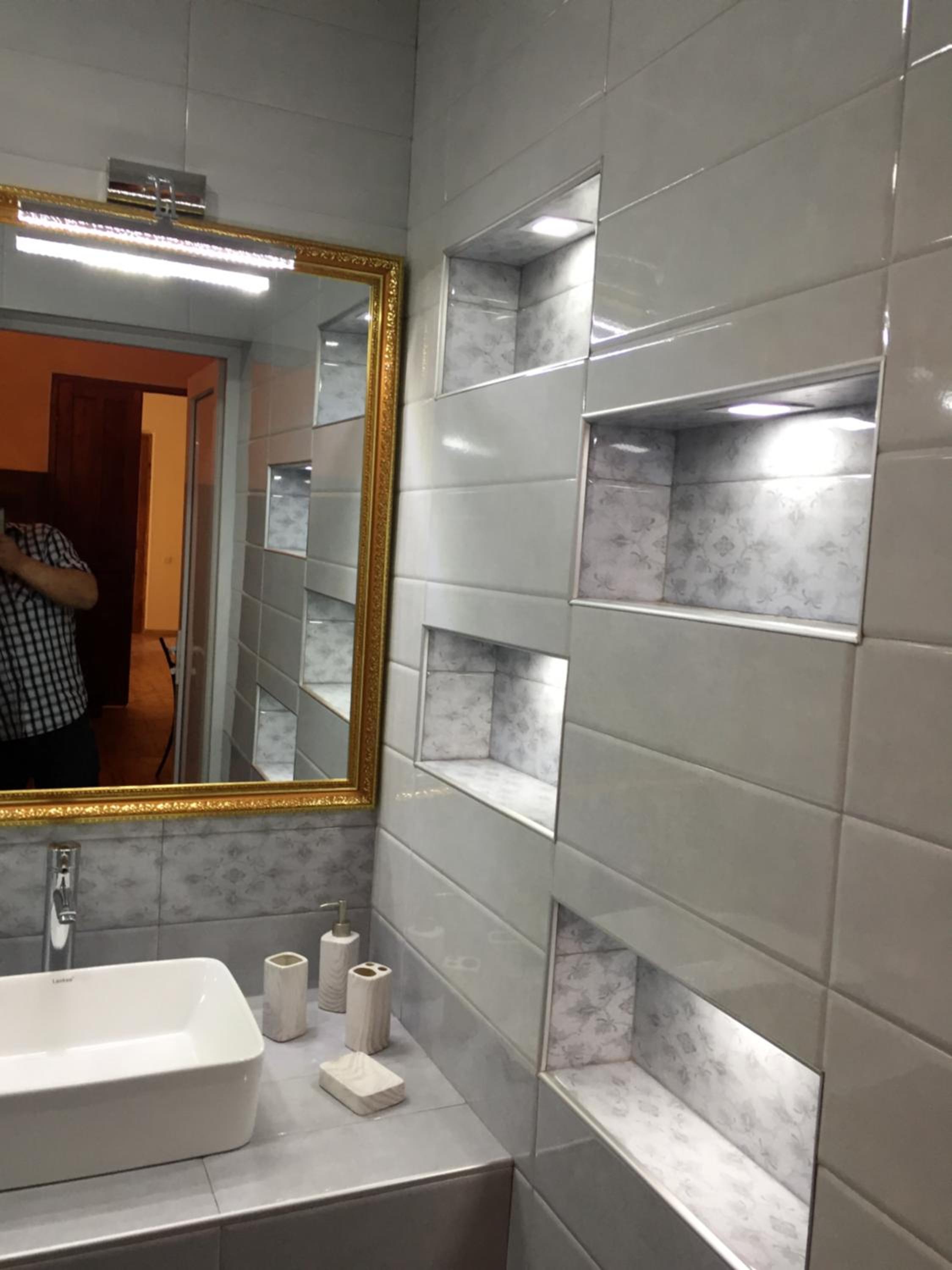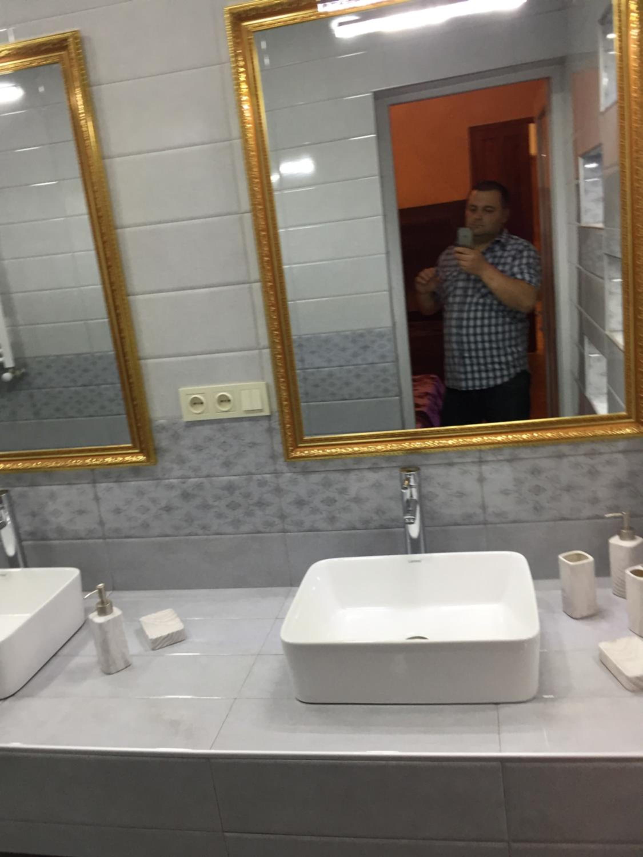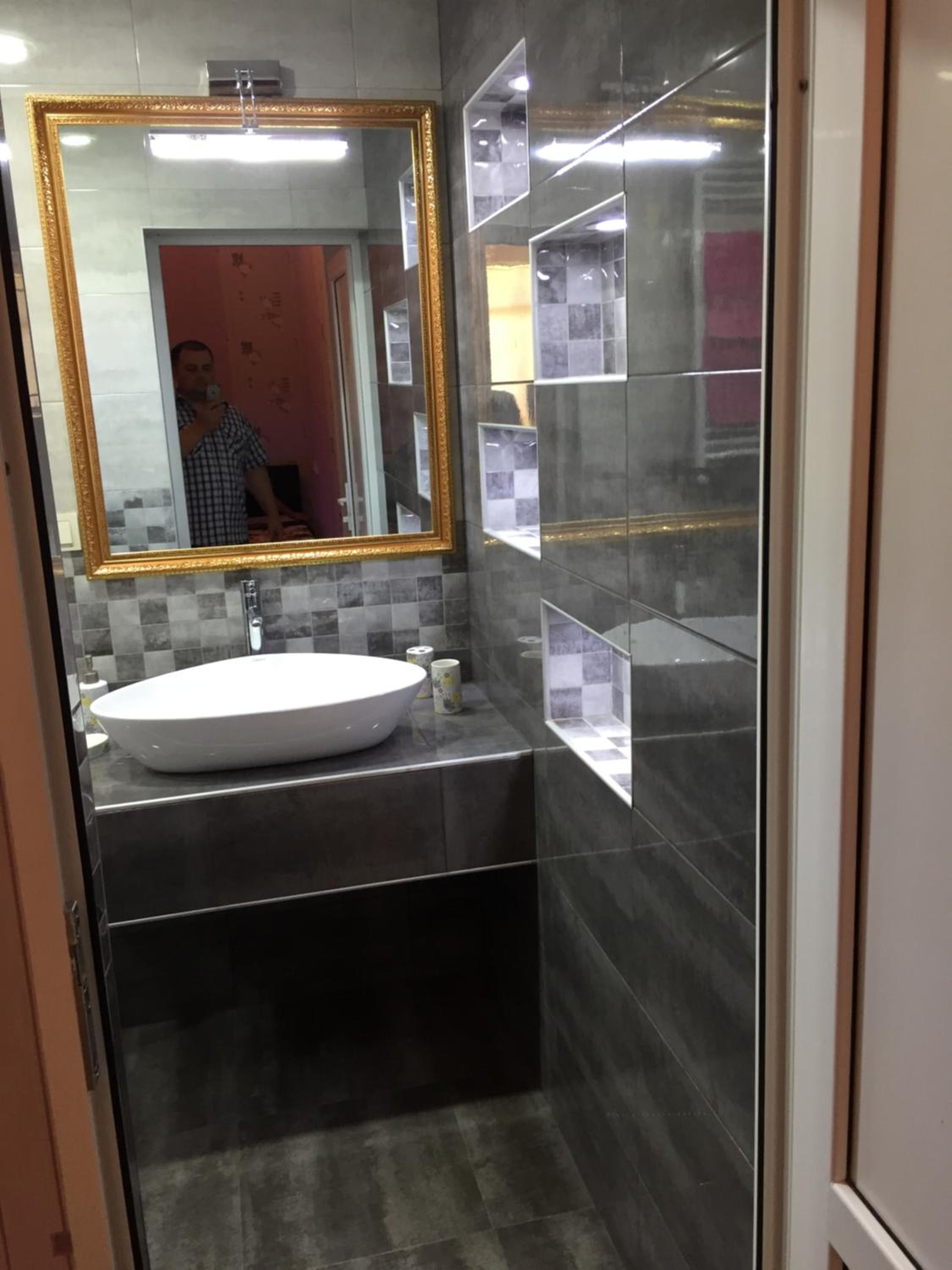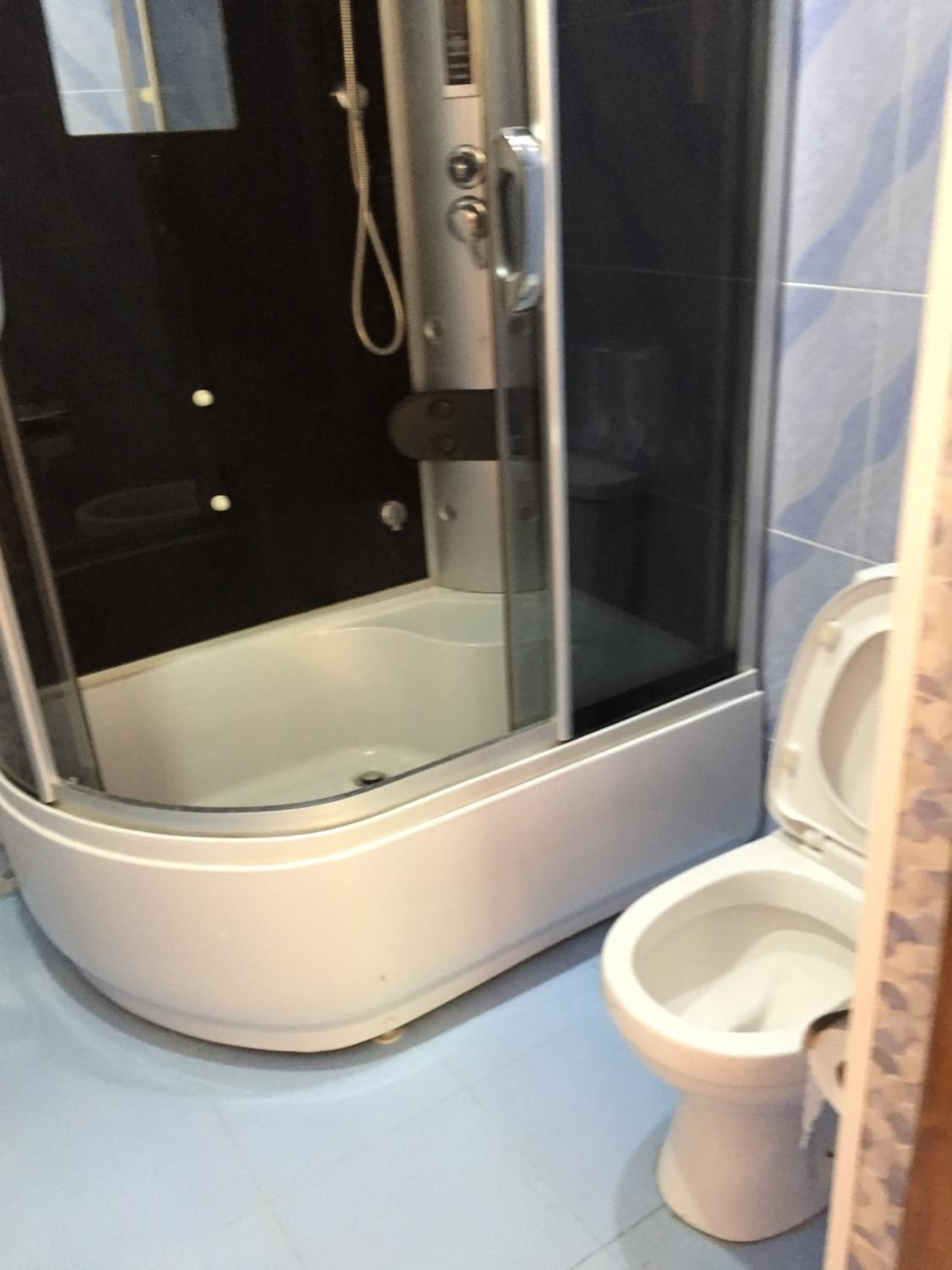 מקלחת מרווחת ומקרר גדול. עיצוב מעניין למקום