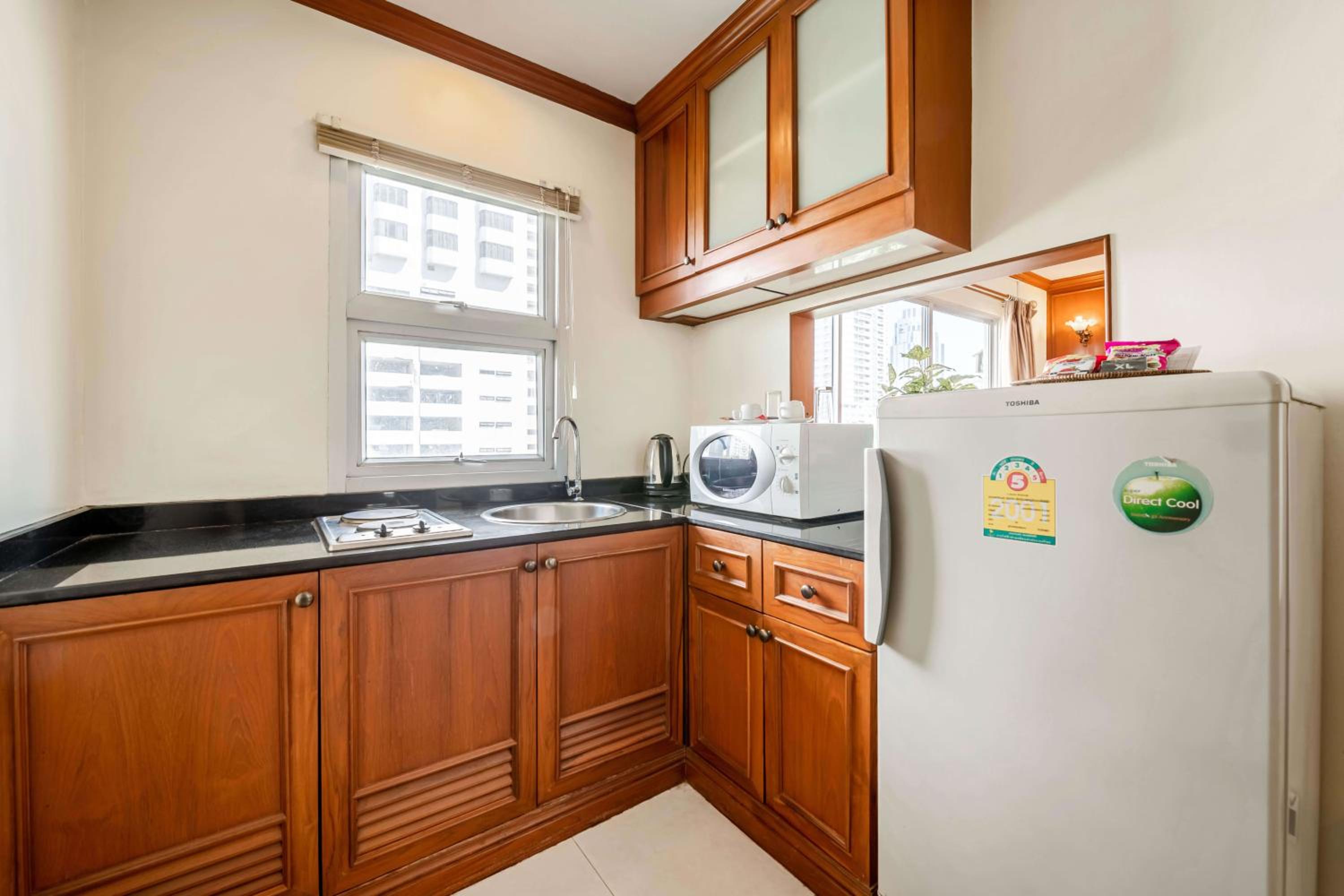 Indulge in comfort with rooms featuring a kitchenette equipped with a fridge, microwave, and minibar. Perfect for guests looking for a cozy and convenient stay in the bustling city of Bangkok.