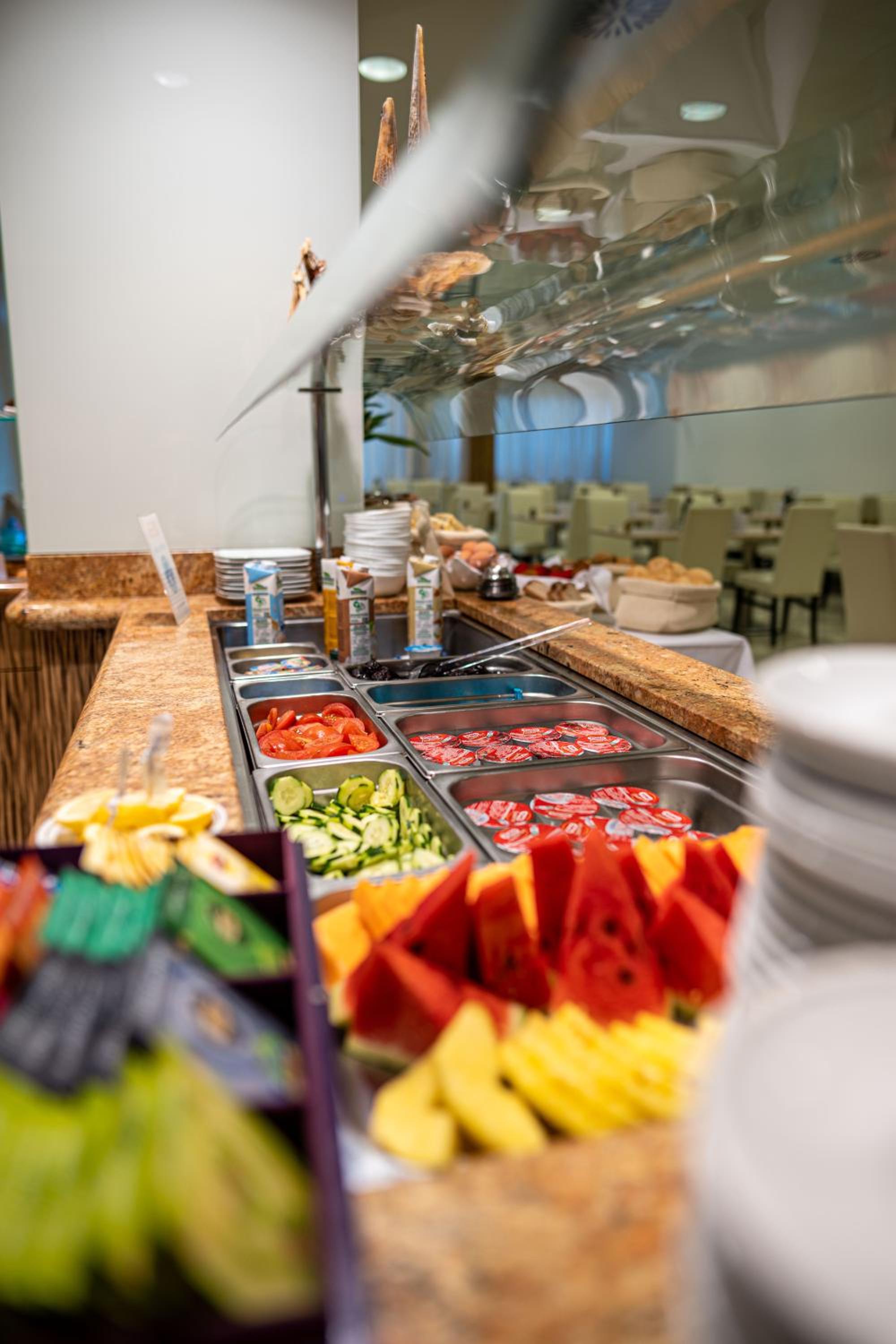 Byli jsme zde potřetí a snídaně byla jako vždy vynikající. Umístění hotelu je také super. Na pláž cca 250 m a jinak v centru dění.