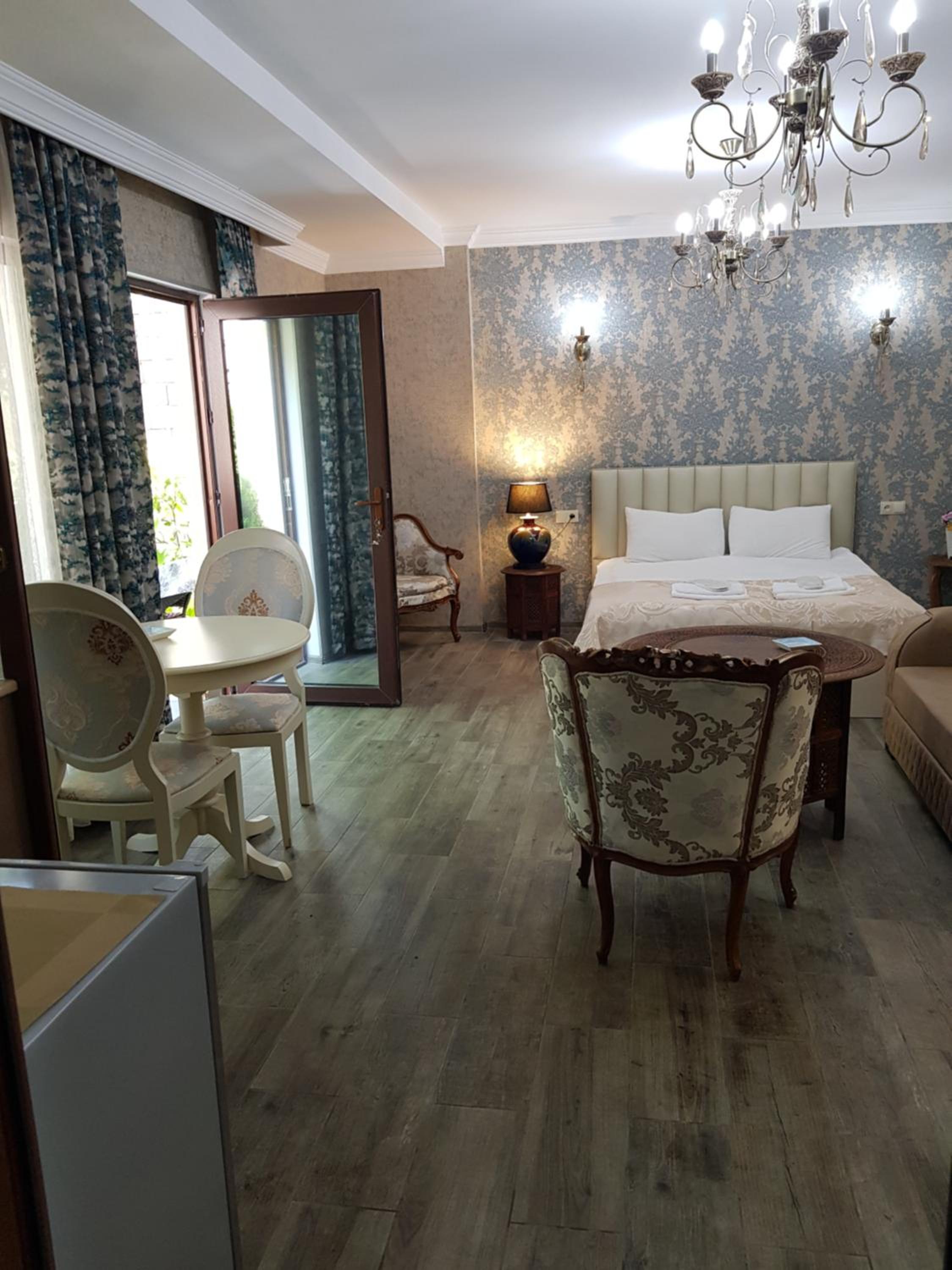 Территория отеля - как музей: очень красиво, чисто и уютно. Комнаты просторные, светлые, всё работало, ночью было тихо и спокойно, никакого шума. Рядом с отелем рынок, где можно купить фруктов. Да и всё остальное тоже недалеко, можно пройтись пешком и до музея и до парка. Есть где припарковать машину.