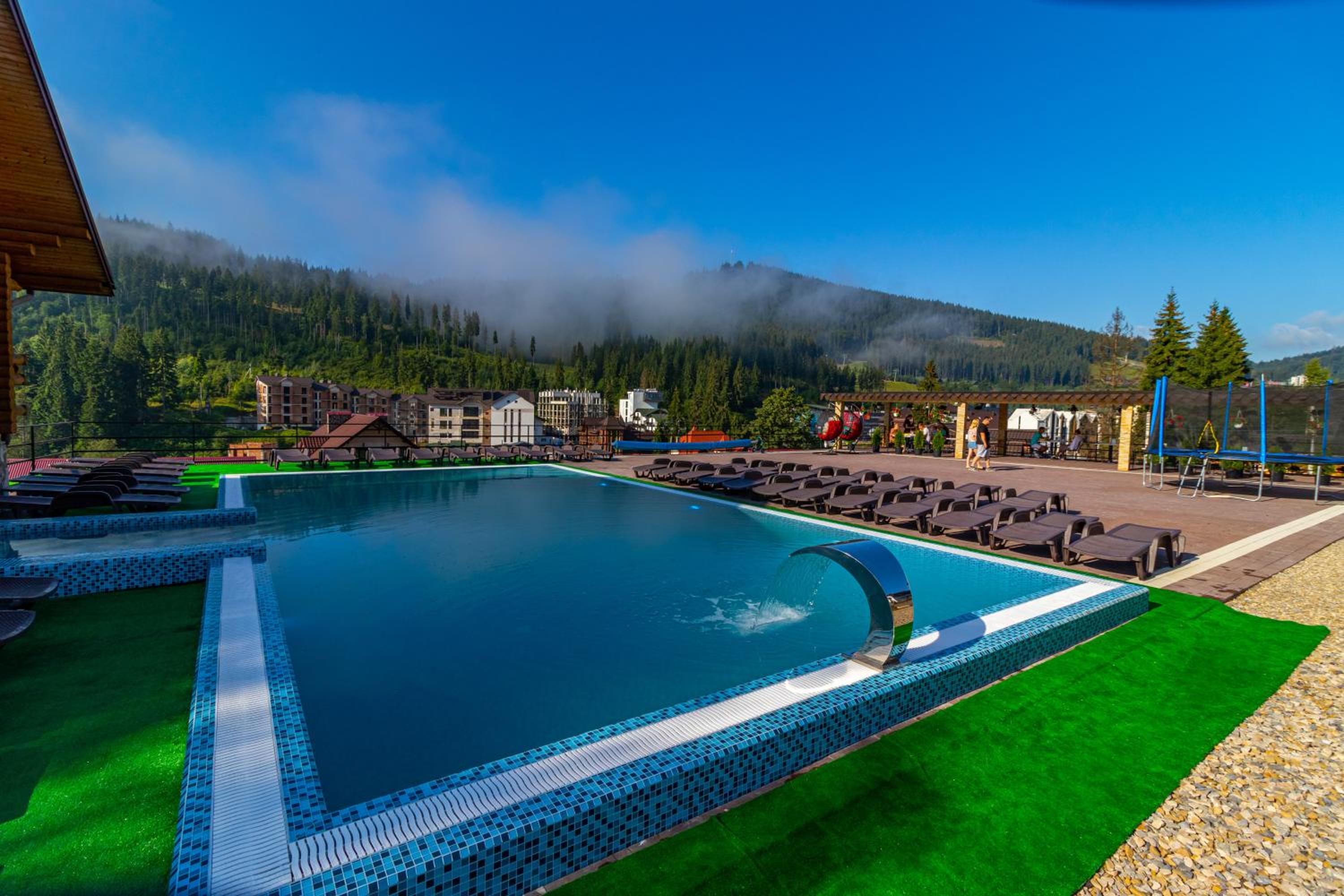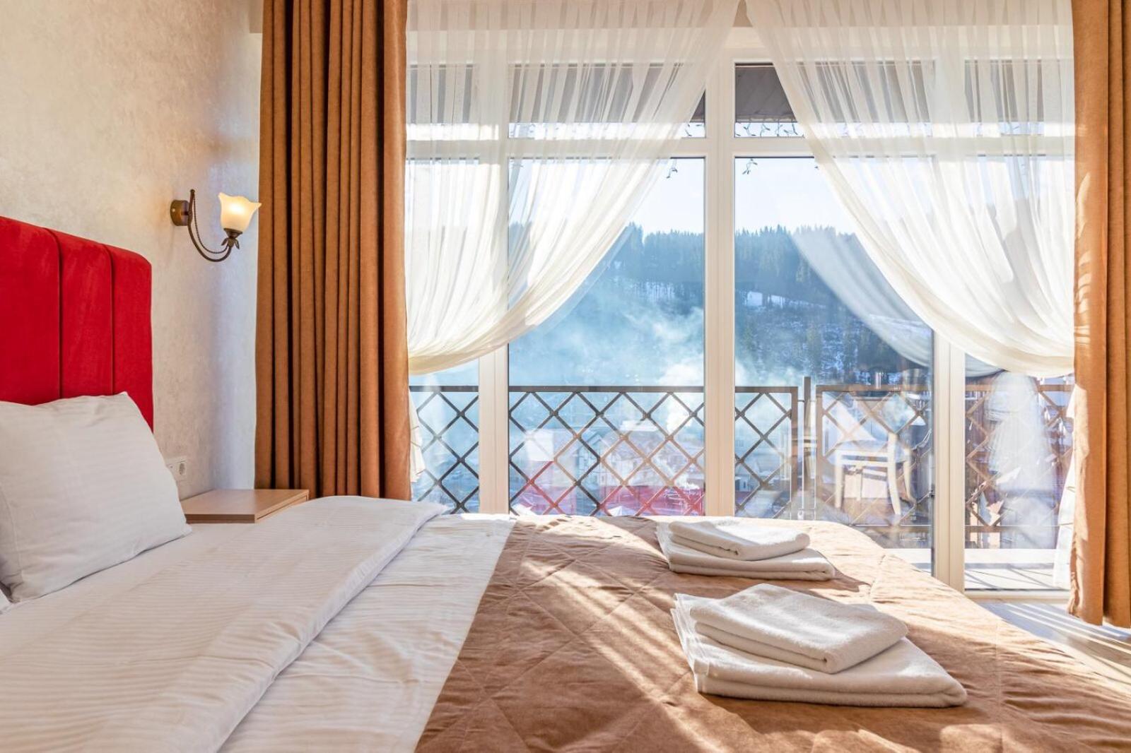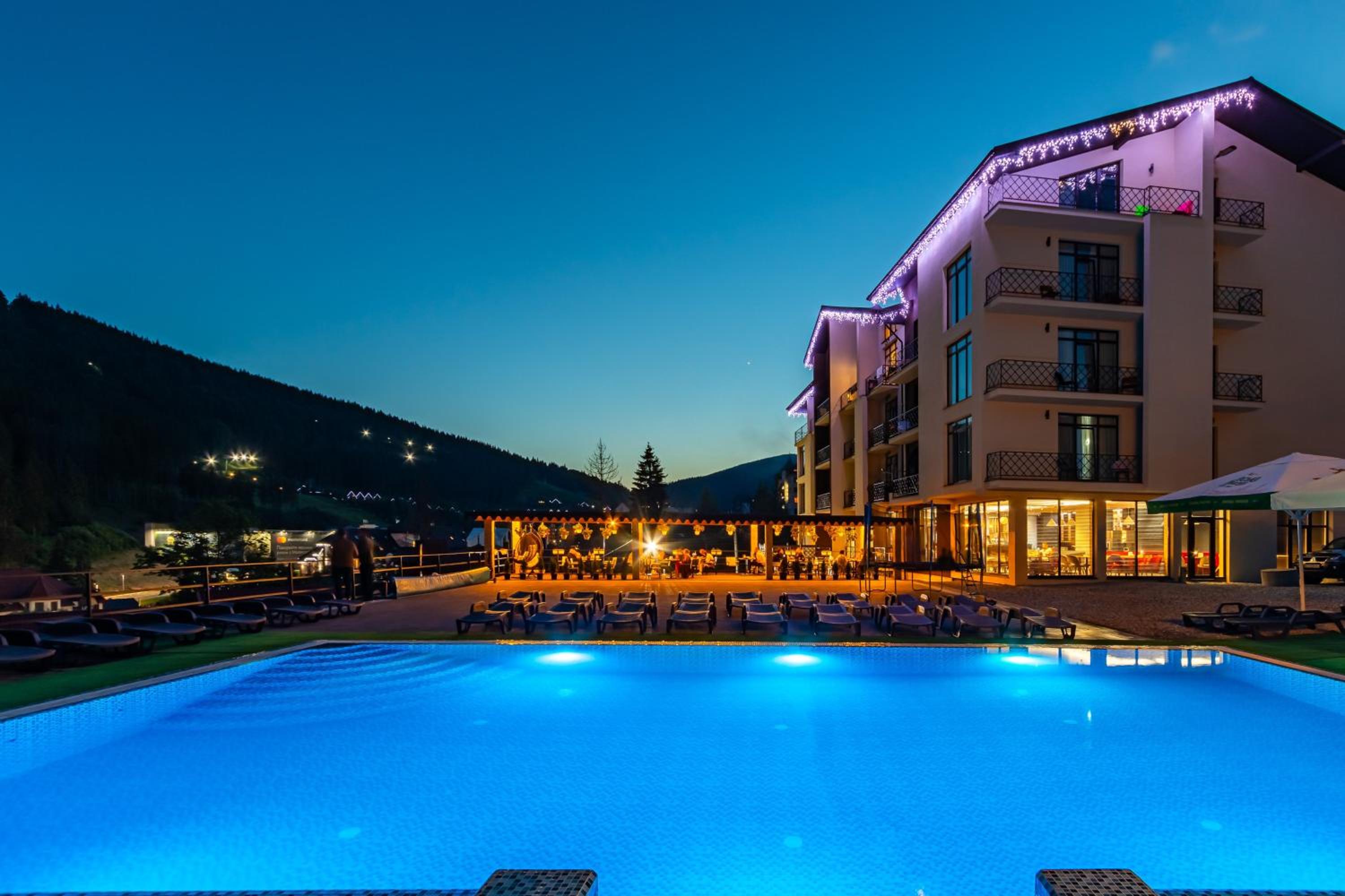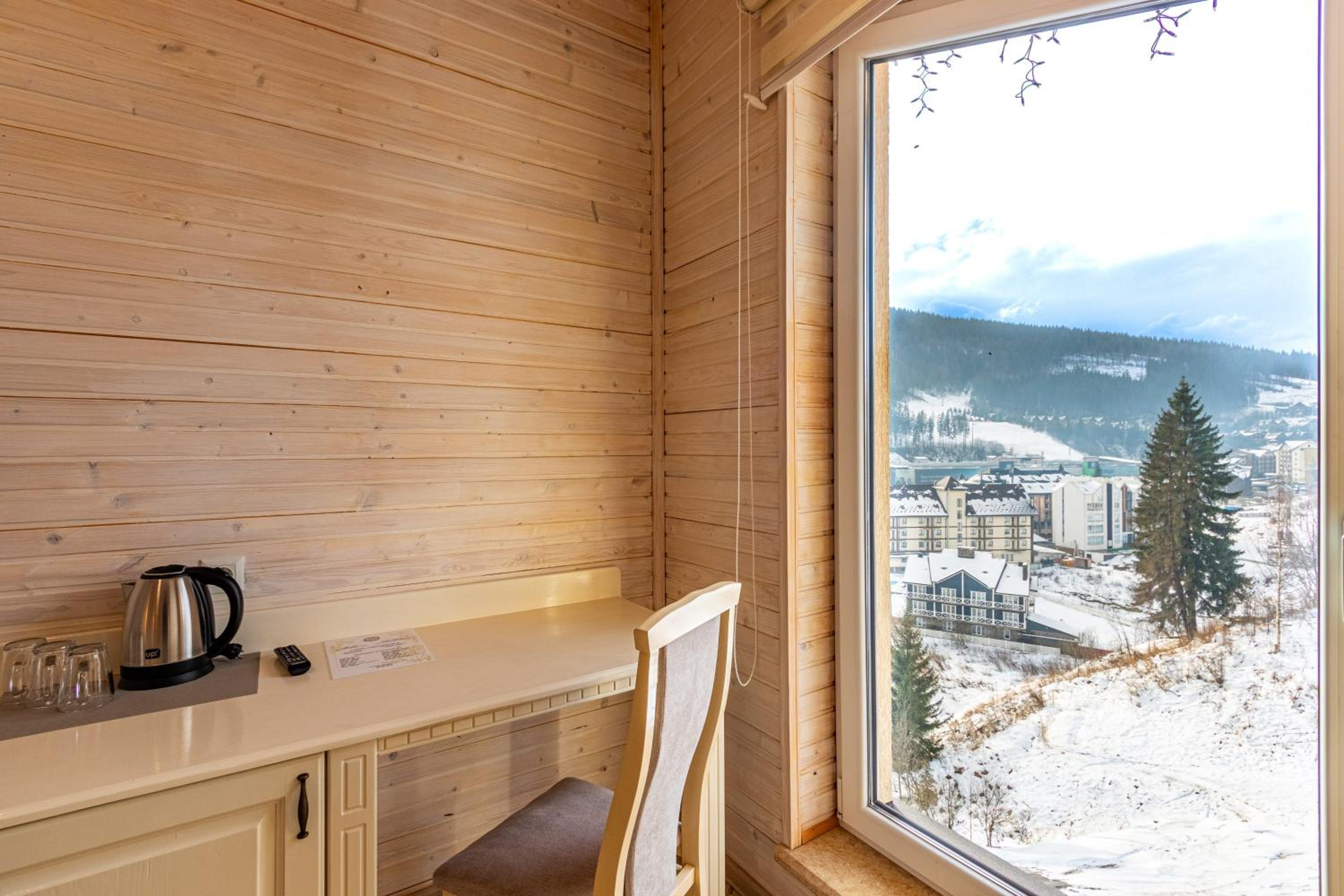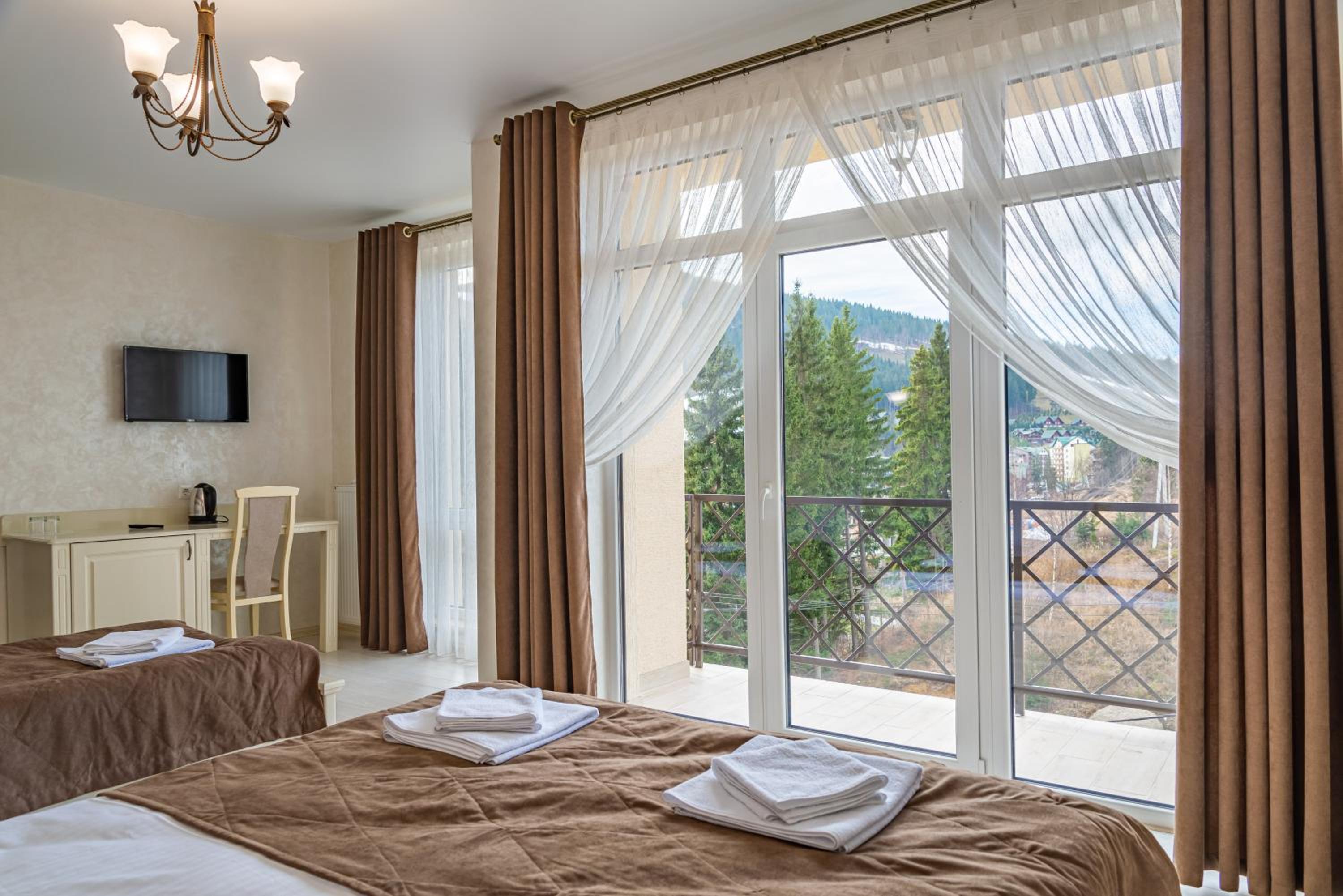 Не очікувала, що буде так чисто, гарно і два досить великих басейнів, є в приміщенні і на дворі, а ще великий вибір саун (6 шт.), які доступні з 13:00 до 21:00. Територія велика, на парковці достатньо місця для машин. Сніданок смачний, великий вибір. Номер дуже чистий і новий. Можна легко пройтися до центру, підйомників і озера Буковеля, не так далеко як здавалося.