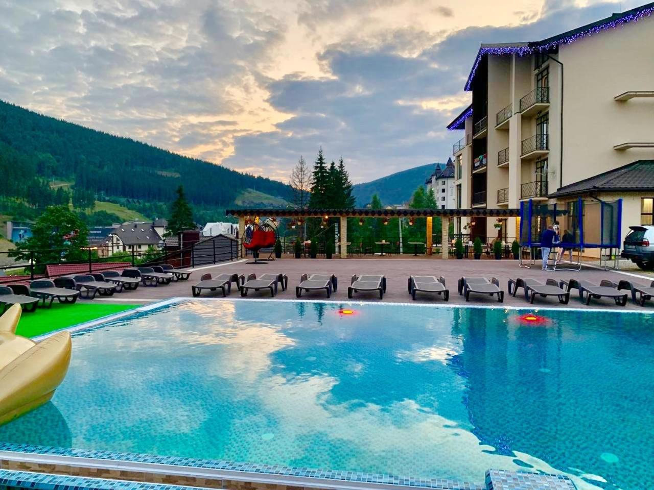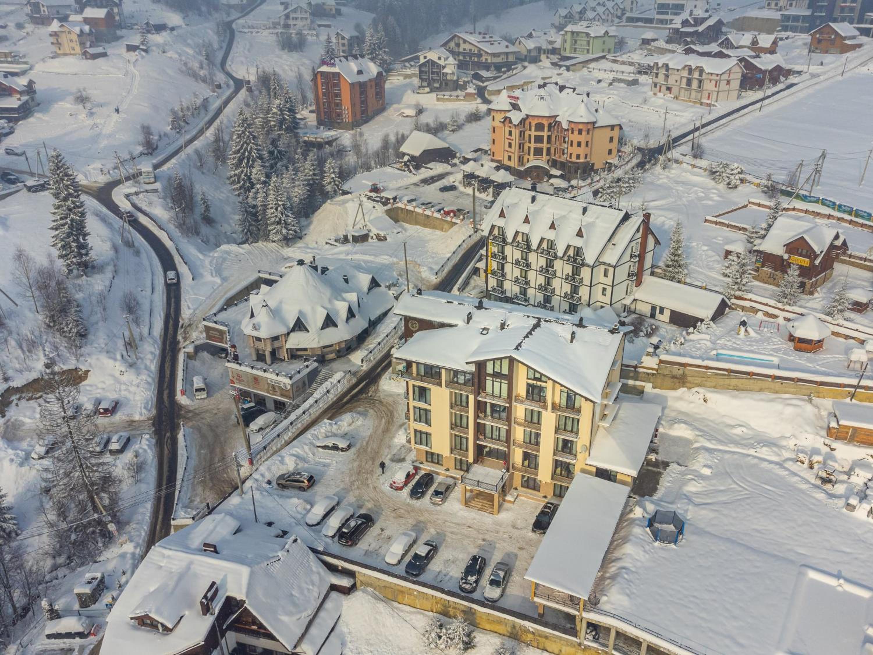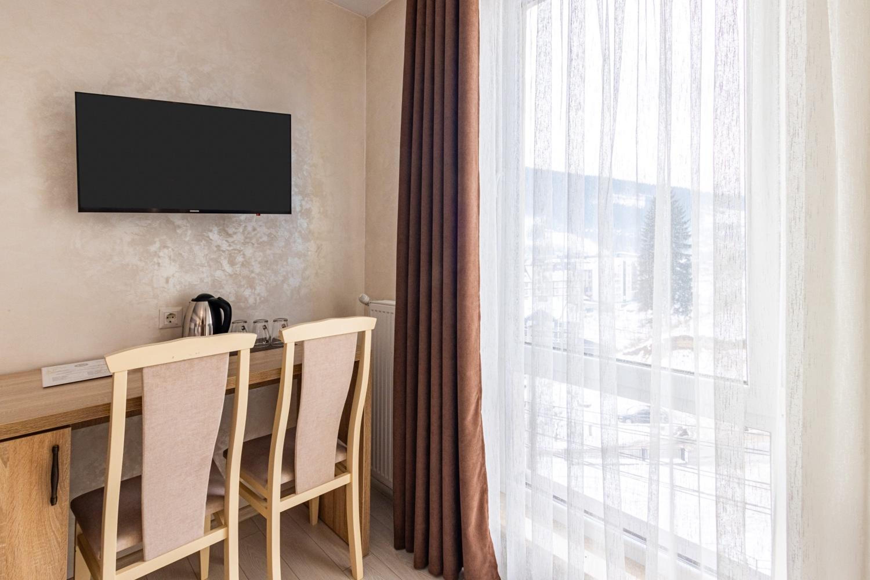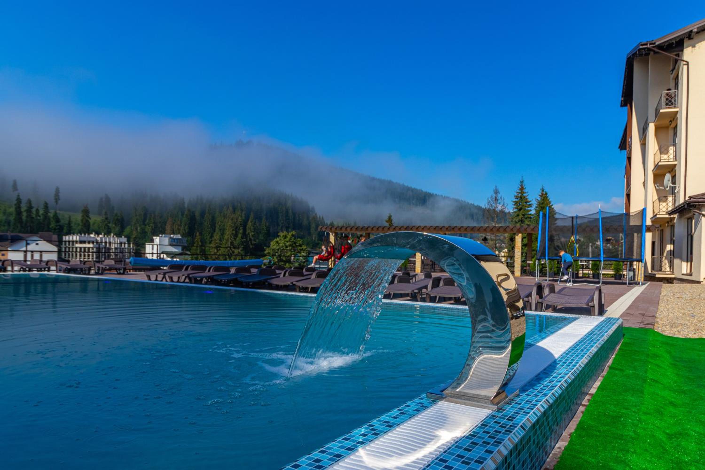 Не очікувала, що буде так чисто, гарно і два досить великих басейнів, є в приміщенні і на дворі, а ще великий вибір саун (6 шт.), які доступні з 13:00 до 21:00. Територія велика, на парковці достатньо місця для машин. Сніданок смачний, великий вибір. Номер дуже чистий і новий. Можна легко пройтися до центру, підйомників і озера Буковеля, не так далеко як здавалося.