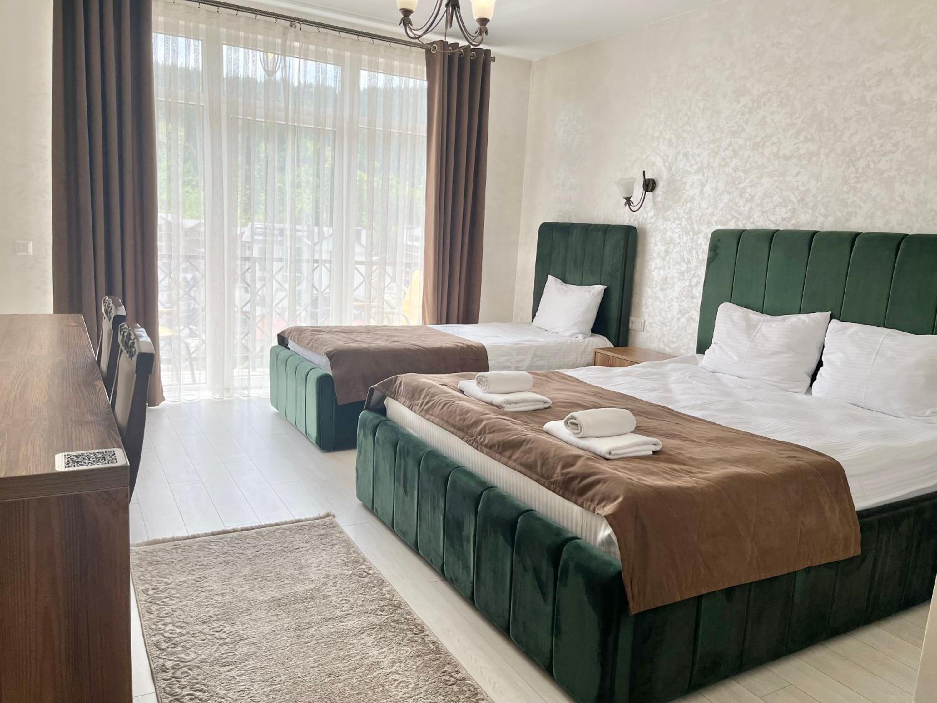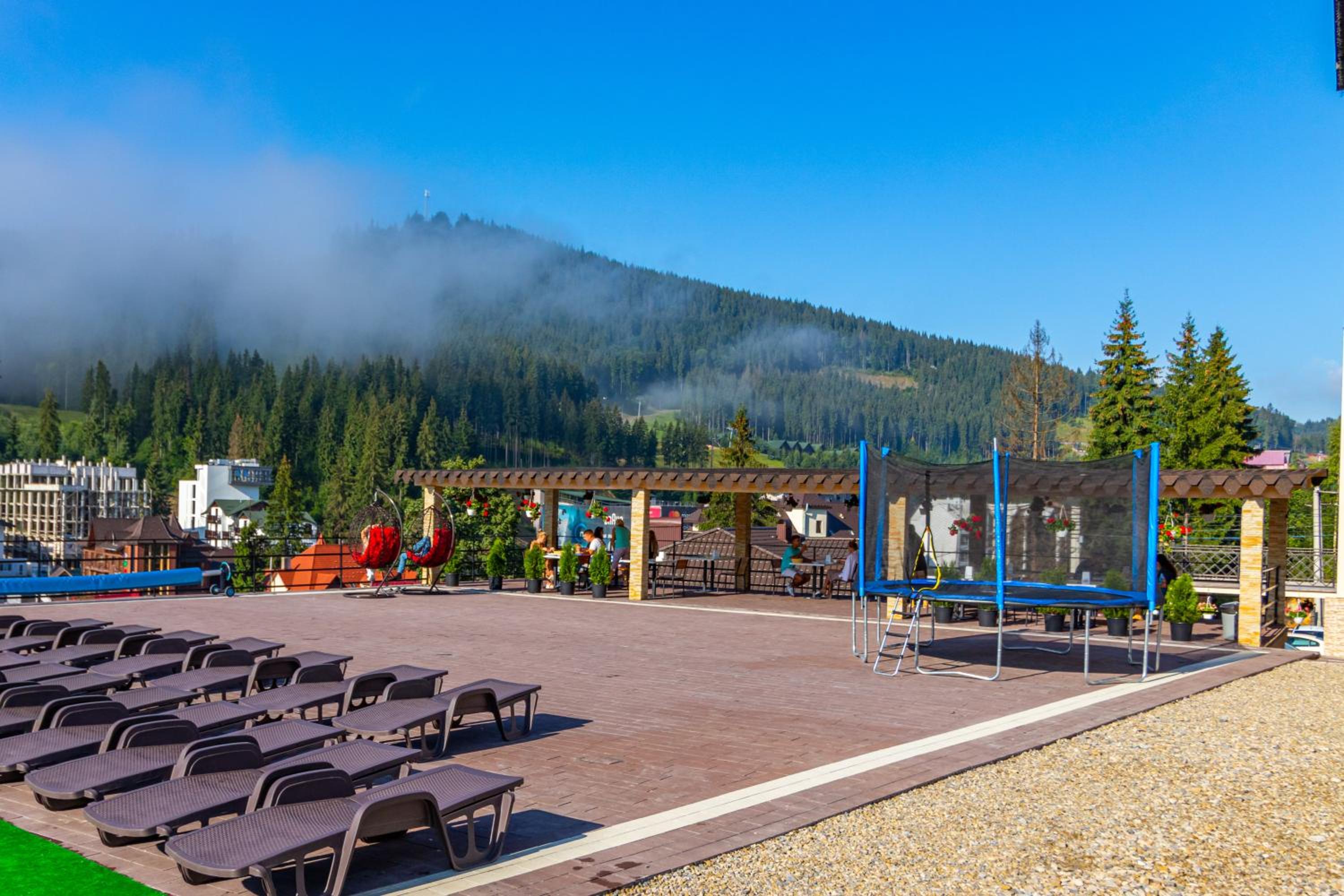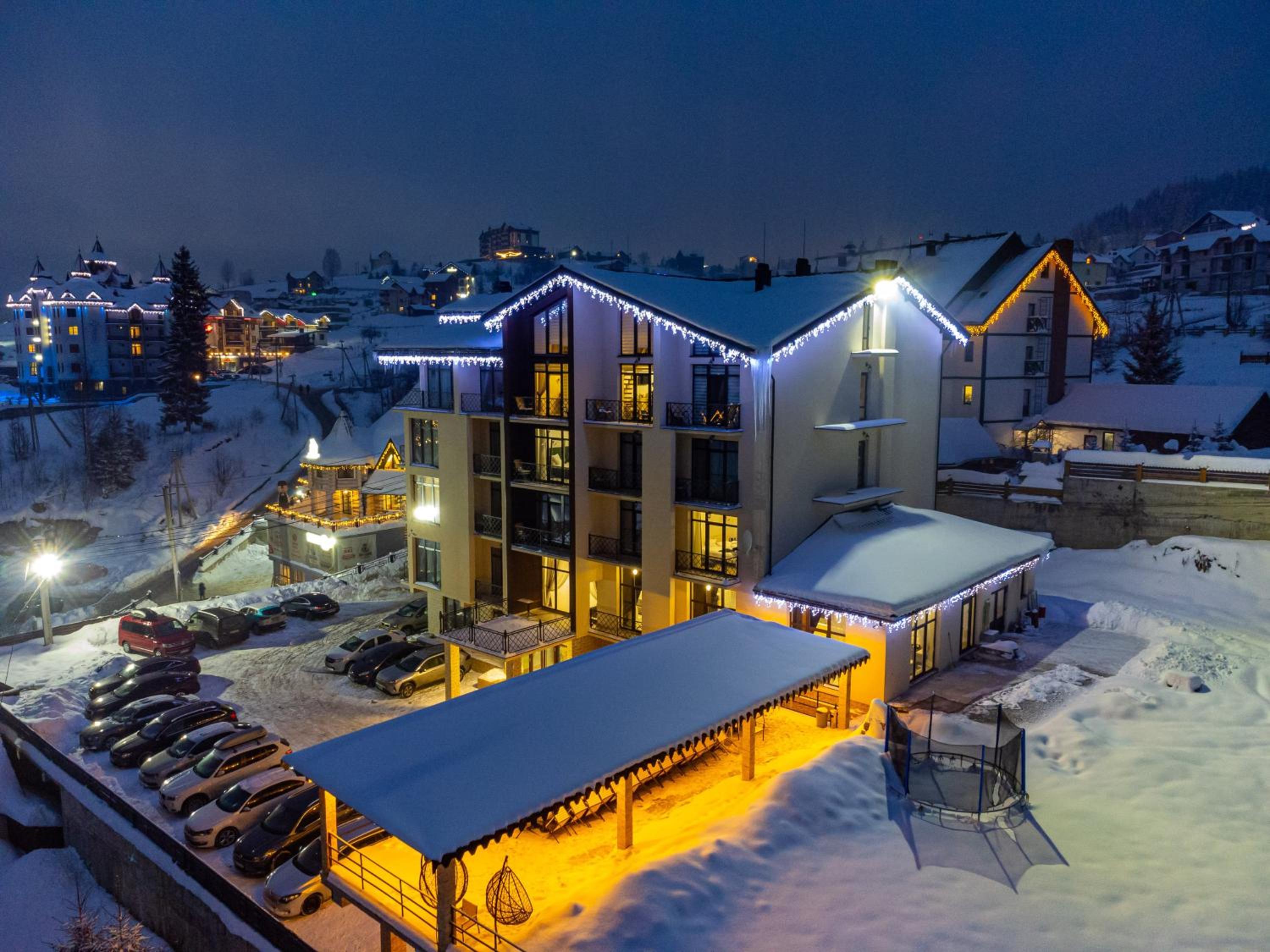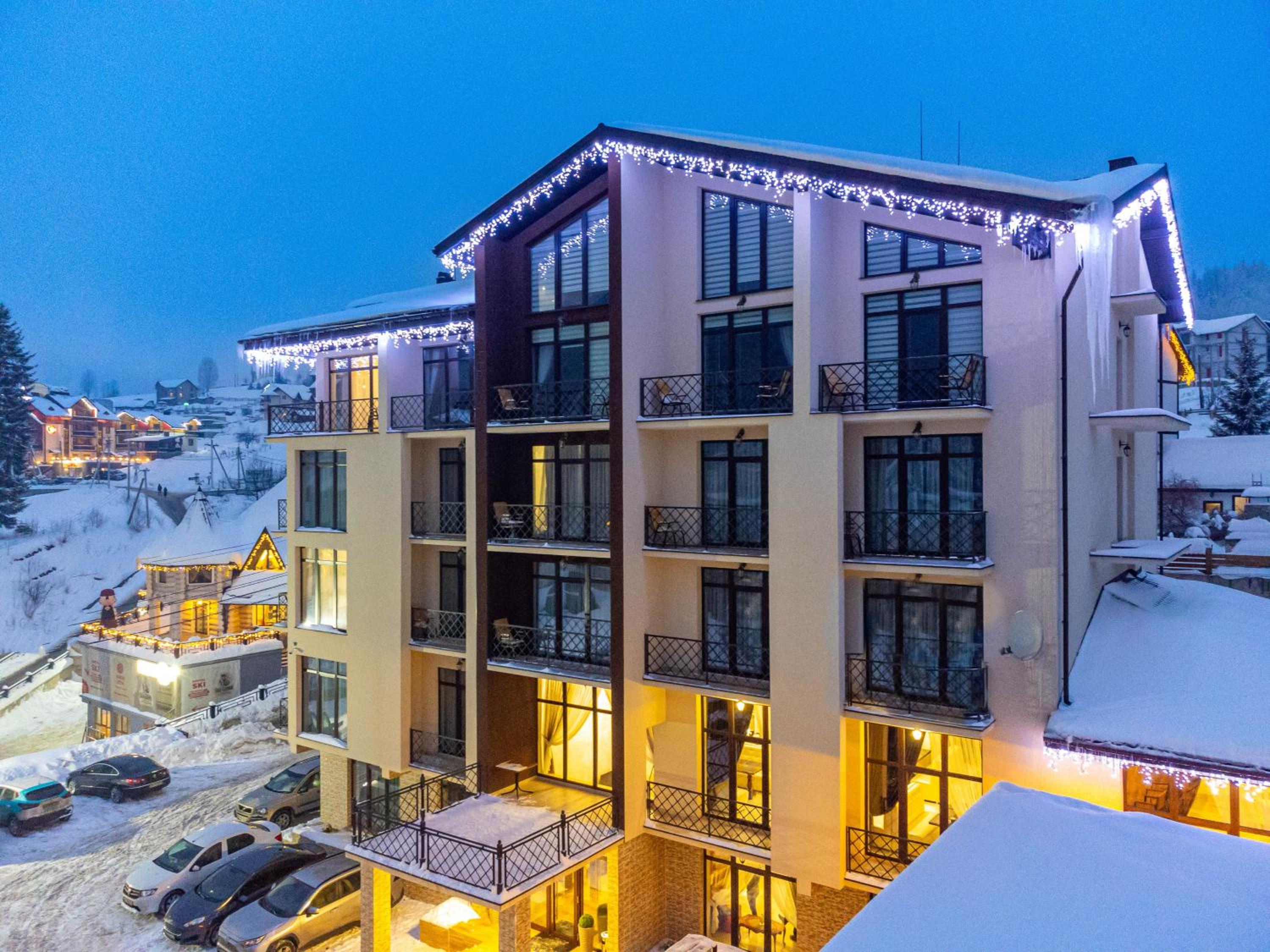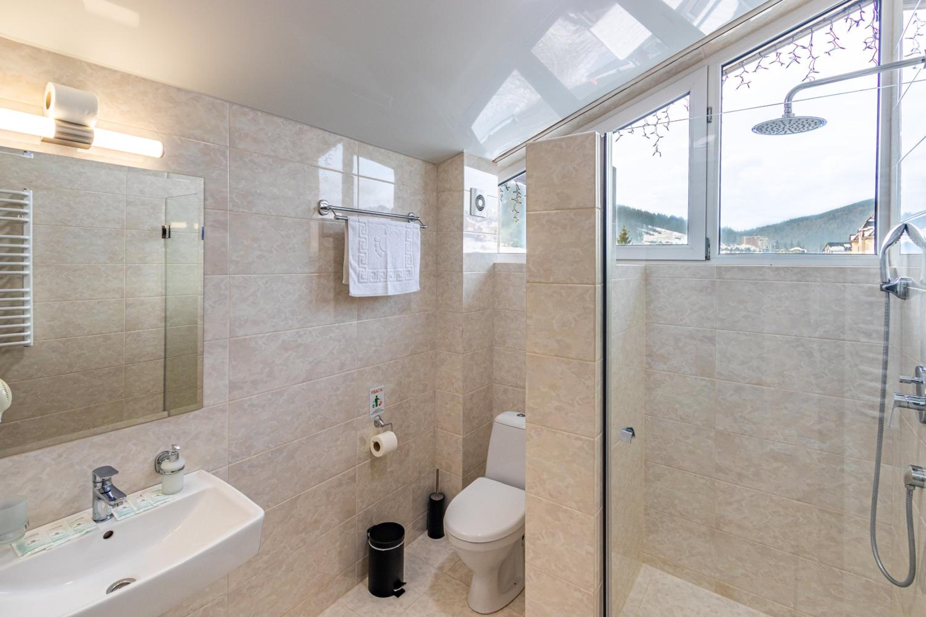 Не очікувала, що буде так чисто, гарно і два досить великих басейнів, є в приміщенні і на дворі, а ще великий вибір саун (6 шт.), які доступні з 13:00 до 21:00. Територія велика, на парковці достатньо місця для машин. Сніданок смачний, великий вибір. Номер дуже чистий і новий. Можна легко пройтися до центру, підйомників і озера Буковеля, не так далеко як здавалося.