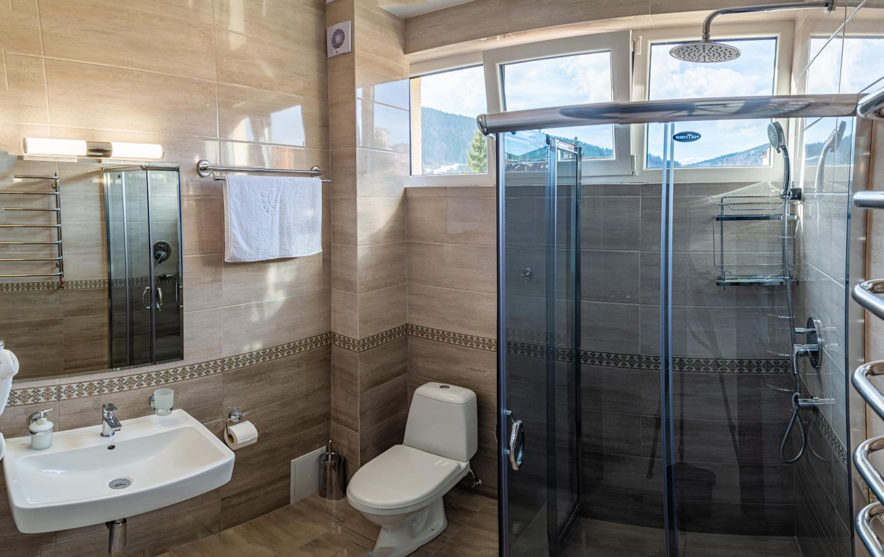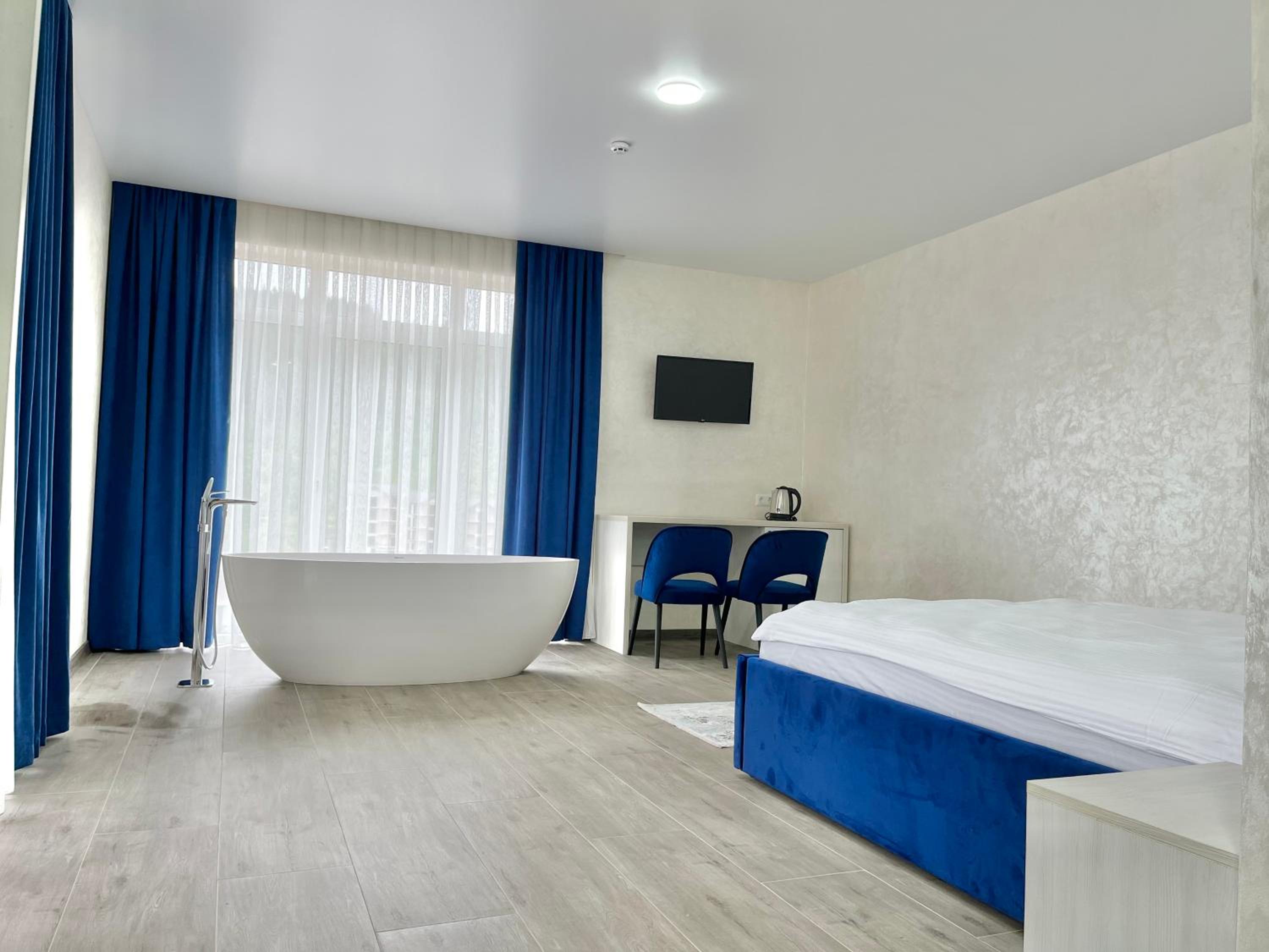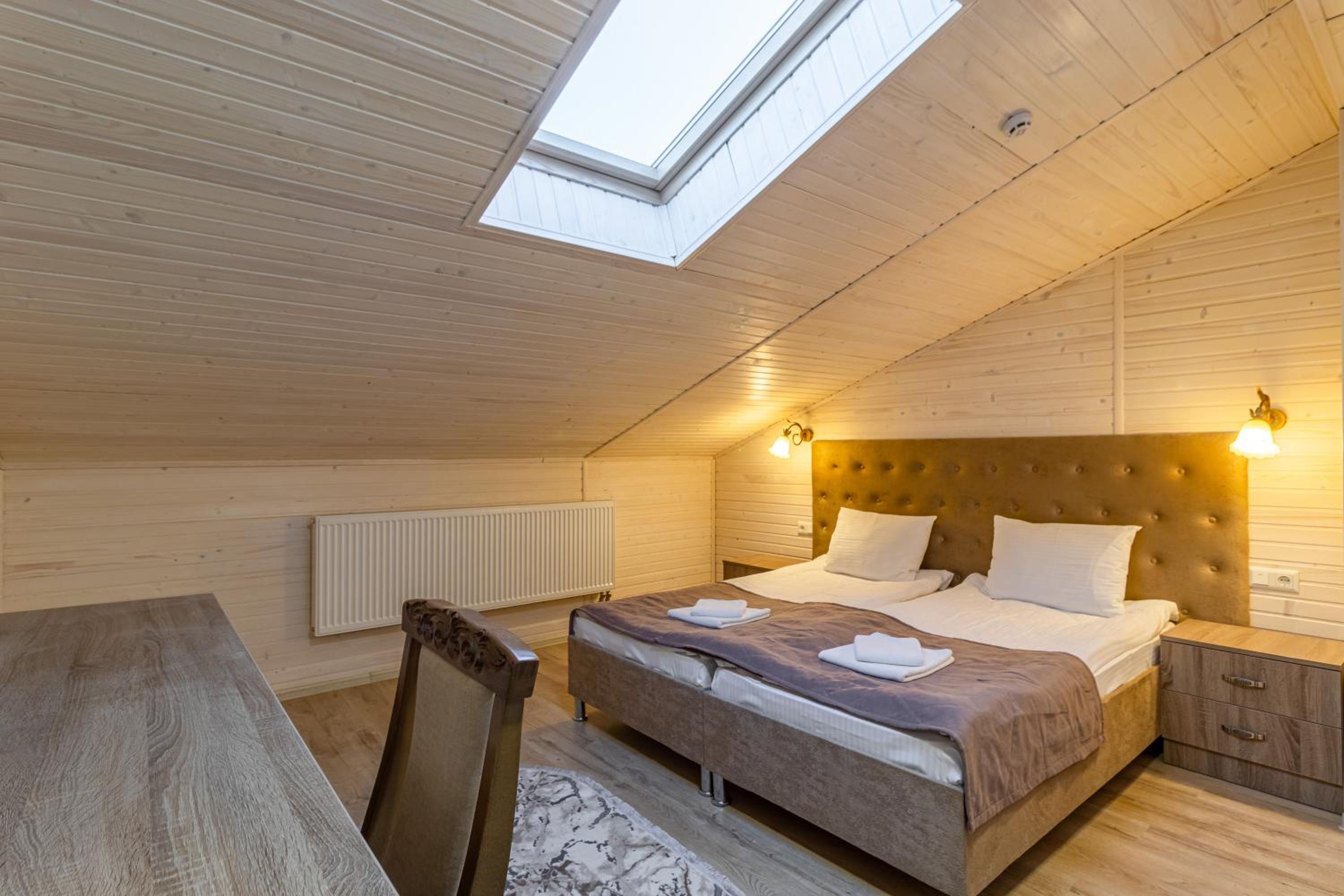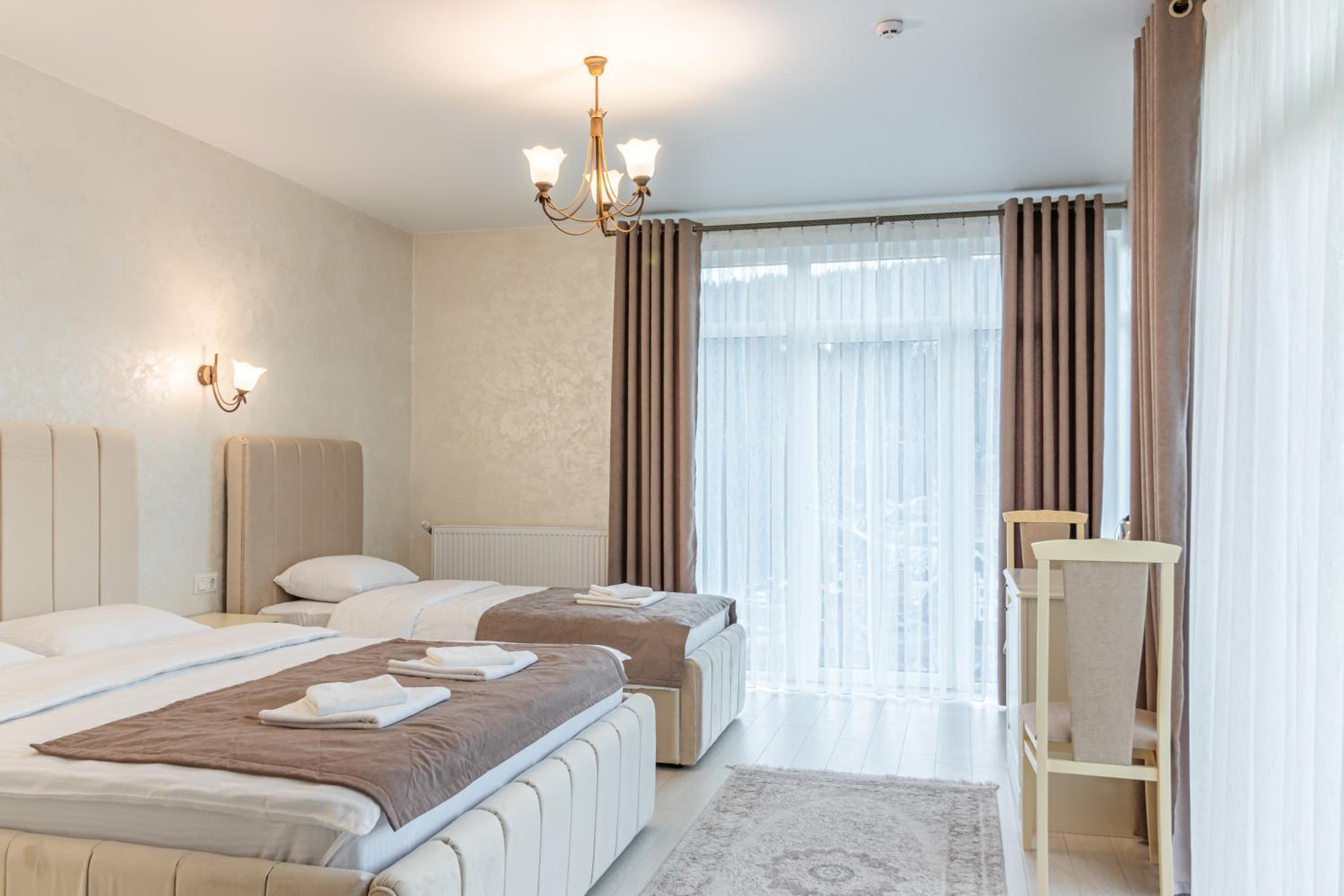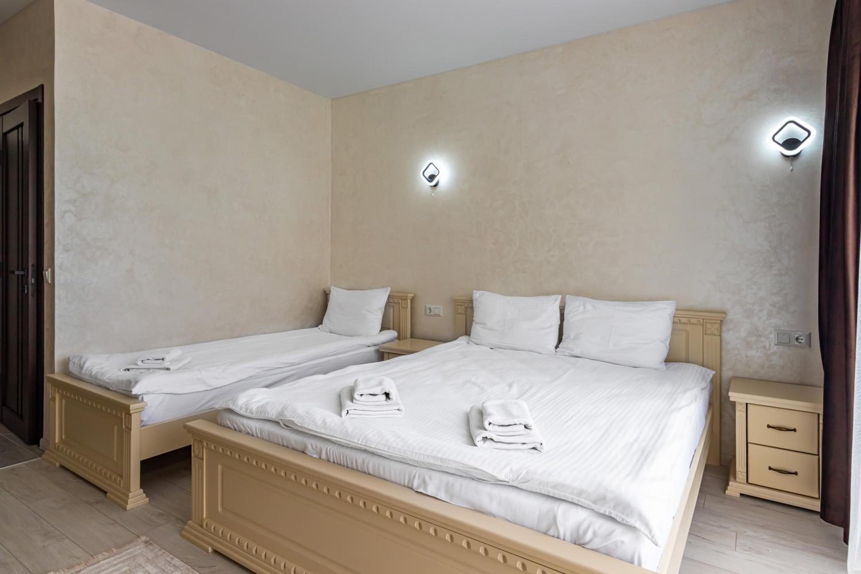 Не очікувала, що буде так чисто, гарно і два досить великих басейнів, є в приміщенні і на дворі, а ще великий вибір саун (6 шт.), які доступні з 13:00 до 21:00. Територія велика, на парковці достатньо місця для машин. Сніданок смачний, великий вибір. Номер дуже чистий і новий. Можна легко пройтися до центру, підйомників і озера Буковеля, не так далеко як здавалося.