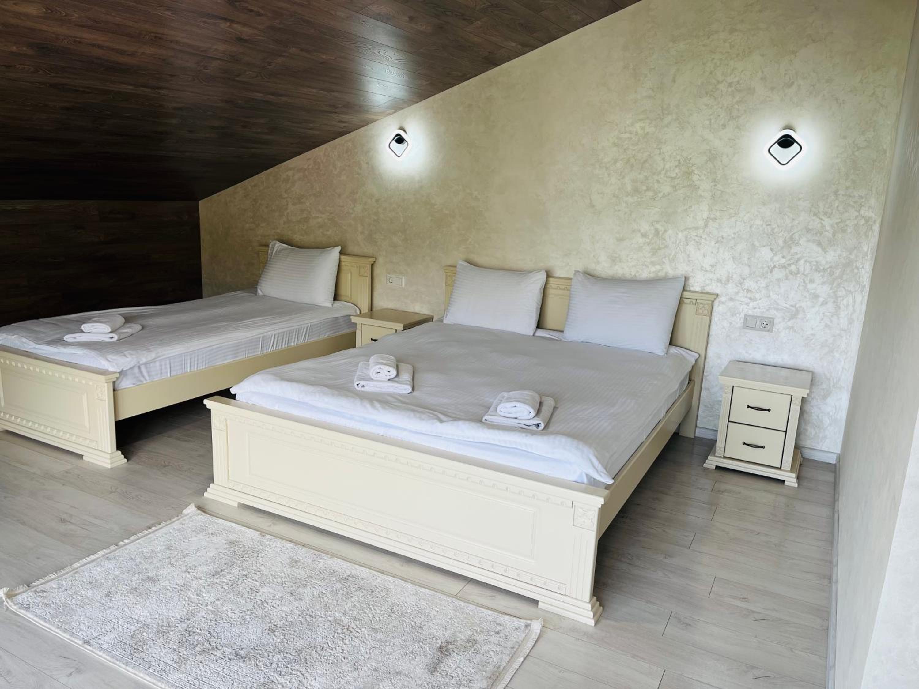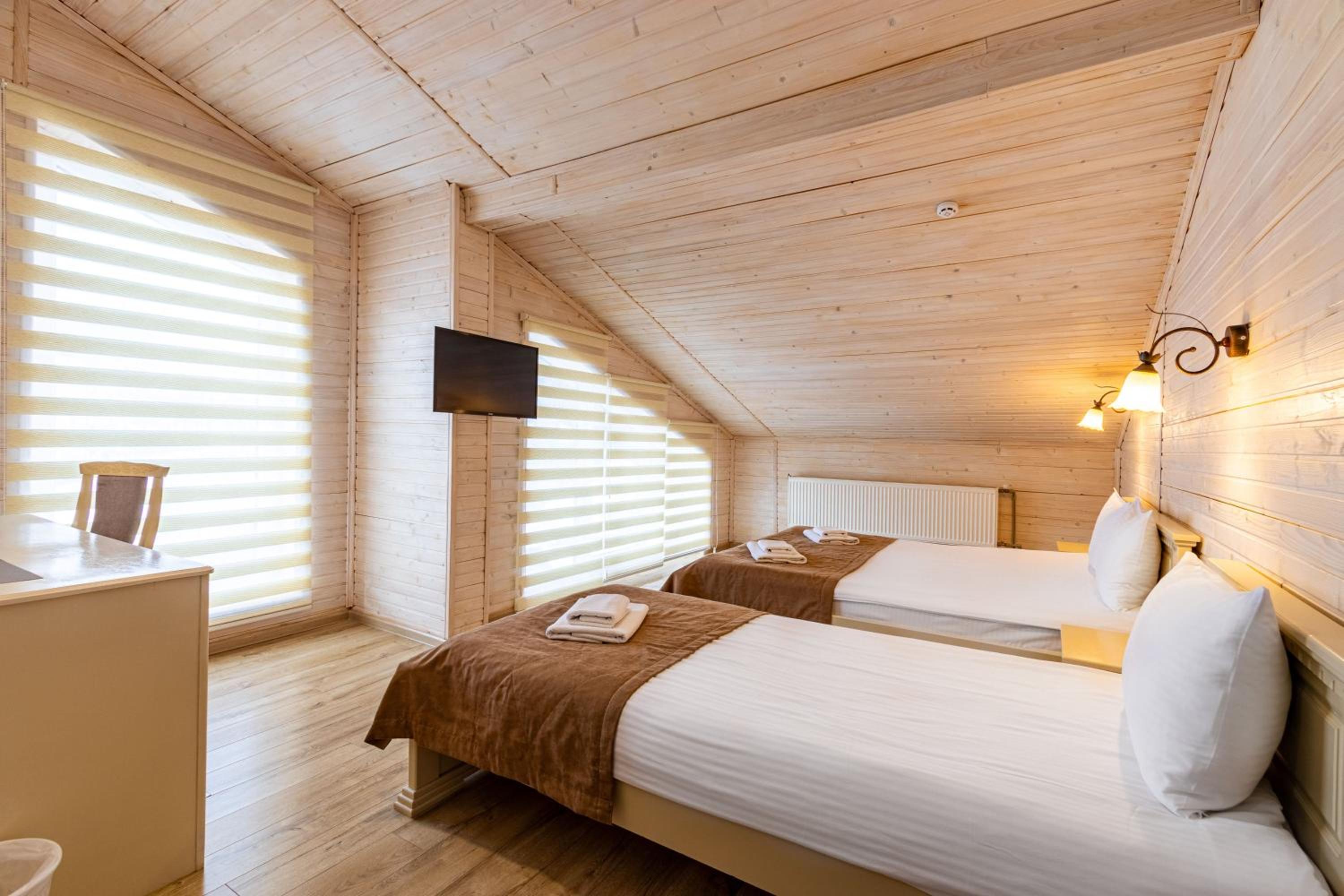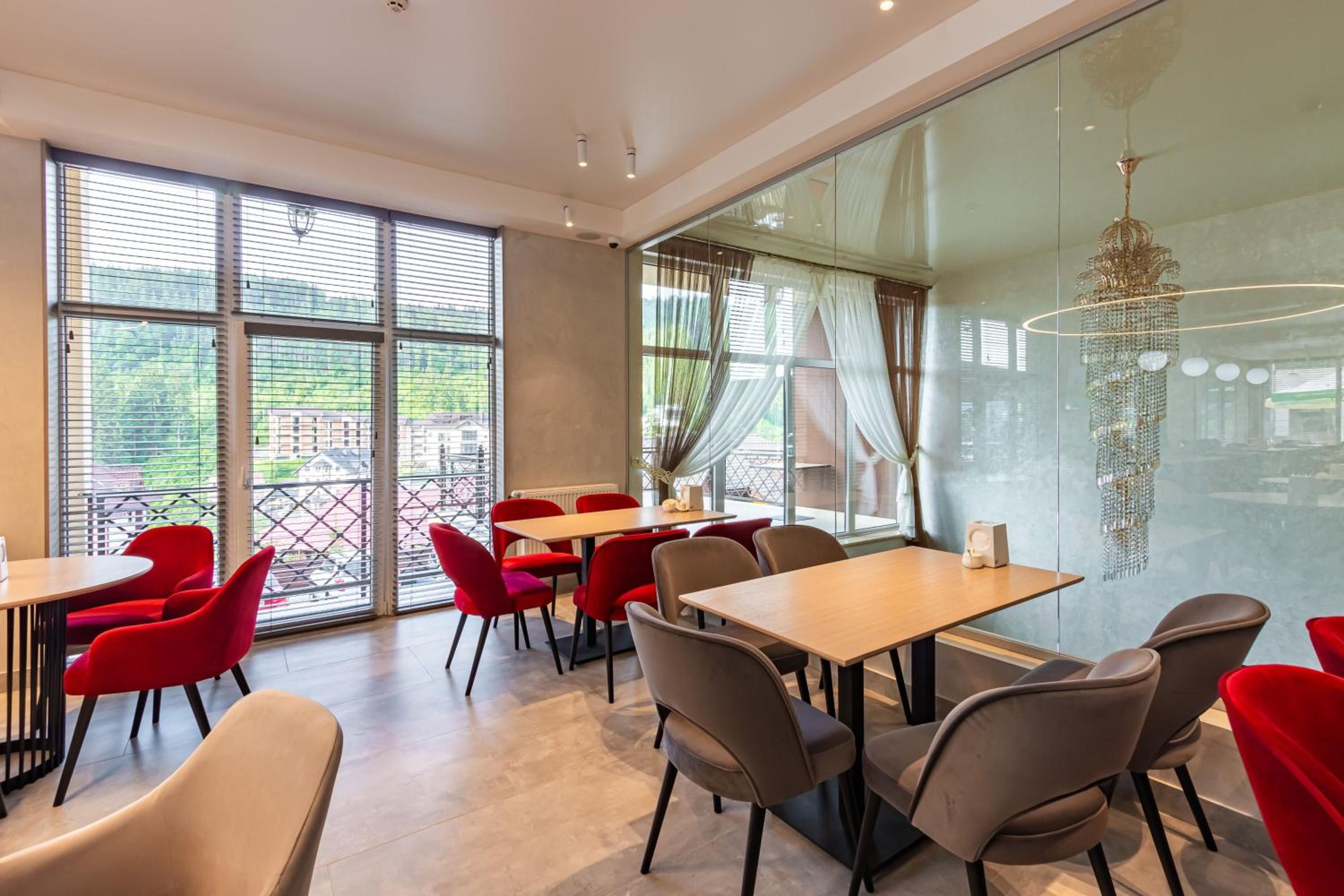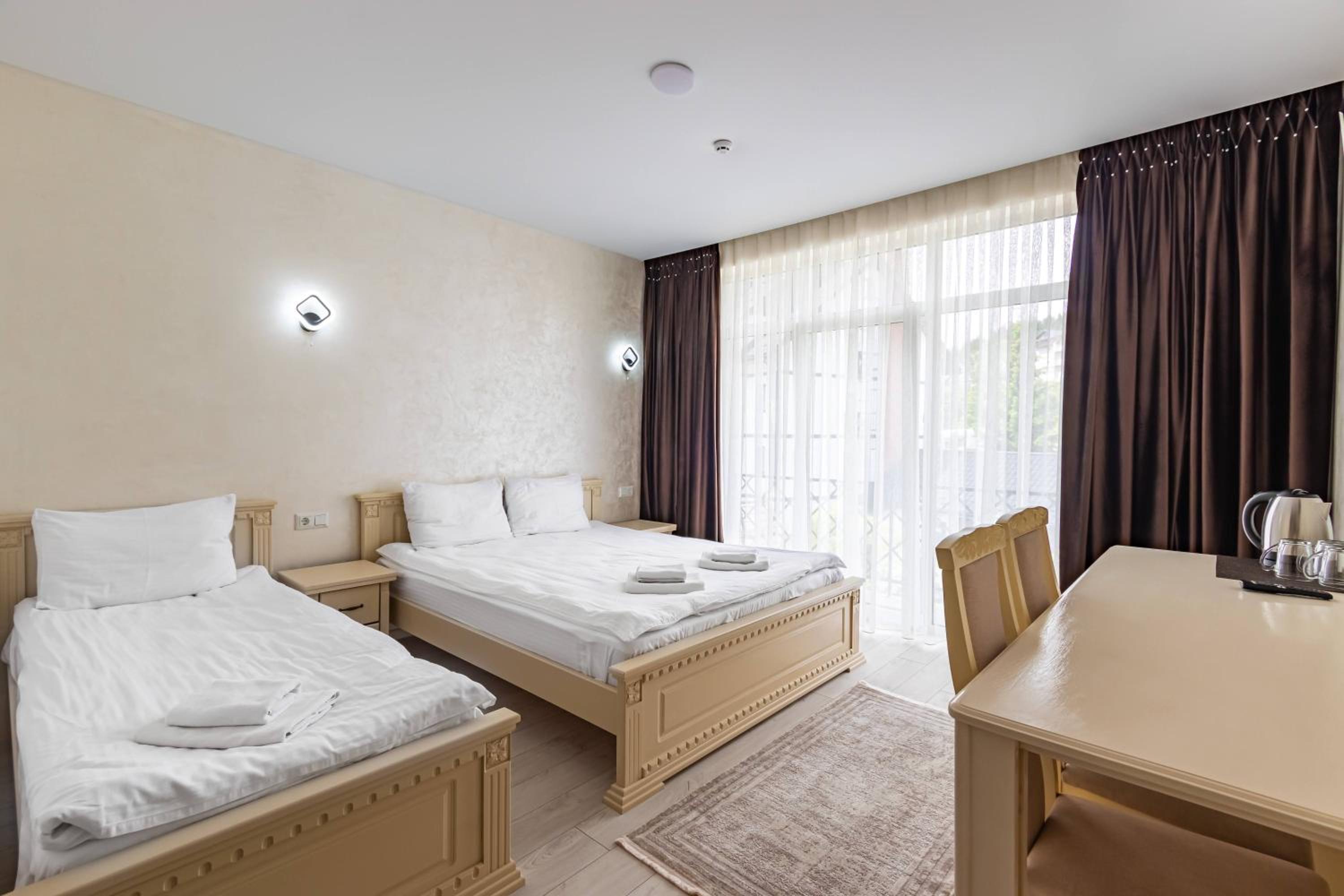 Не очікувала, що буде так чисто, гарно і два досить великих басейнів, є в приміщенні і на дворі, а ще великий вибір саун (6 шт.), які доступні з 13:00 до 21:00. Територія велика, на парковці достатньо місця для машин. Сніданок смачний, великий вибір. Номер дуже чистий і новий. Можна легко пройтися до центру, підйомників і озера Буковеля, не так далеко як здавалося.