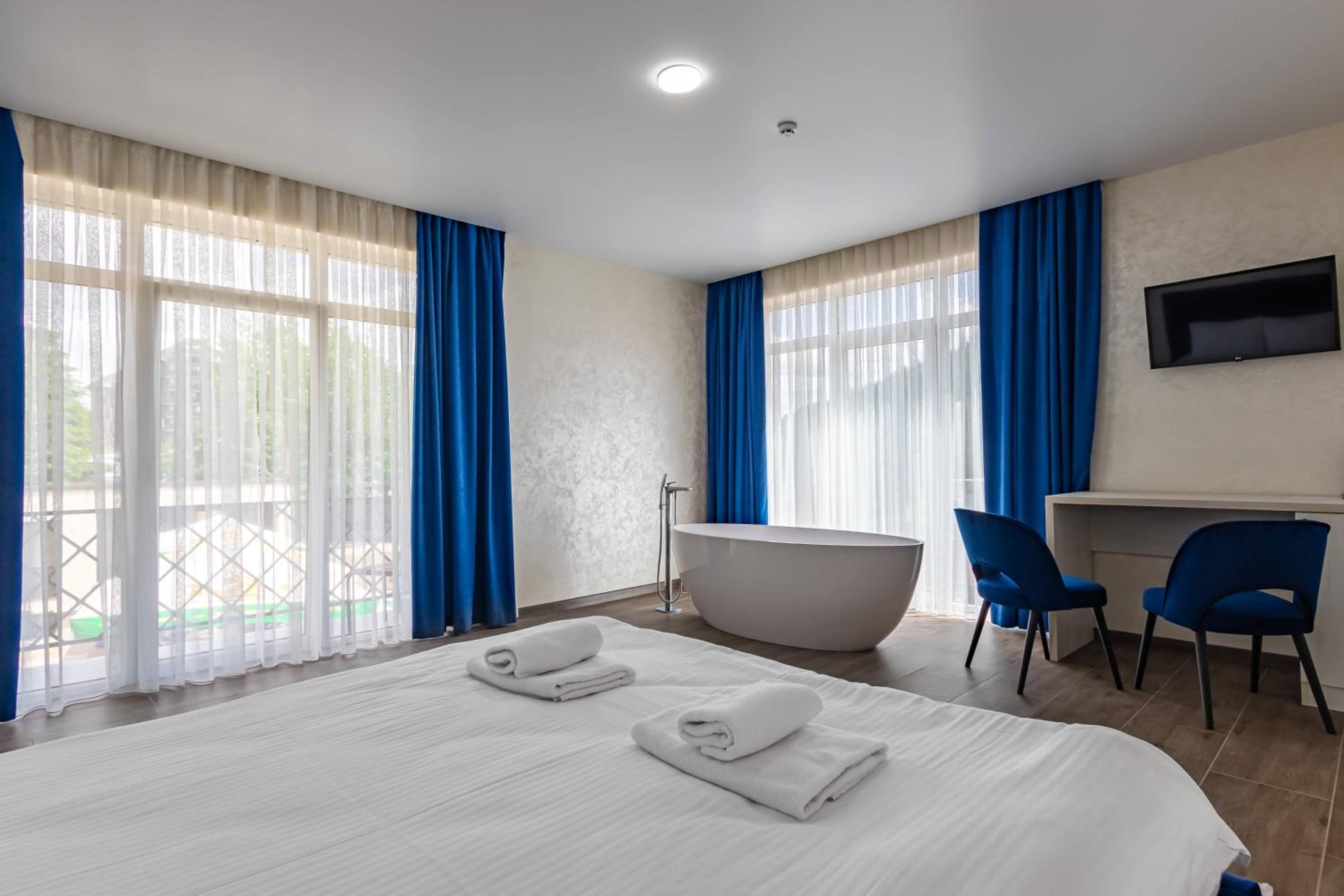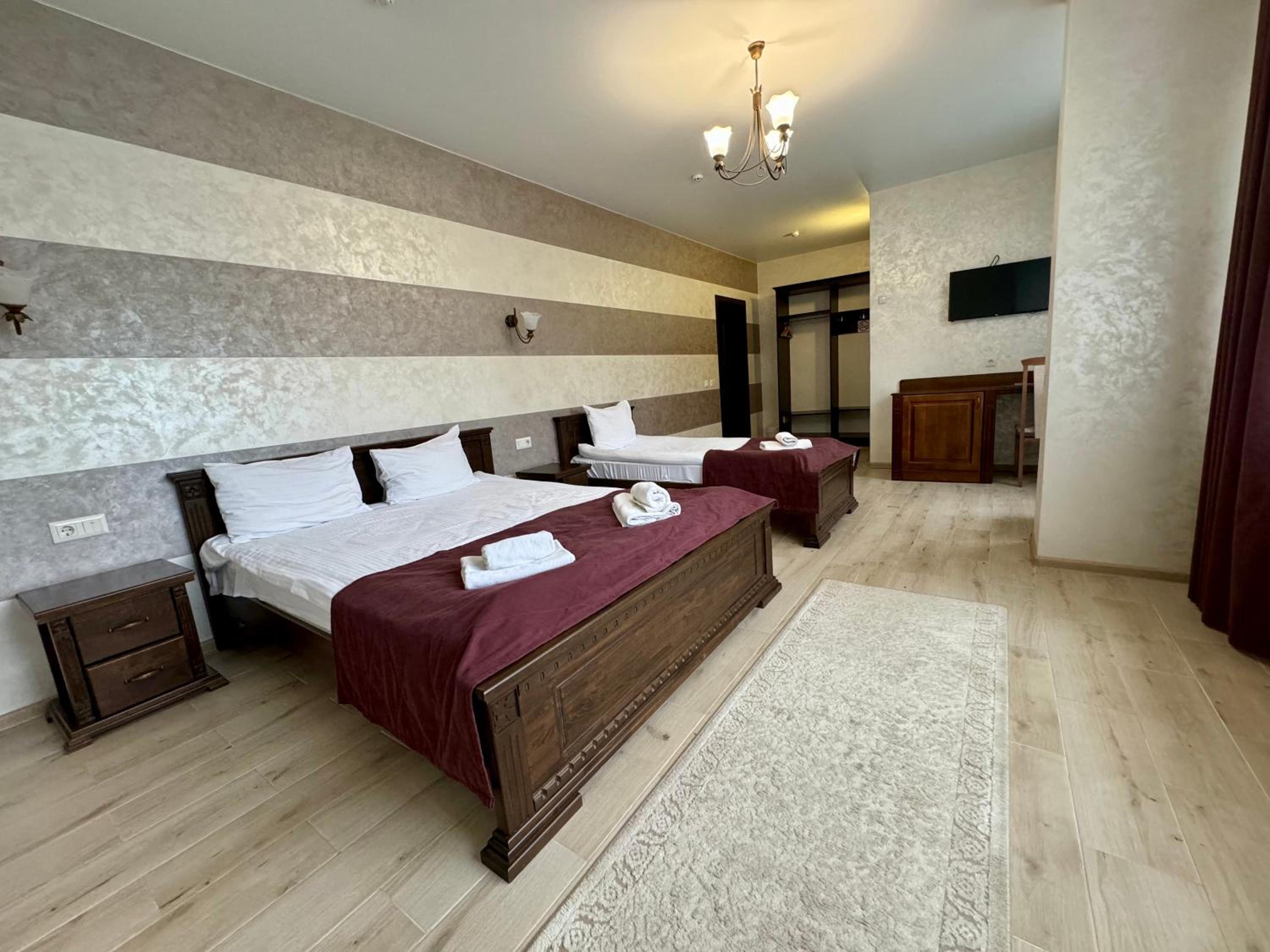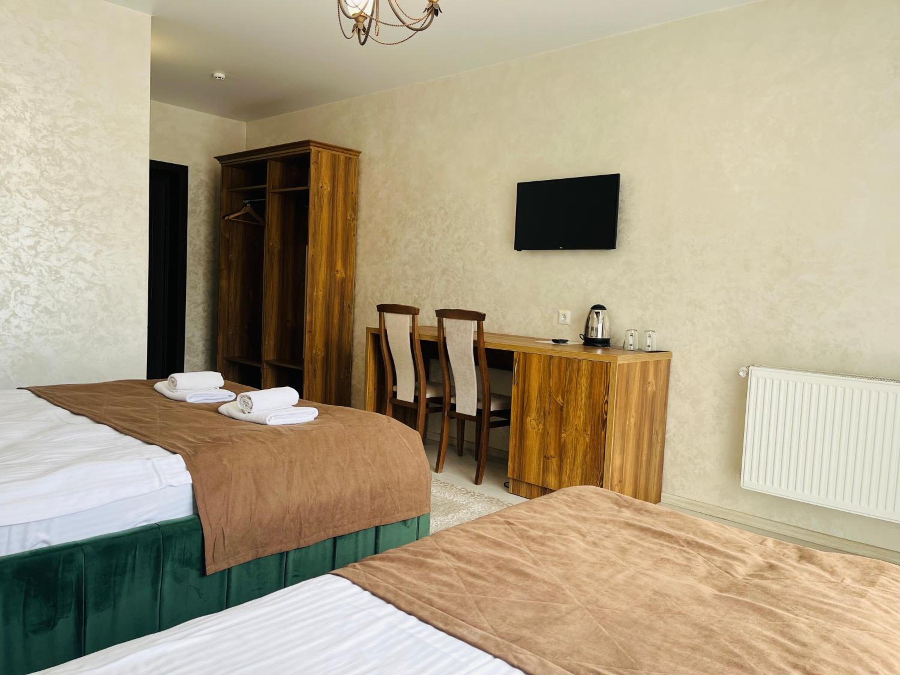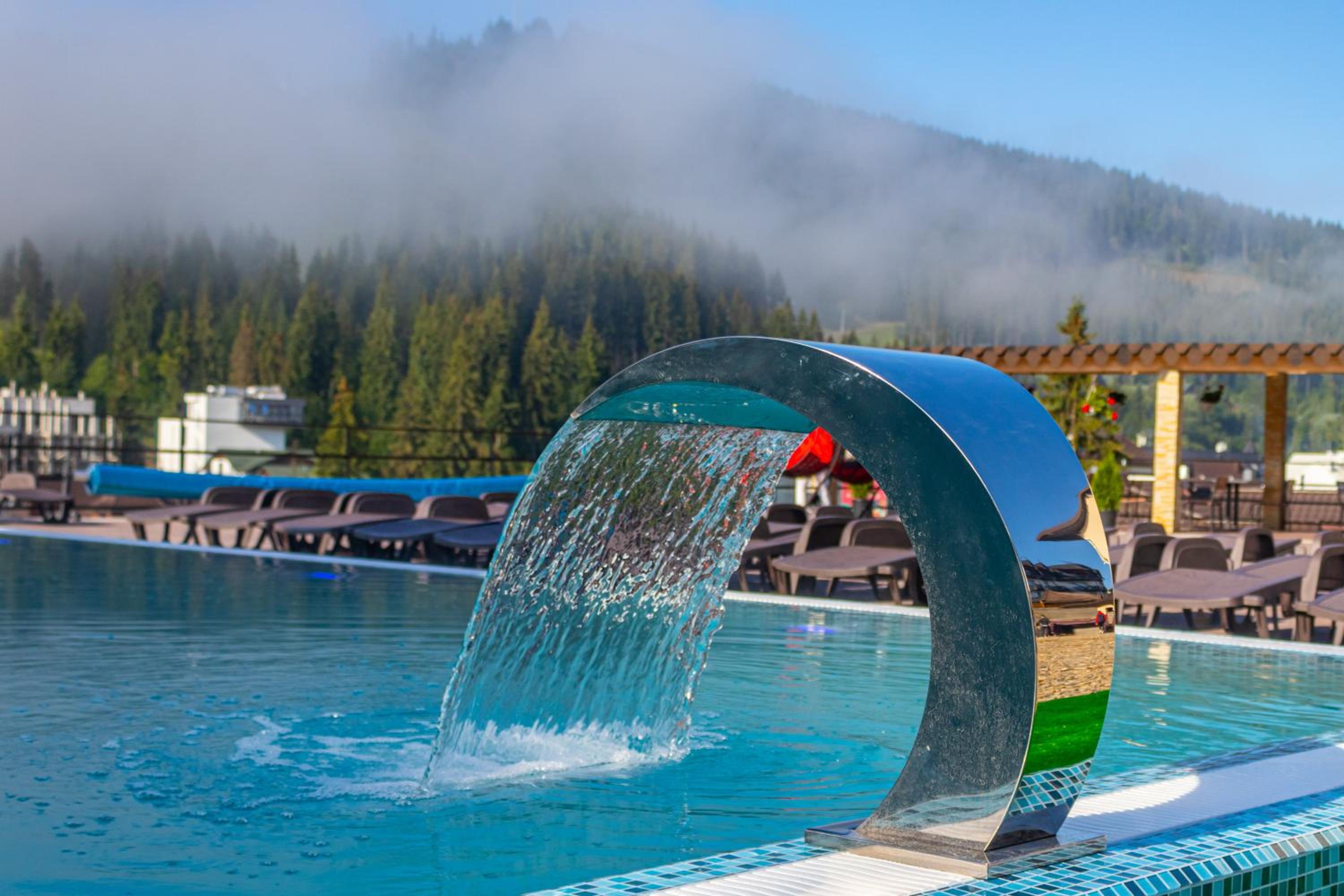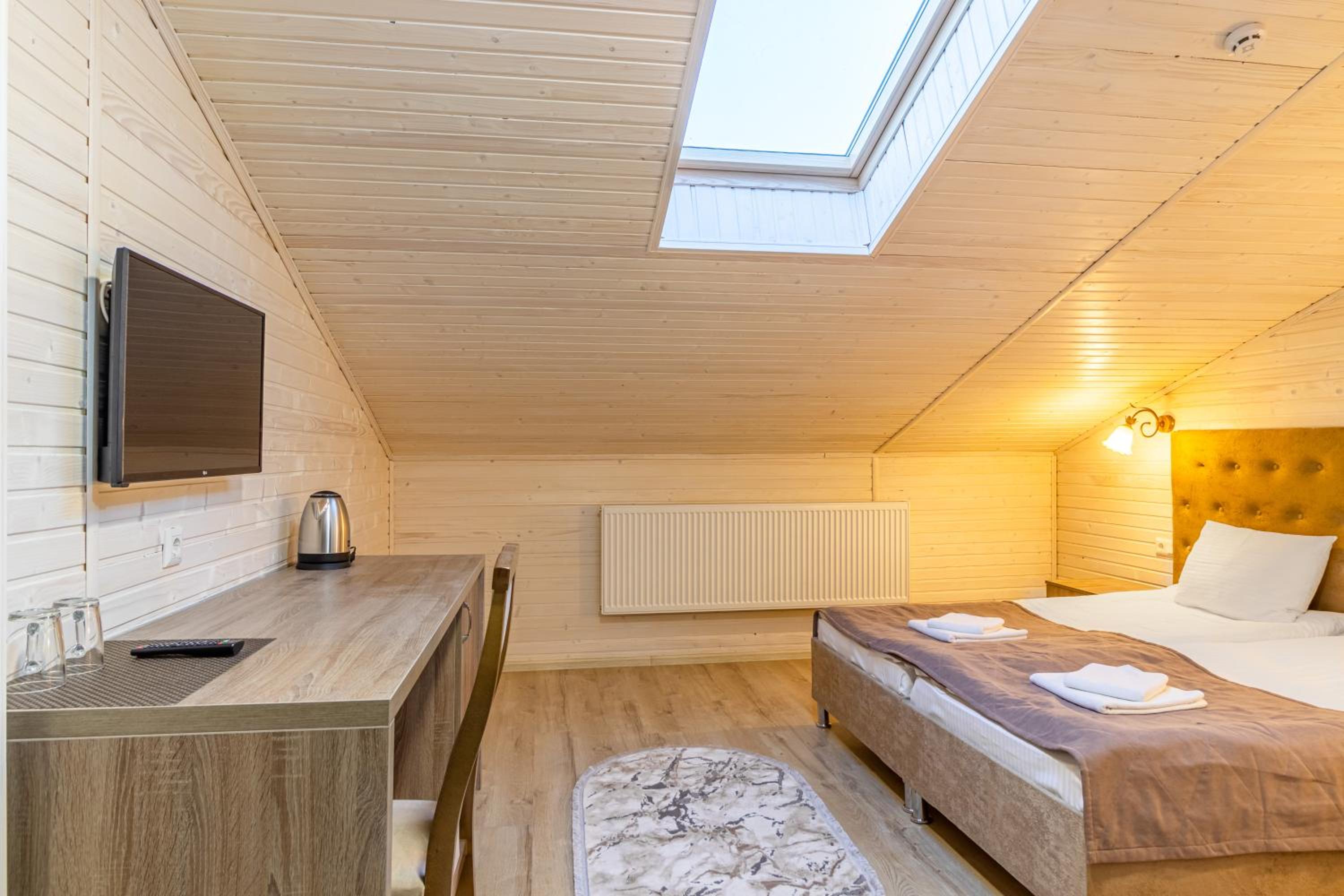 Не очікувала, що буде так чисто, гарно і два досить великих басейнів, є в приміщенні і на дворі, а ще великий вибір саун (6 шт.), які доступні з 13:00 до 21:00. Територія велика, на парковці достатньо місця для машин. Сніданок смачний, великий вибір. Номер дуже чистий і новий. Можна легко пройтися до центру, підйомників і озера Буковеля, не так далеко як здавалося.