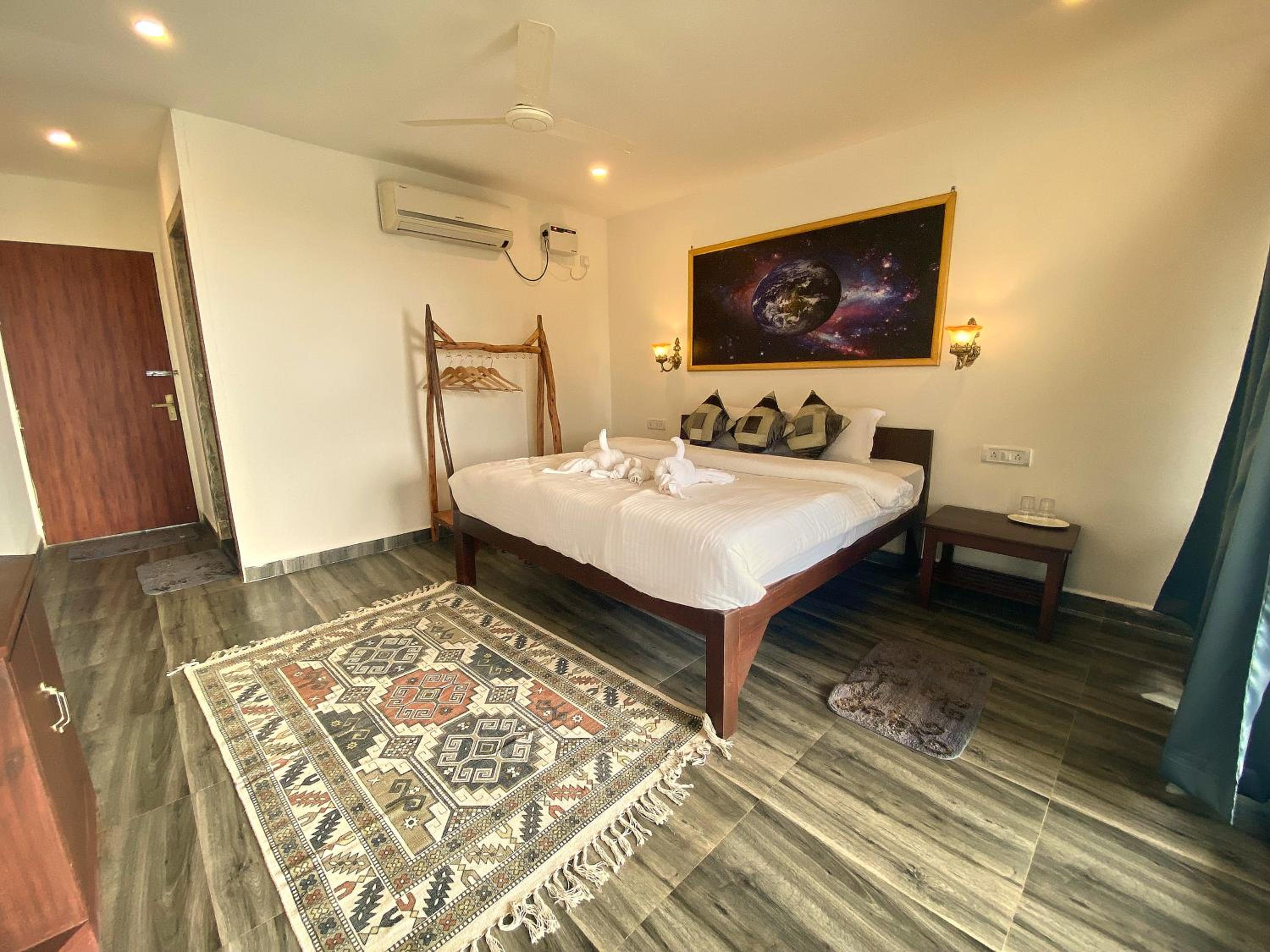 Chique Shanti Resort, nestled in Mandrem just 600 meters from Mandrem Beach, offers a tranquil escape with a garden, free parking, and a cozy restaurant and bar. The 3-star hotel provides top-notch room service and a round-the-clock front desk for your convenience. Each guest room features a comfortable seating area and is equipped with air conditioning, with some rooms boasting a private balcony for a breathtaking view.