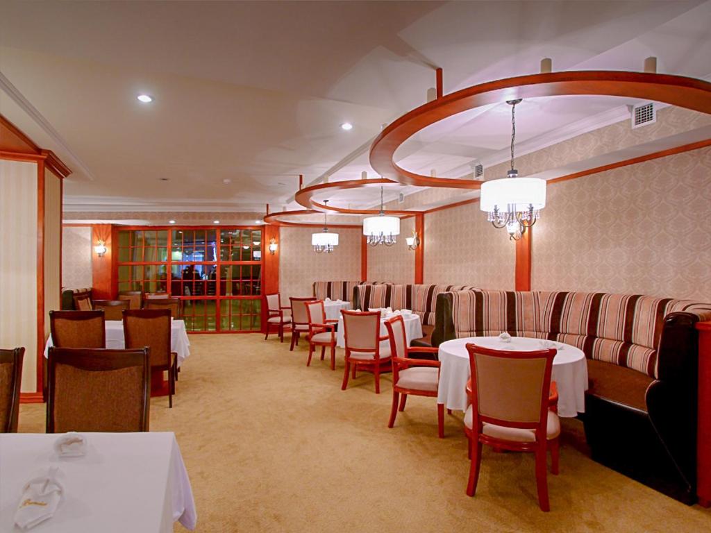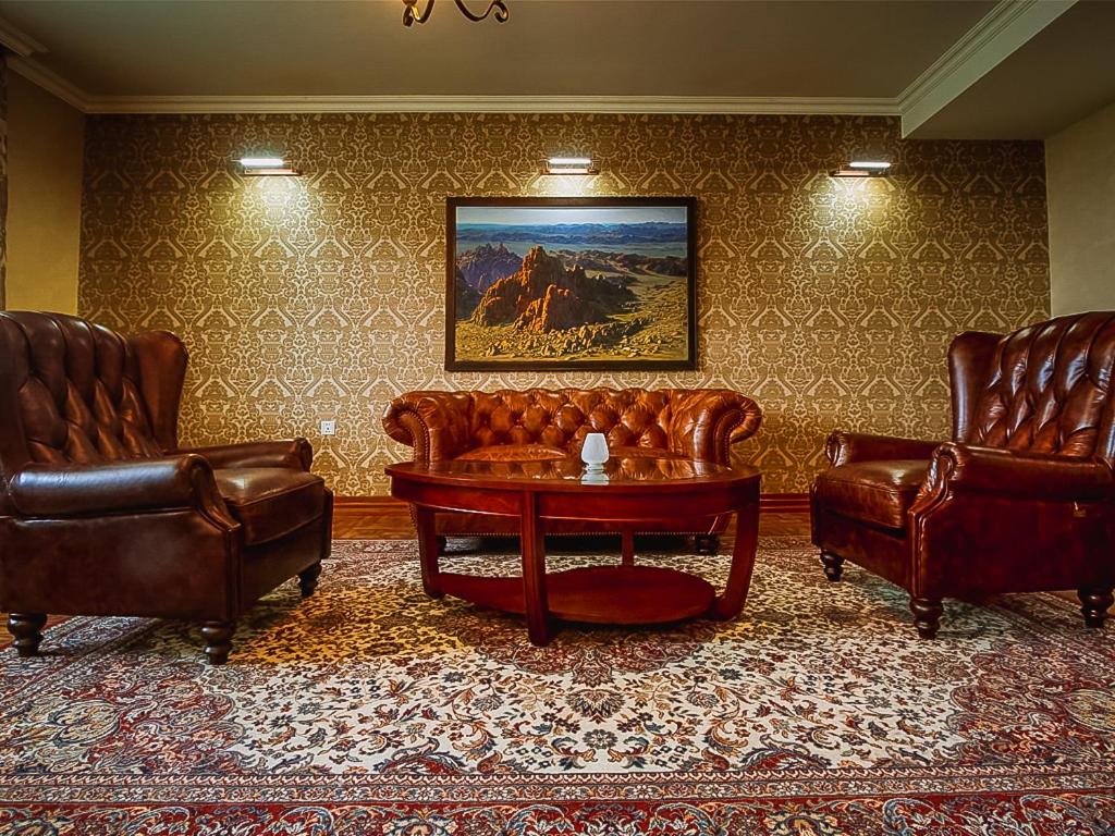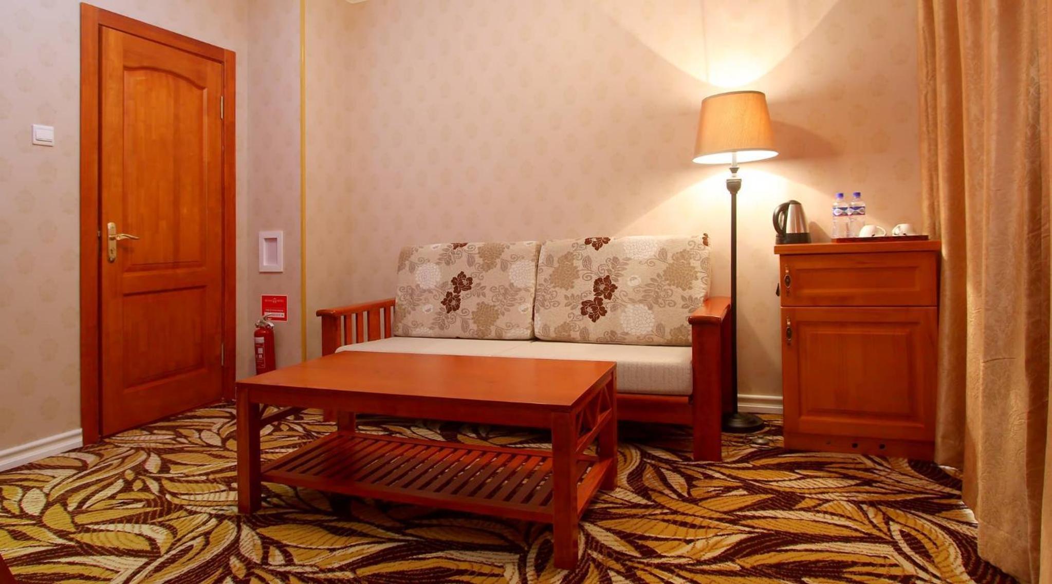 Buudai hotel in Darkhan offers 4-star accommodation with stunning city views from private balconies in every room. Each room is equipped with modern amenities like air conditioning, flat-screen TV, and a safety deposit box for your convenience.