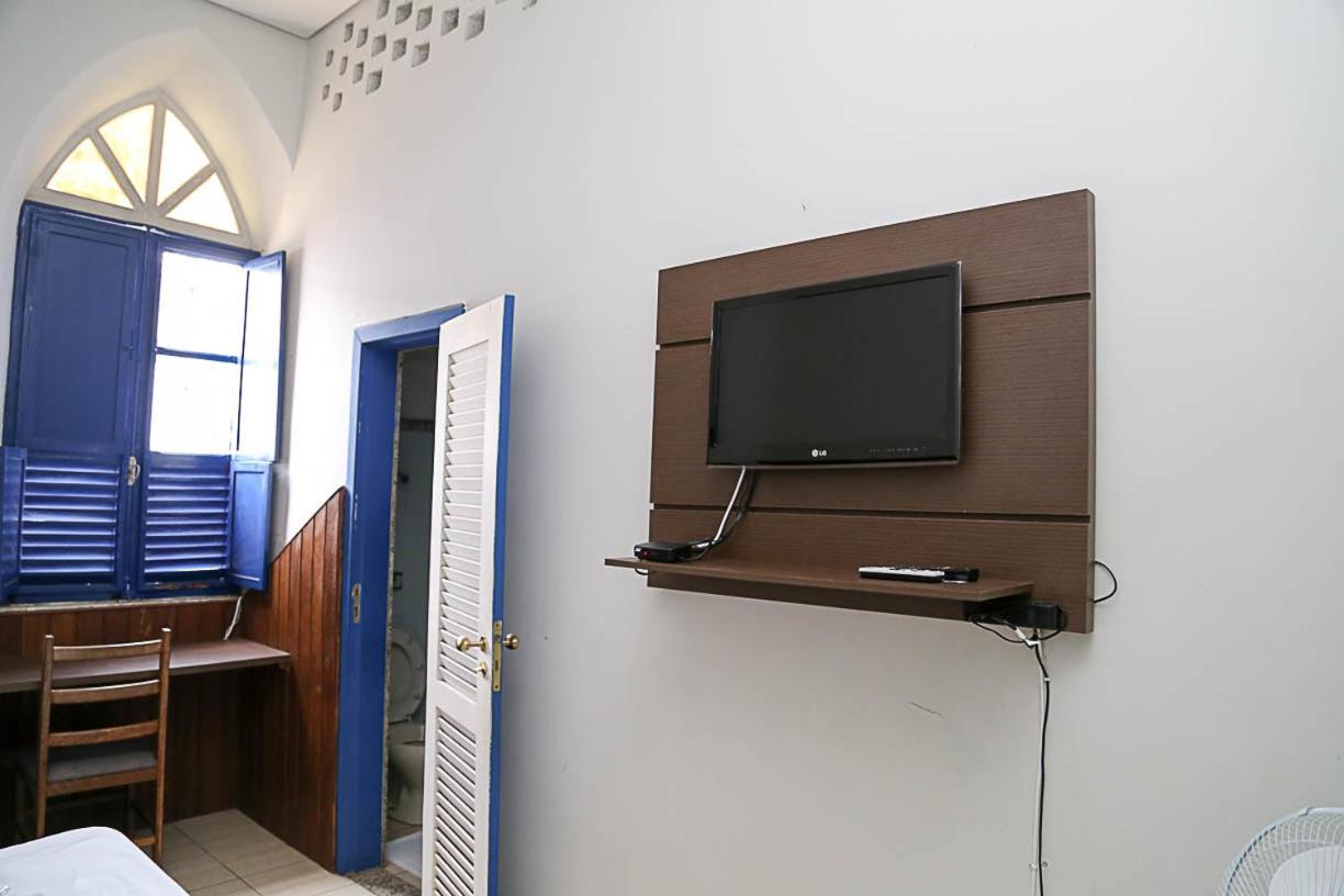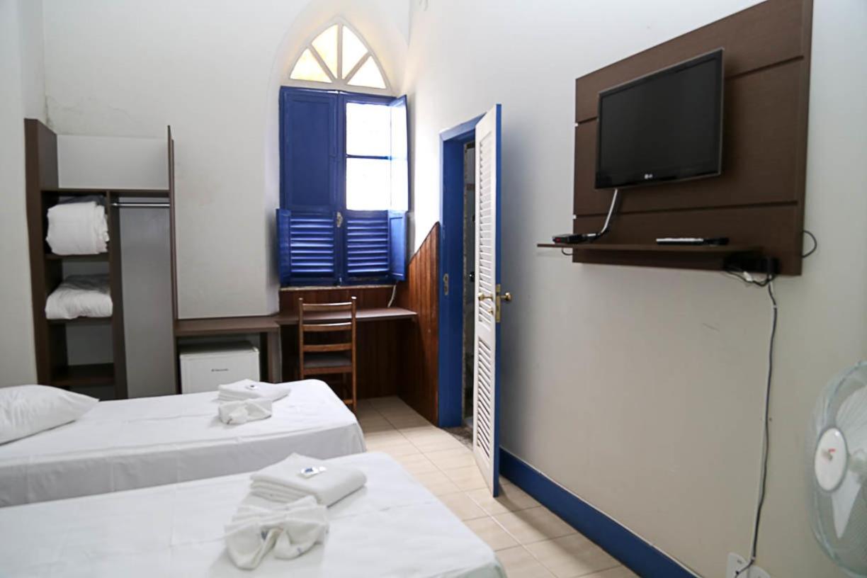 Each room at Hotel Providência features essential amenities like a fan, TV, telephone, and minibar, along with vibrant bedding and a private bathroom for a cozy stay.