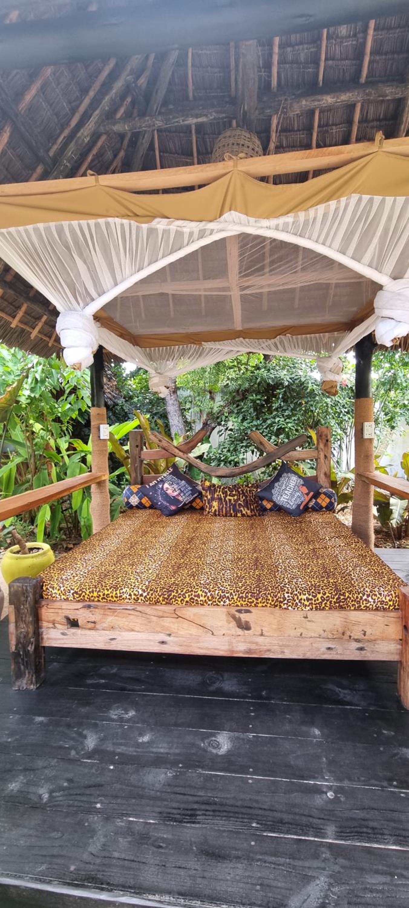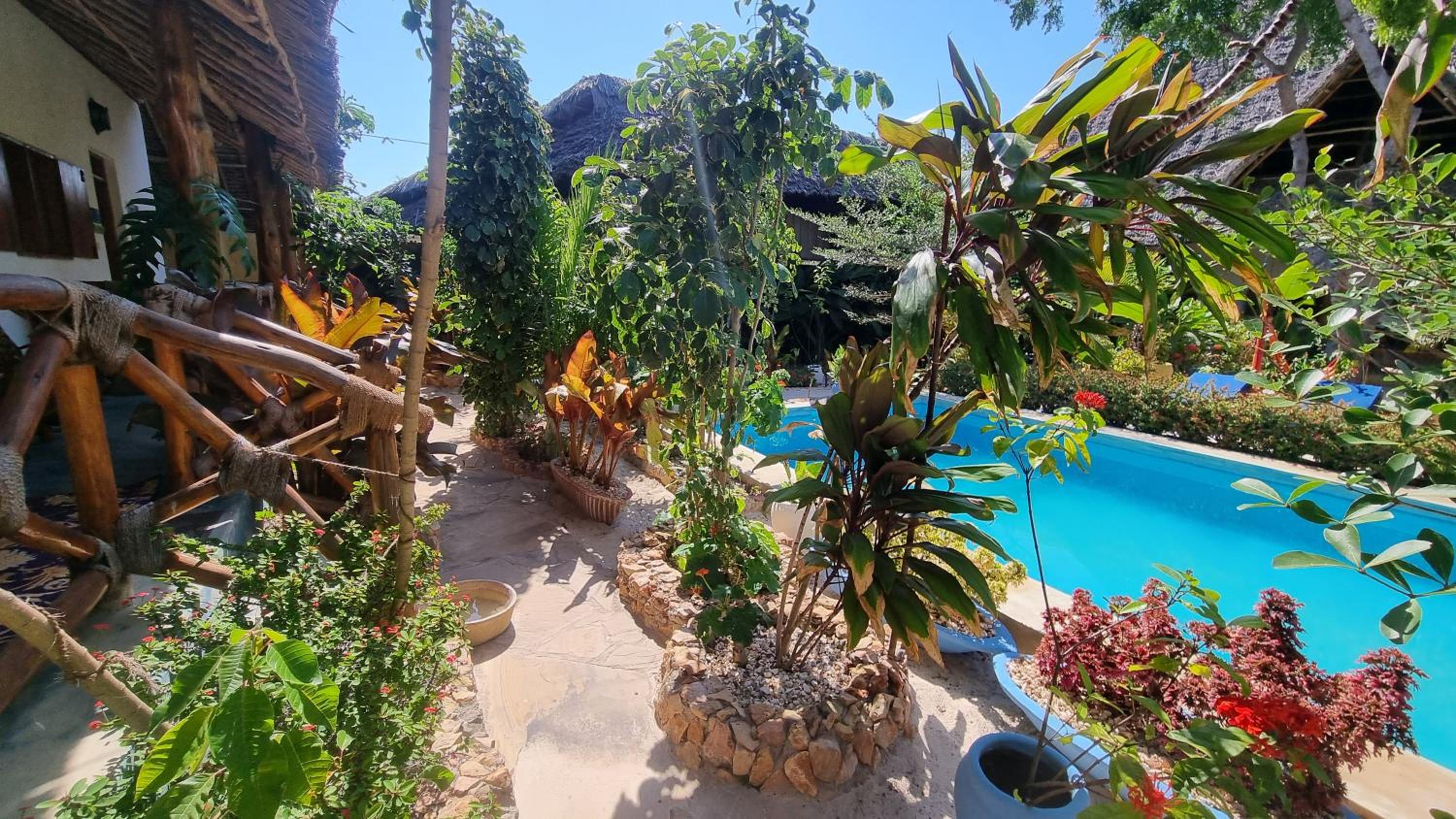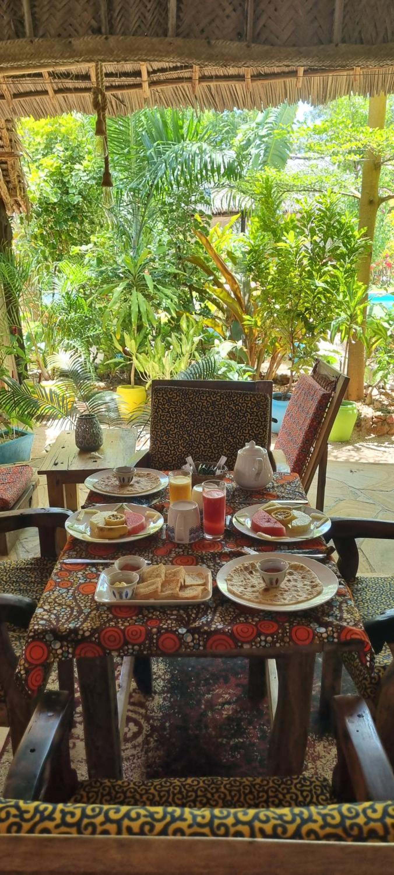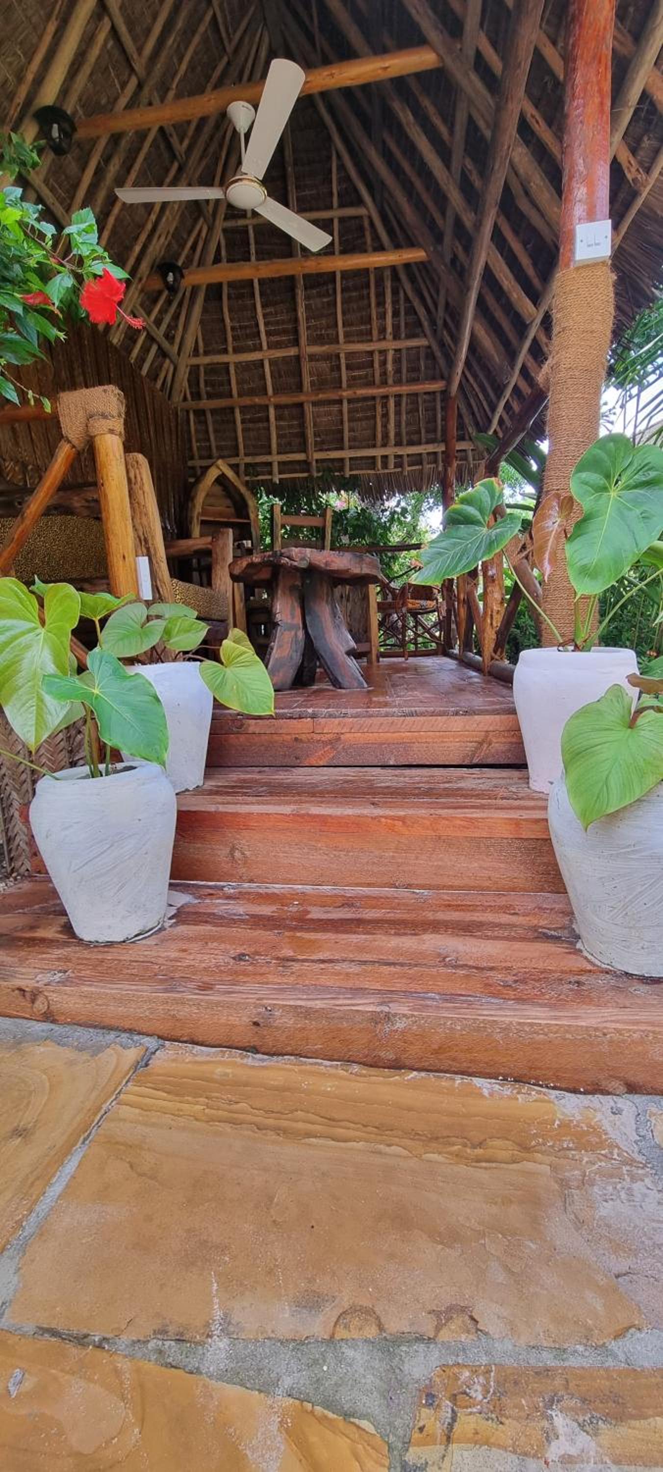 Allez-y ! C’est un endroit magnifique doté de 3 piscines toutes pourvues de lits de plage confortables : une peu profonde idéale pour les enfants, une moyenne et une grande de belle profondeur. Les plantes et les arbres partout présents constituent un splendide jardin. Les bâtiments sont très esthétiques et spacieux, construits pour permettre une ventilation naturelle complétée par des ventilateurs électriques. Petit-déjeuner, restauration et boissons sont de très bon niveau. 25 personnes travaillent discrètement et efficacement pour votre bien-être. Maria et Paco, qui dirigent l’établissement, sont très attentifs à allier environnement, esthétique et confort des hôtes. Le directeur des relations avec la clientèle, Saleh, nous a emmenés visiter gratuitement le village traditionnel et nous a expliqué la vie quotidienne et les valeurs de ses habitants. N’oubliez pas de lui laisser un pourboire, s’il vous plaît. Grâce à Salma et sa collègue de la réception, nous en avons appris davantage sur la réalité de la vie à Zanzibar. Merci à elles deux. On nous a prêté des vélos pour aller voir la criée aux poissons, à ne pas manquer quand la marée est assez haute pour que les pêcheurs accostent. Renseignez-vous sur l'horaire du jour car les enchères ne durent pas longtemps et demandez la permission de prendre des photos.