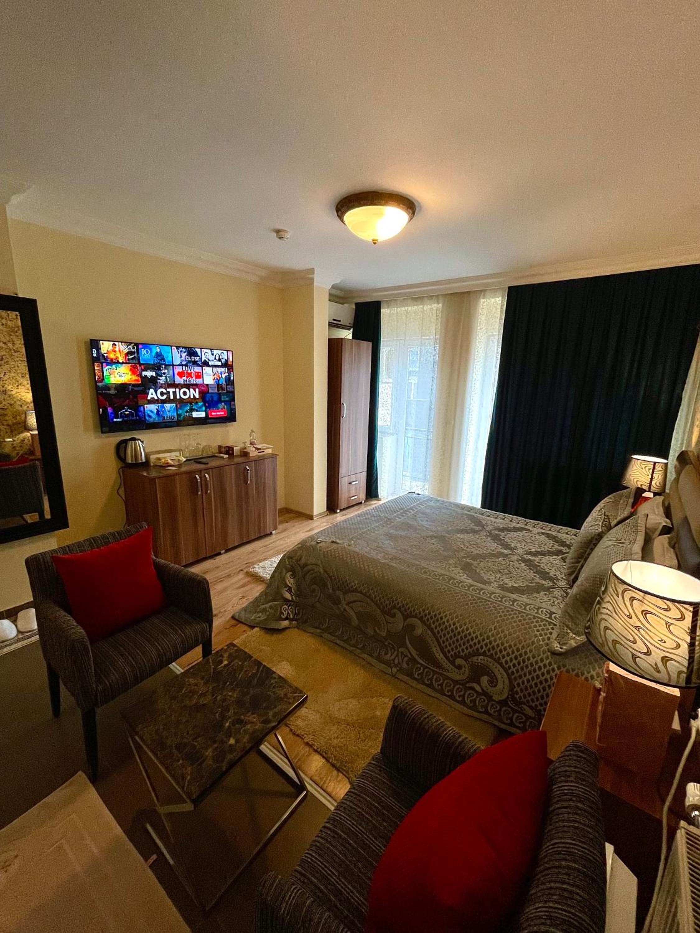 Experience breathtaking city views from our terrace and unwind at our vibrant nightclub. Enjoy a refreshing drink at the bar while taking in the lively atmosphere of Ferizaj.