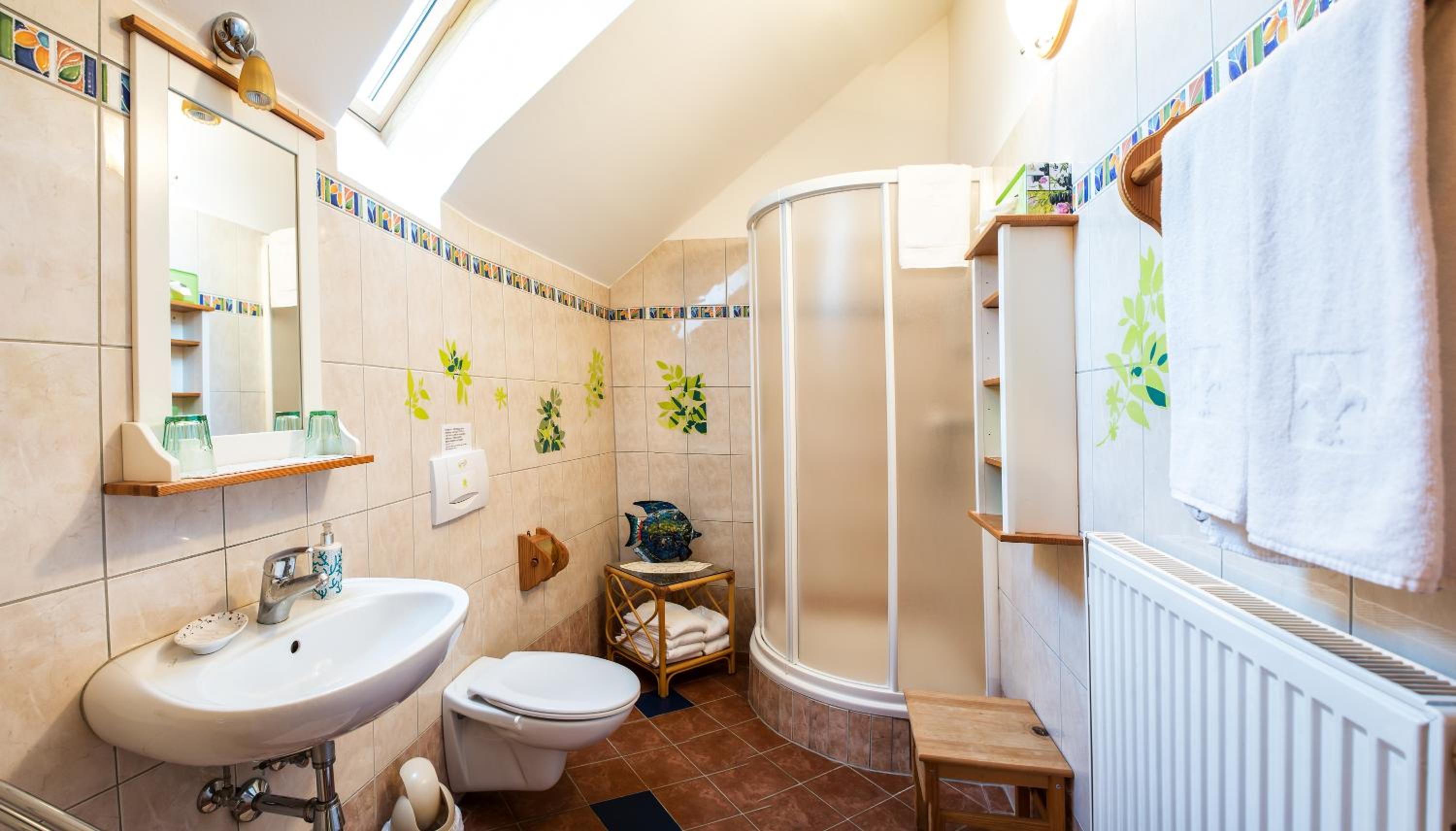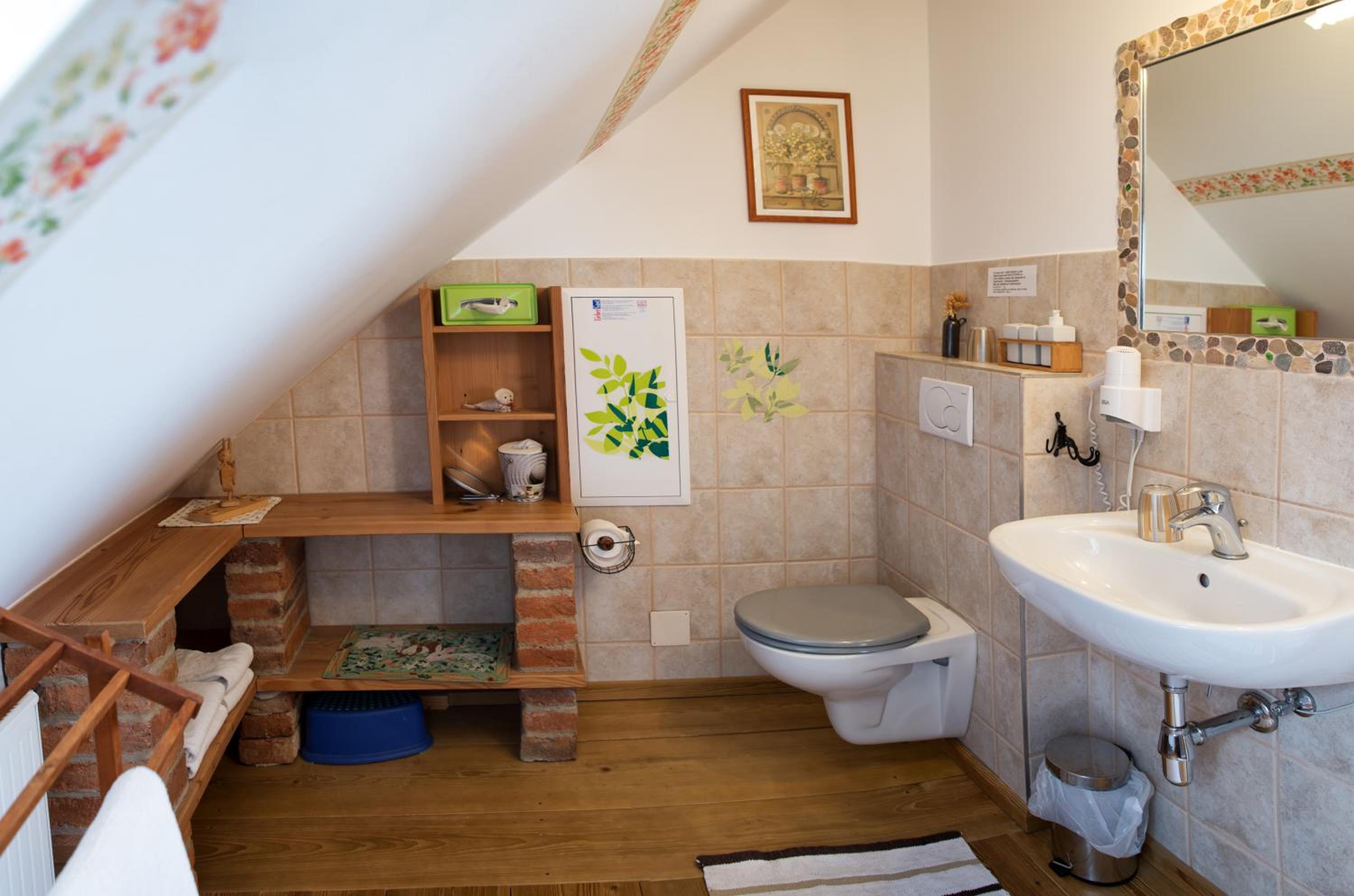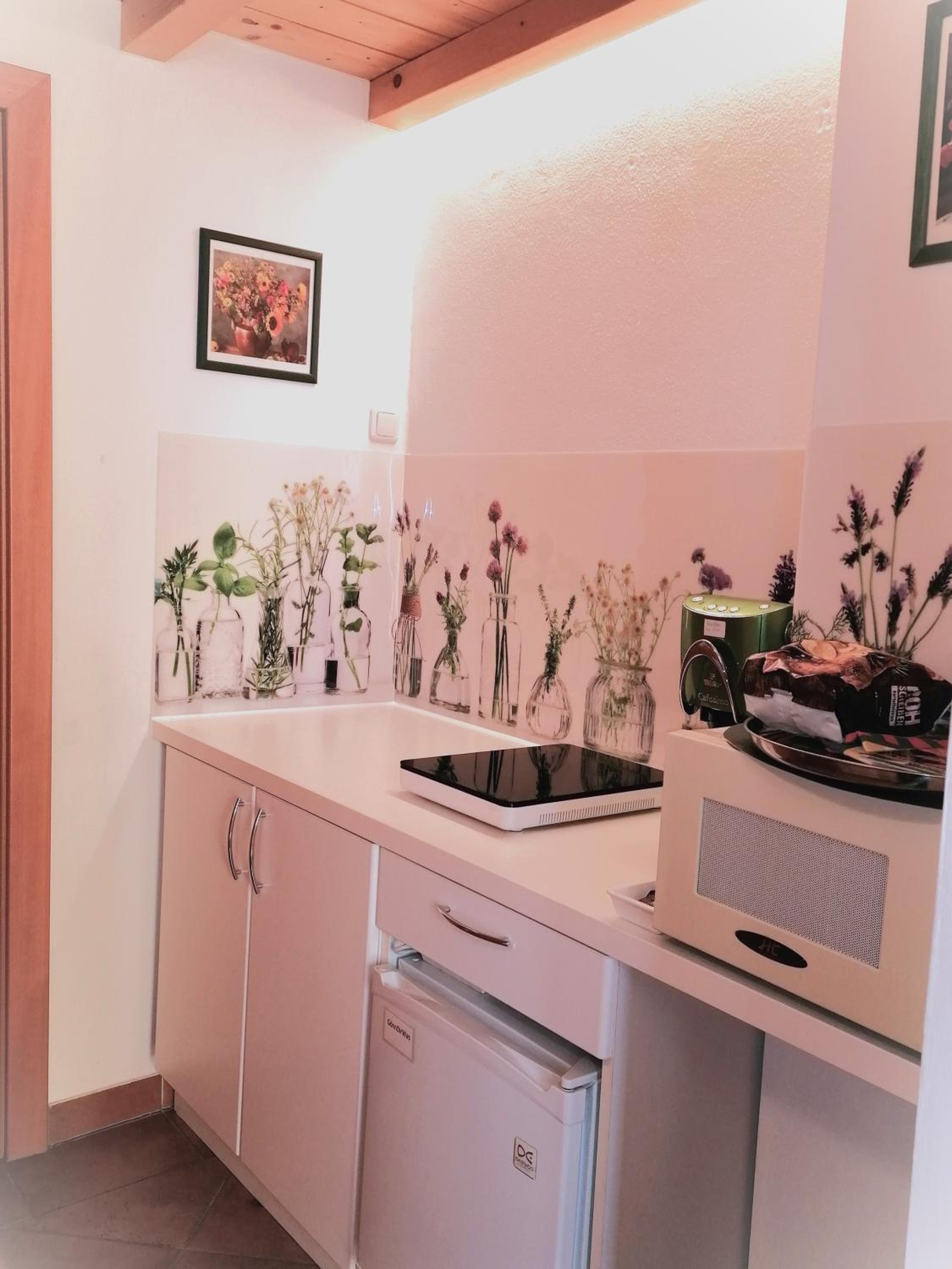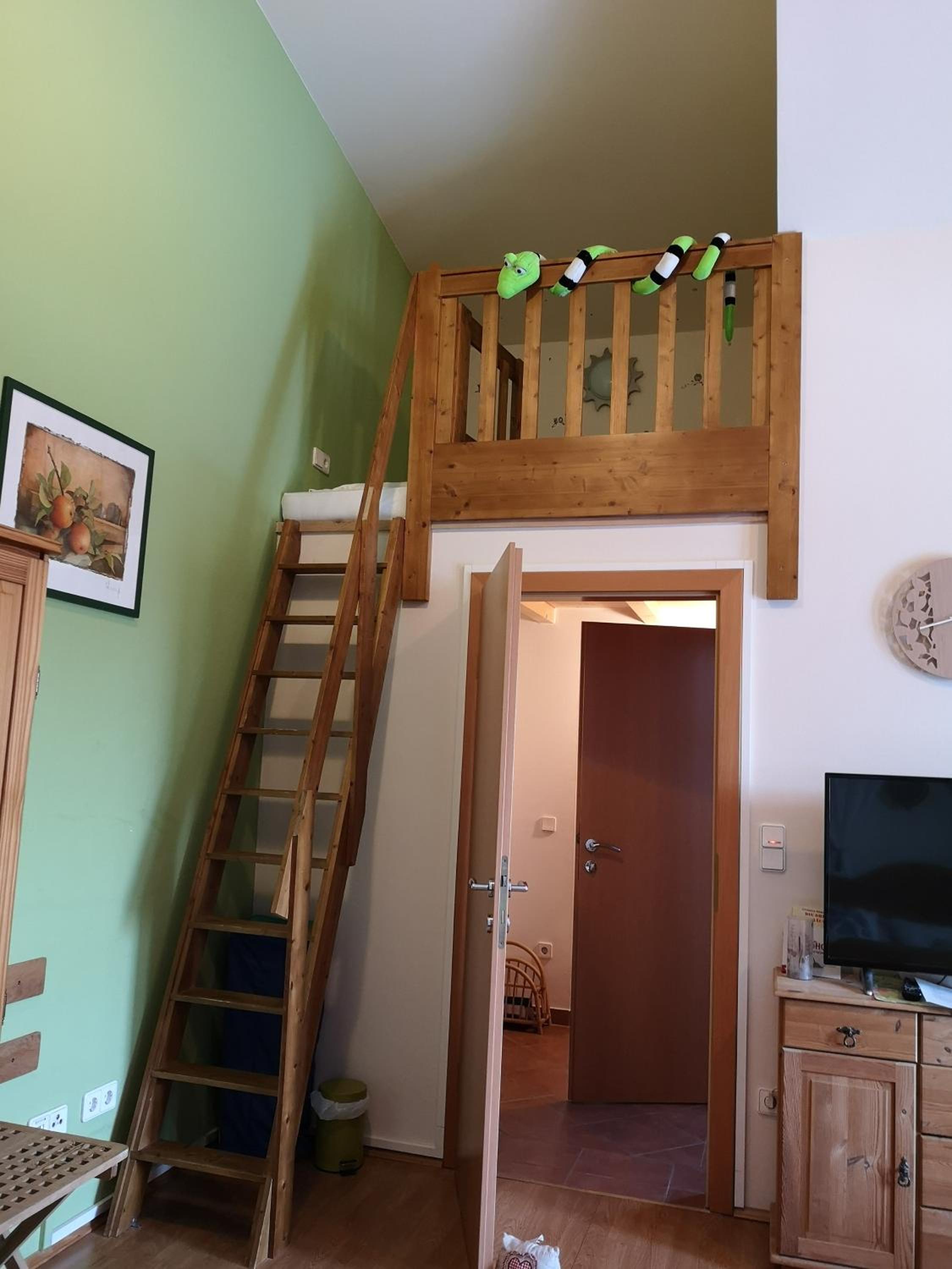 The family room is very spacious and comfortable, the kid bed in antresole is a great idea for older kids. Owners are really nice and they kind of follow you around when they see you, always making sure you are comfortable. They sell a lot of stuff there: knives, dog leashes, clothes, jewelry- you name it. Definetely not a problem if you forget anything from home! You also get a price list with all things available for consumption in your room, like 1,50 eur per one tea bag or 1,50 eur per one coffee capsule.