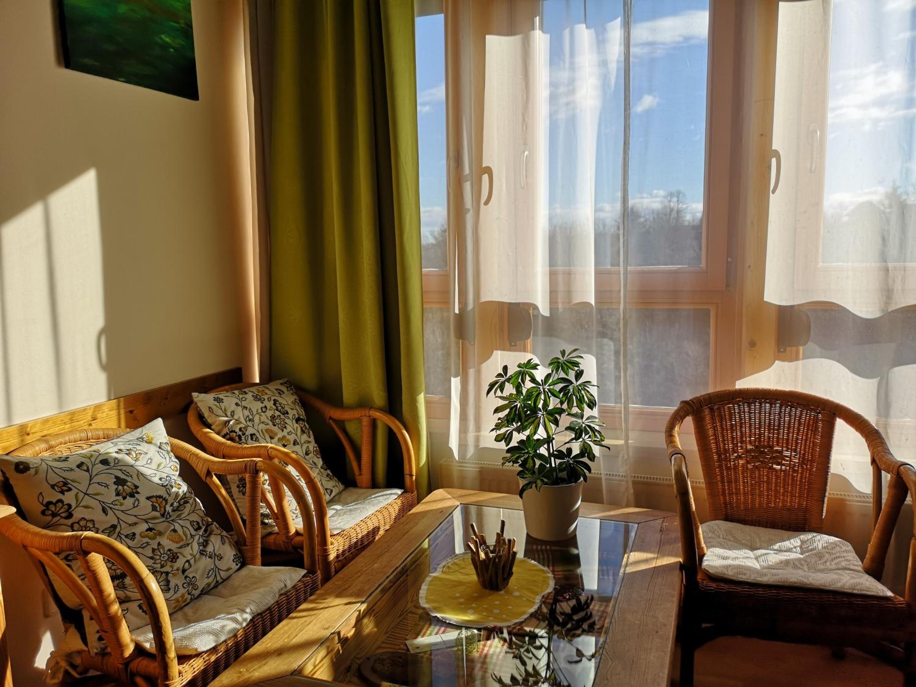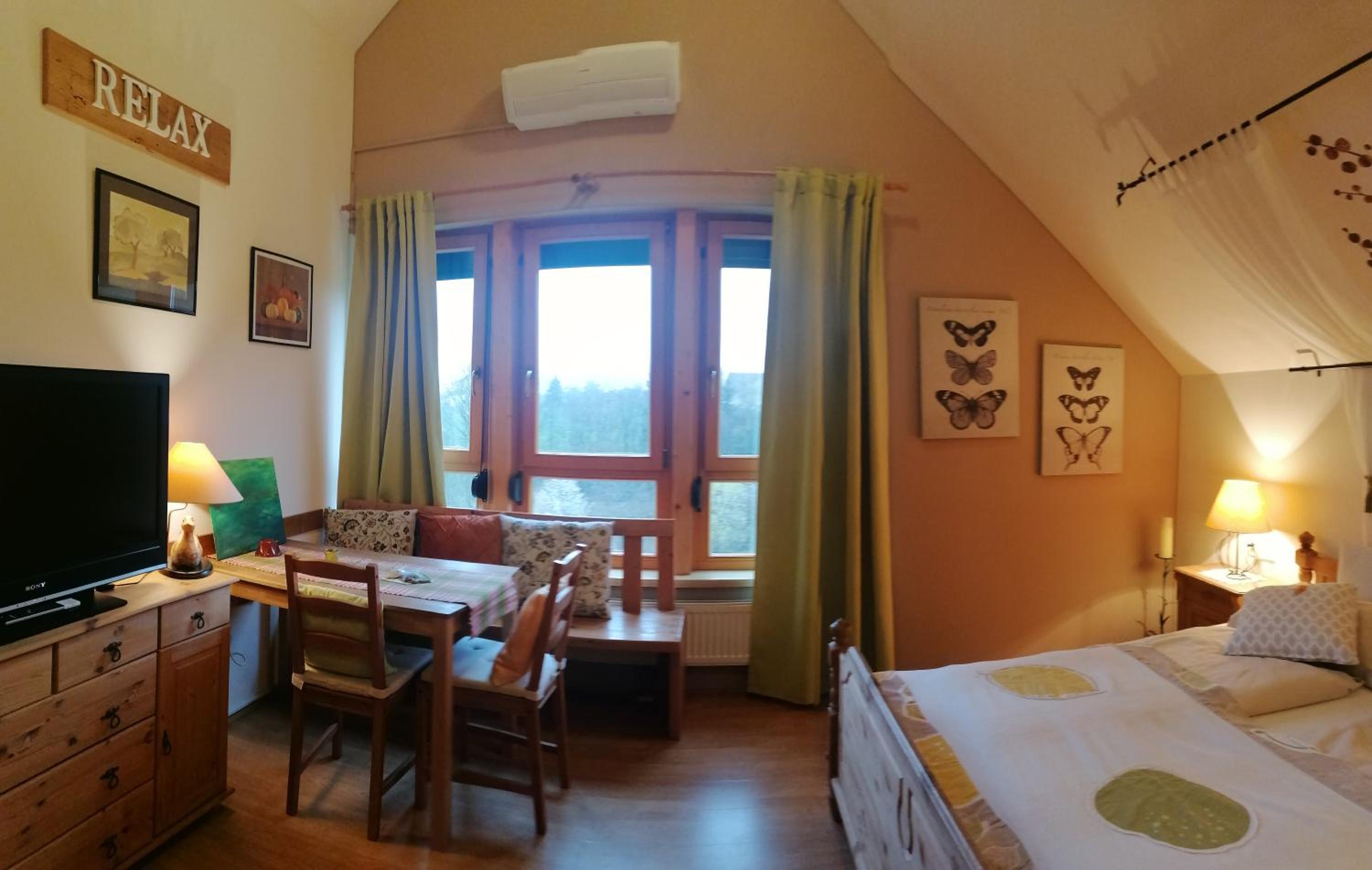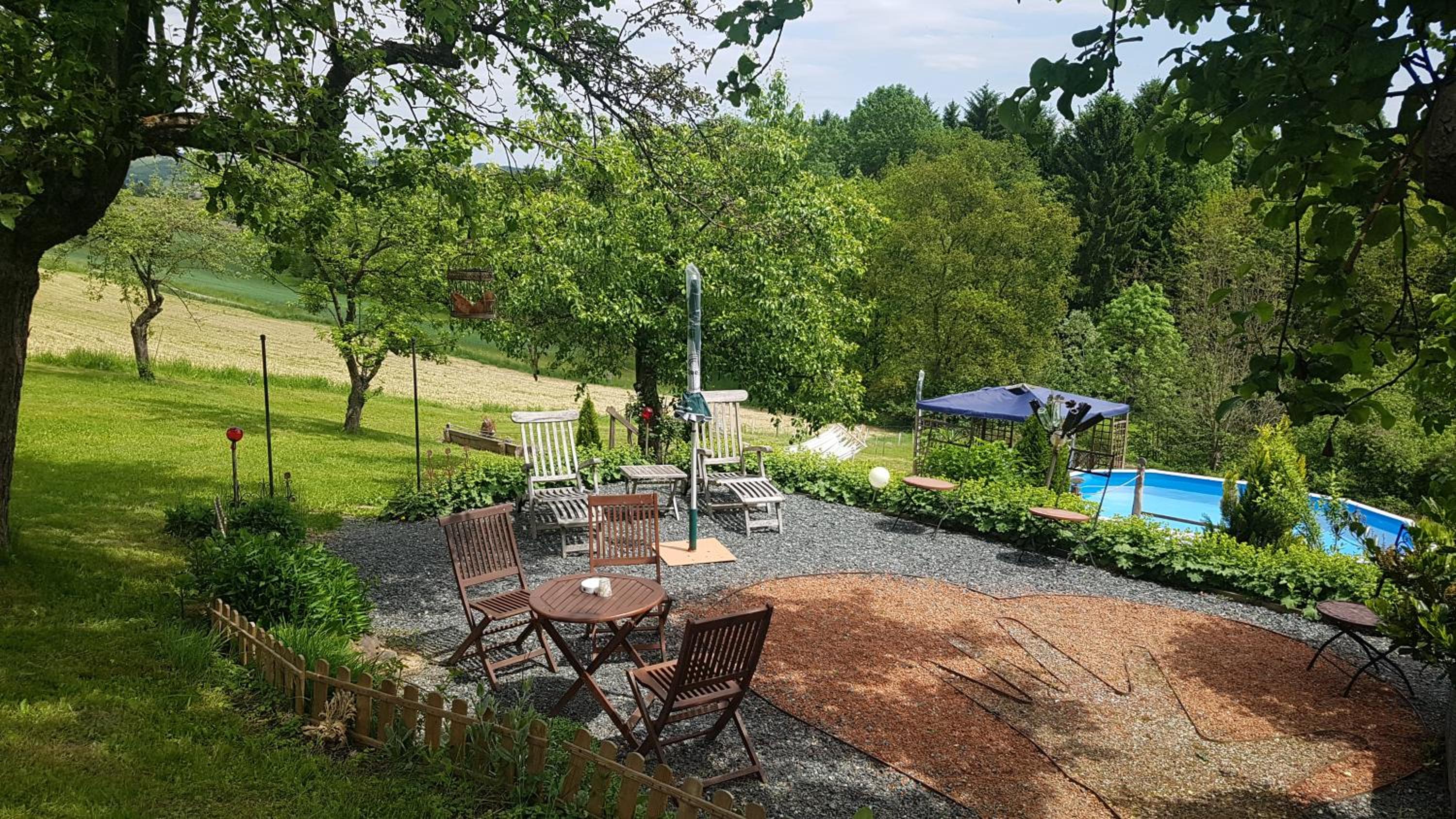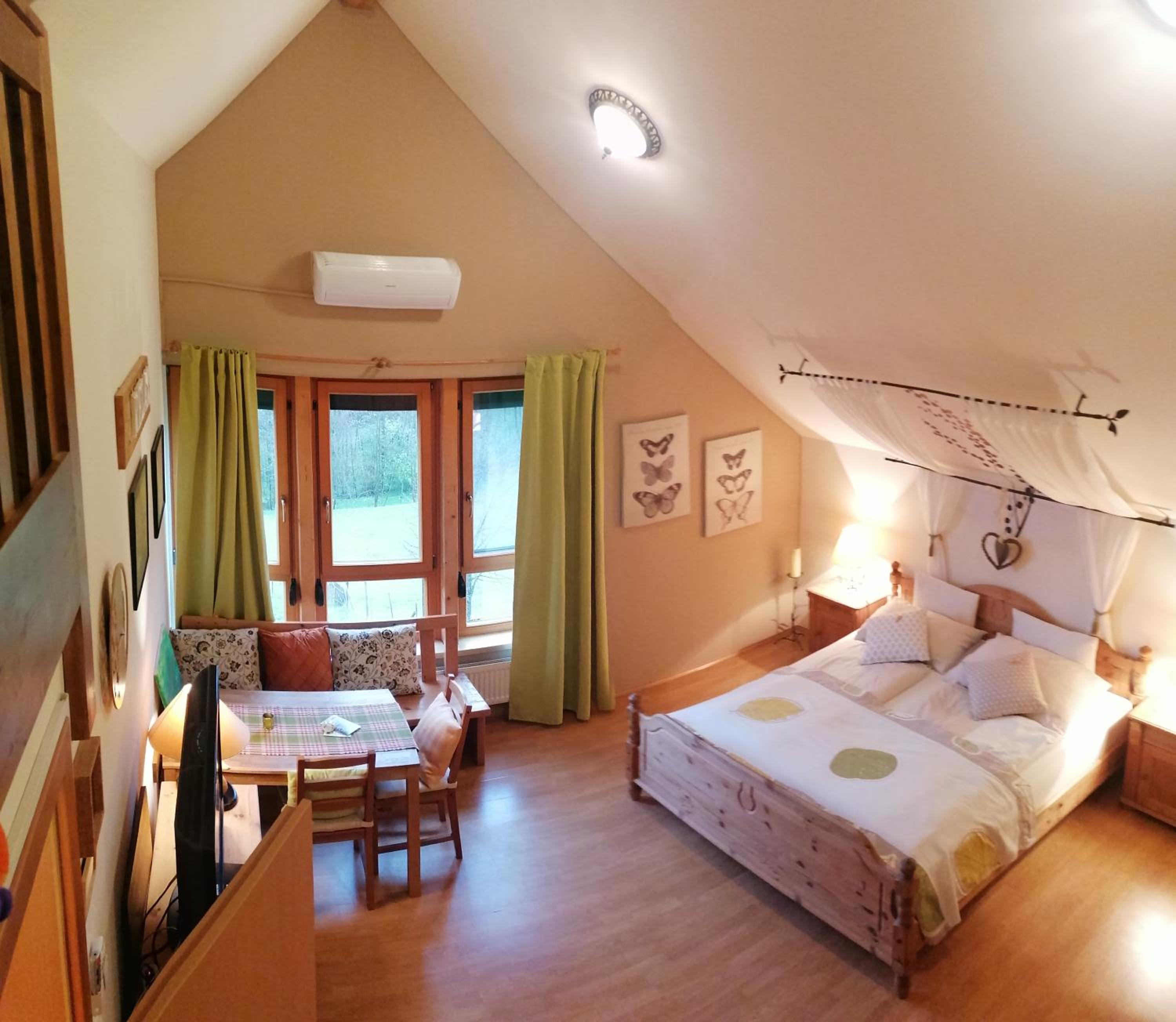 Great view from the room, small pool in the yard, beautiful quiet garden, close to the woods, extra breakfast