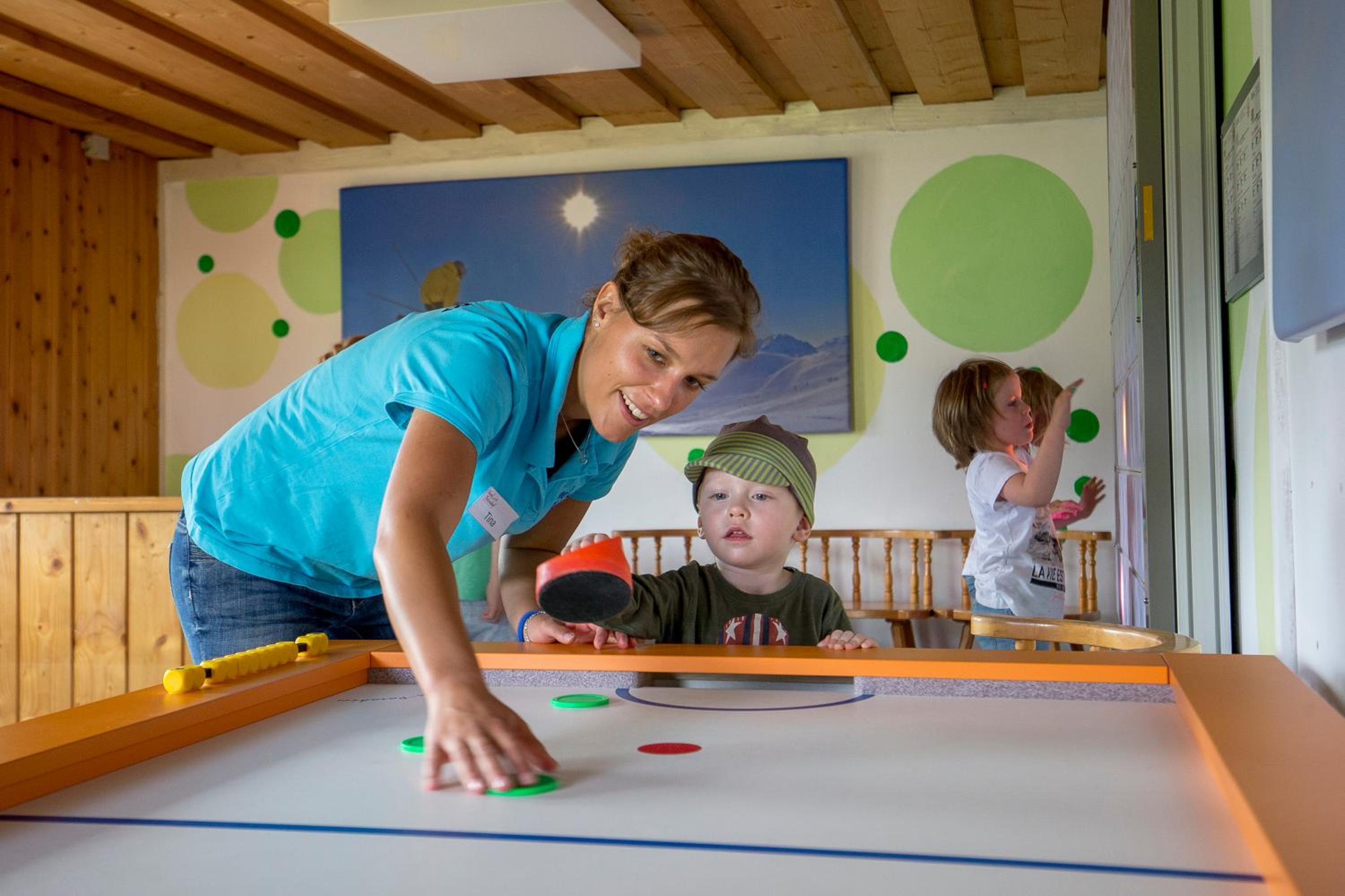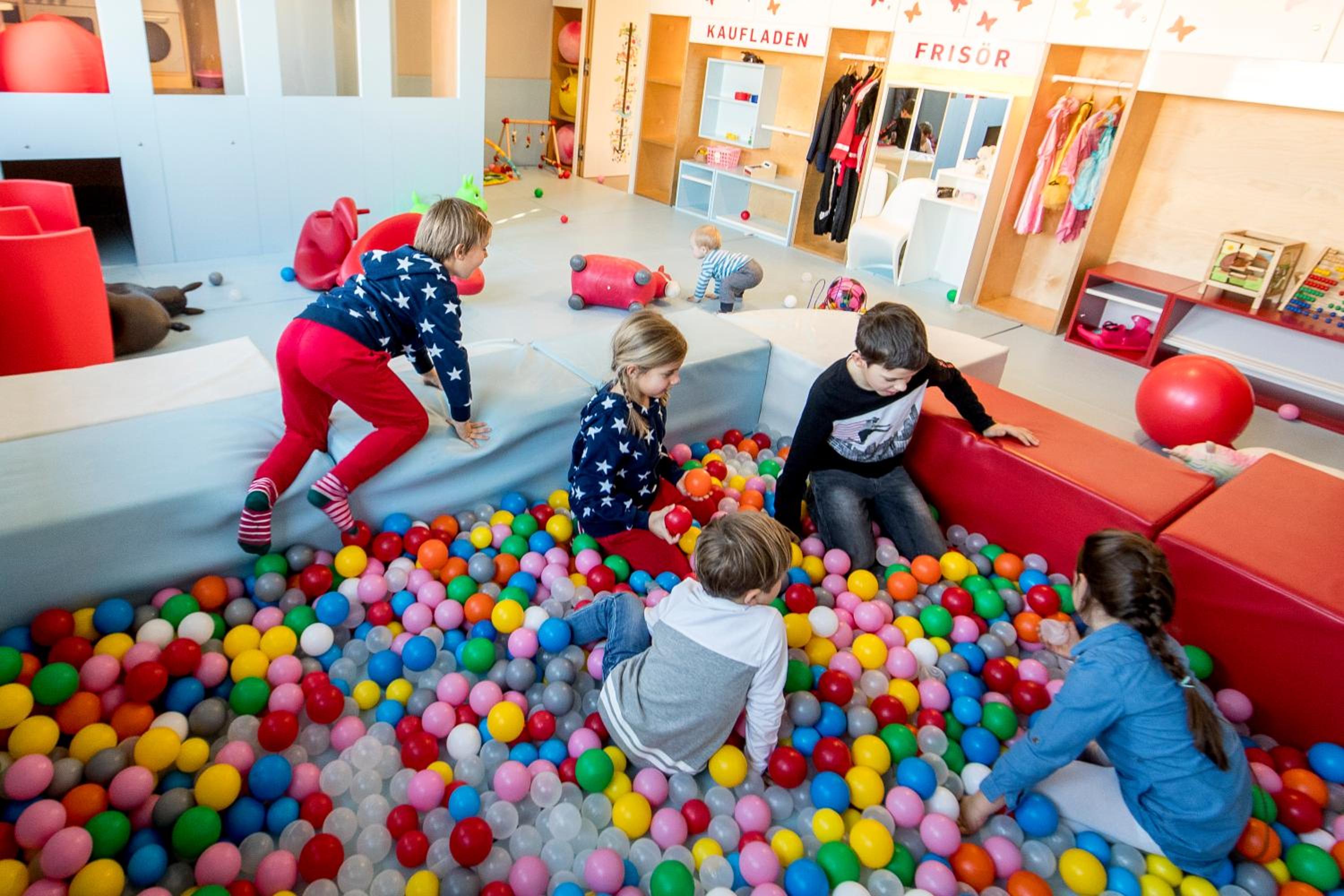 Es perfecto para familias con niños pequeños. Los niños pueden jugar en varias zonas. El alquiler (gratuito) de bicicletas, trineos, carritos, etc, y la comida es excelente!!!