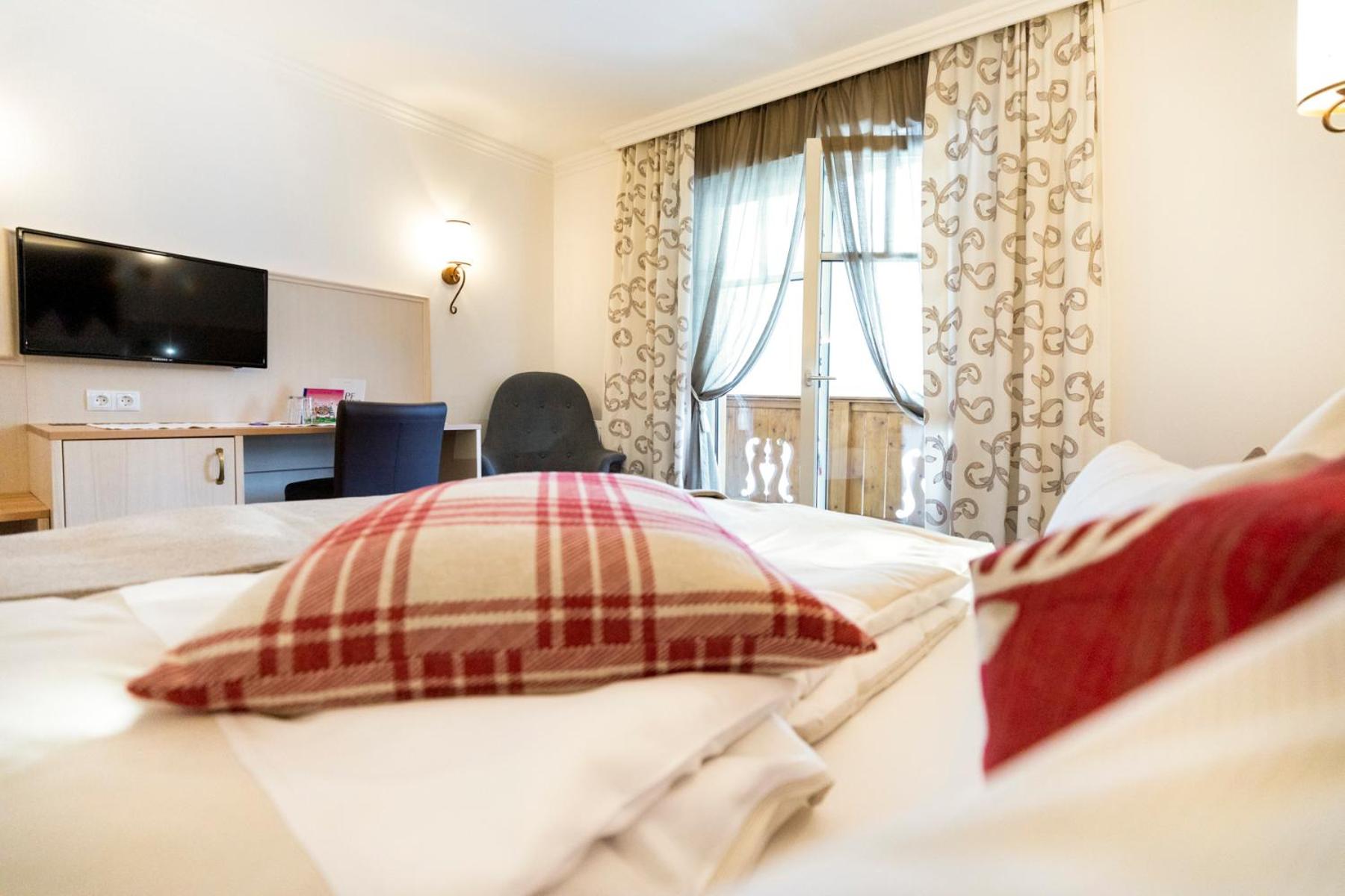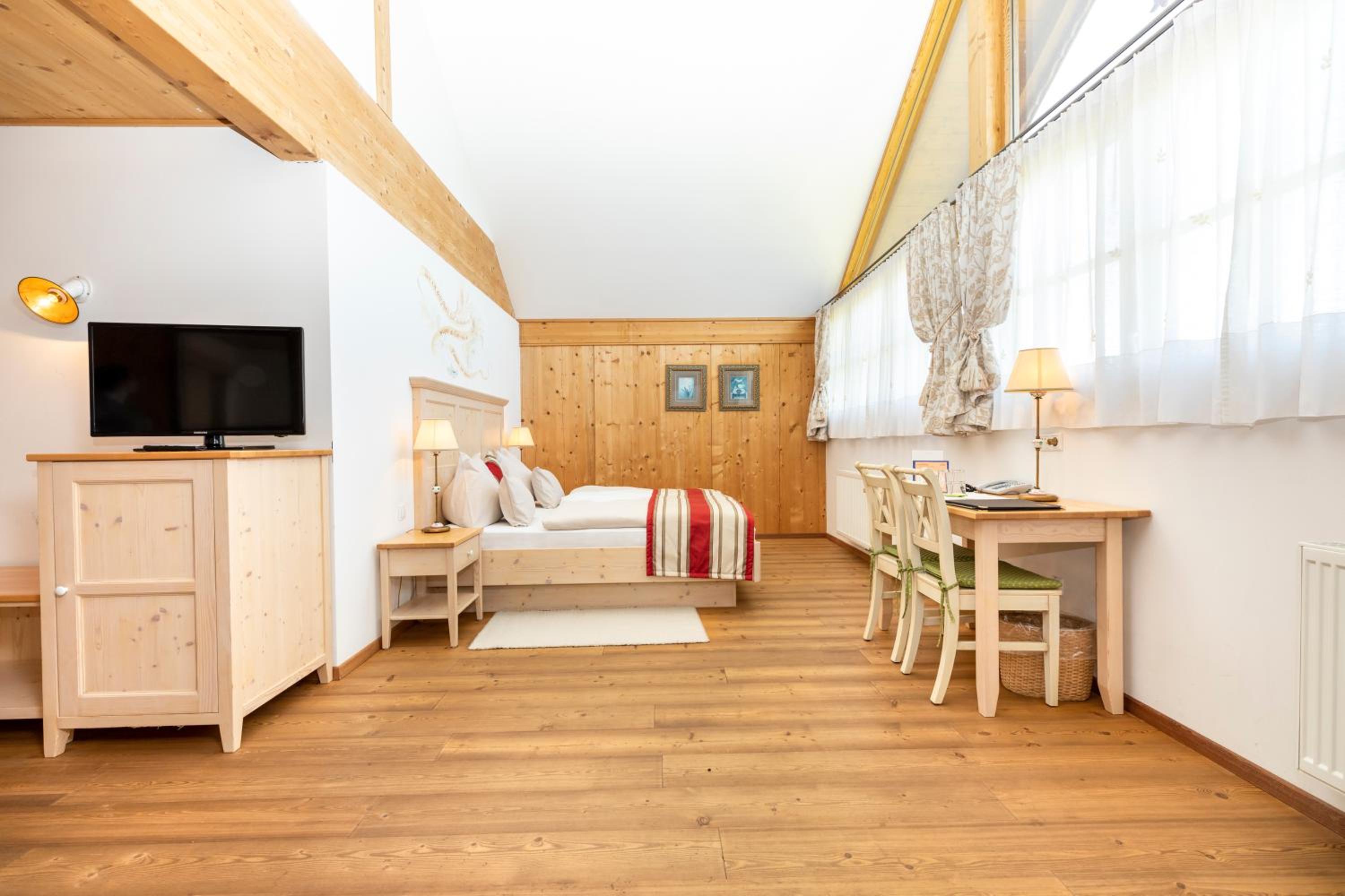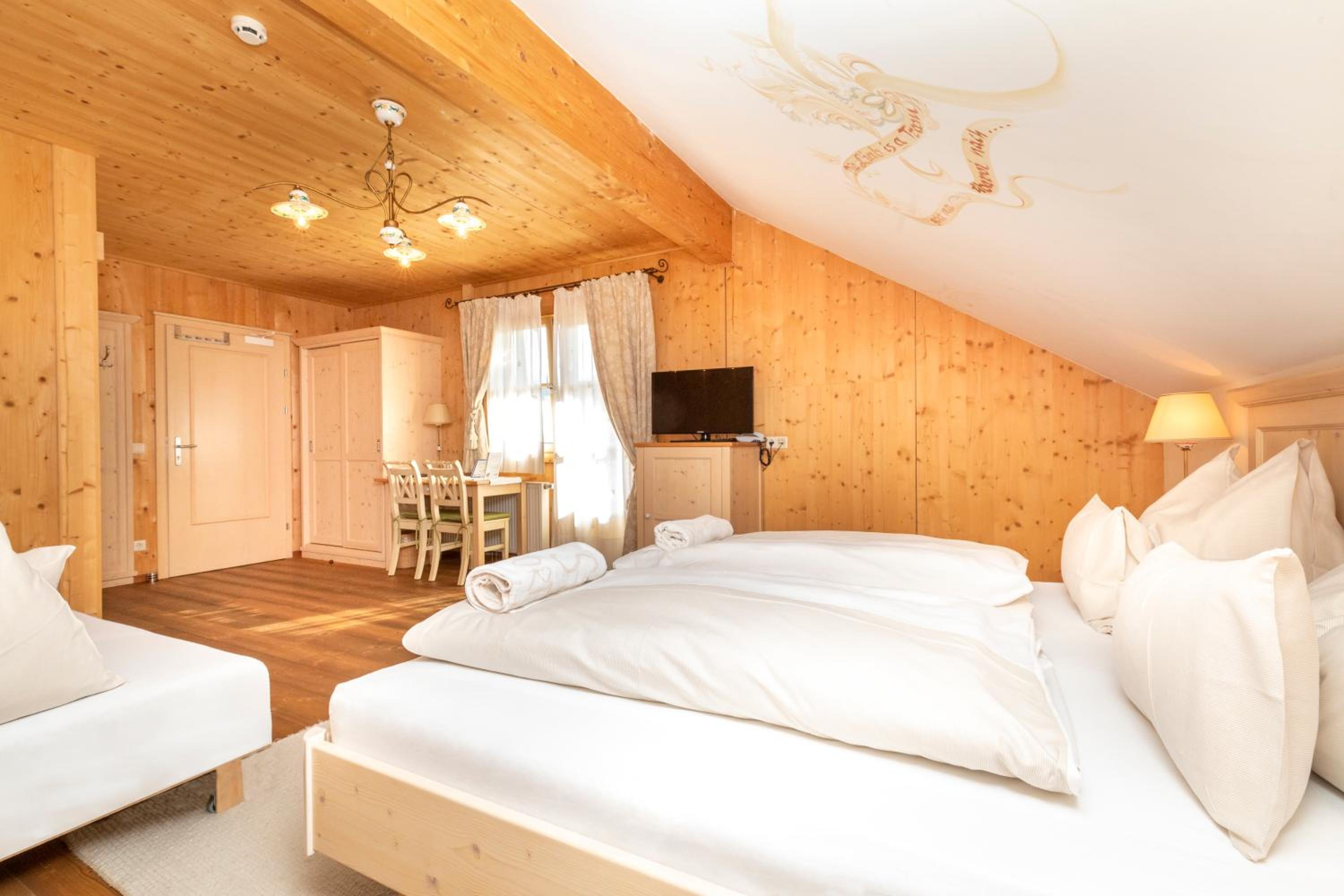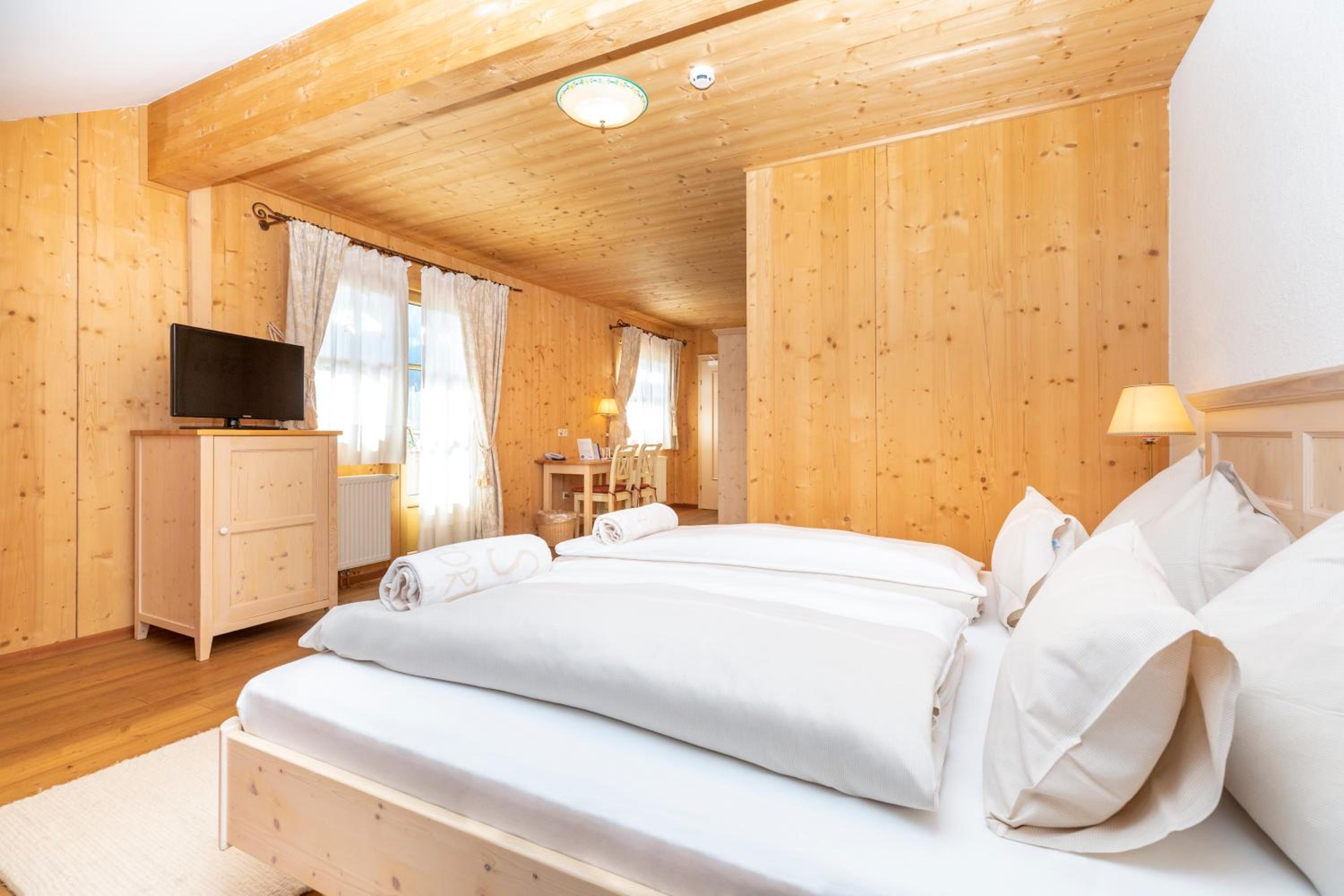 המלון מיושן. הזמנו ארבעה חודשים מראש שלושה חדרים וכולם פנו לחנייה במקום לנוף היפהפה מסביב. הזמנו סוויטה משפחתית אך זו לא באמת סוויטה , אלה שני חדרים מחוברים ללא חן, שירותים קטנים בלי יכולת לזוז, מקלחון פצפון שקשה להסתובב וארוחת בוקר שחזרה על עצמה מידי בוקר ללא גיוון (נקניקים וגבינה צהובה) מעט ירקות וביצה לבחירה. בעלי המקום חביבים אך לא זמינים לשאלות או המלצות ורוב היום דלפק הקבלה שומם. את המפתח מקבלים בתוך מעטפה ללא שום קשר ישיר עם המארחים .